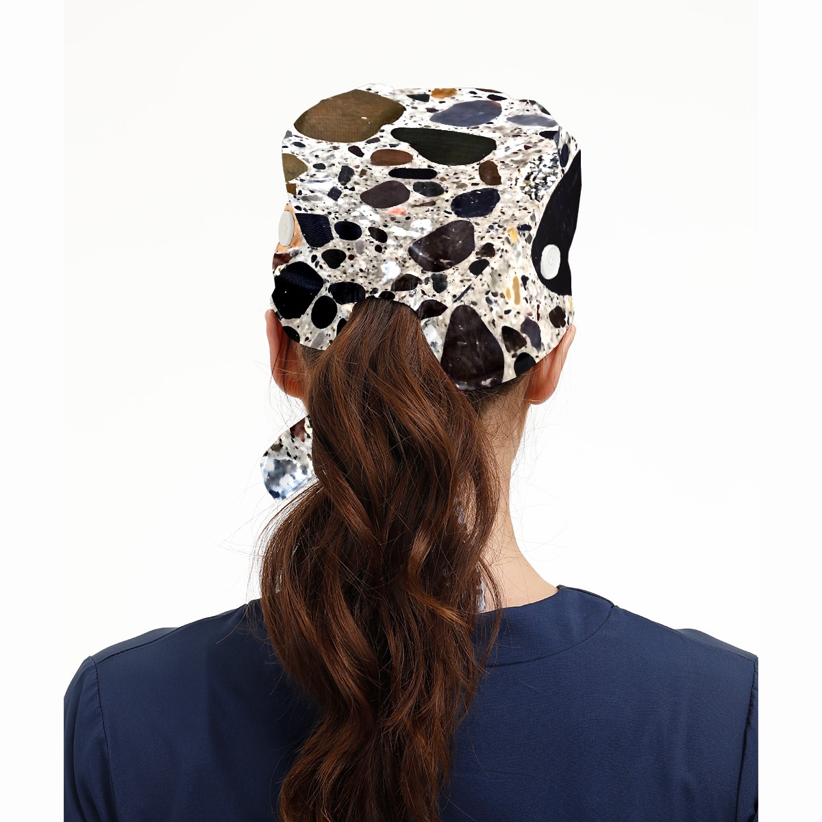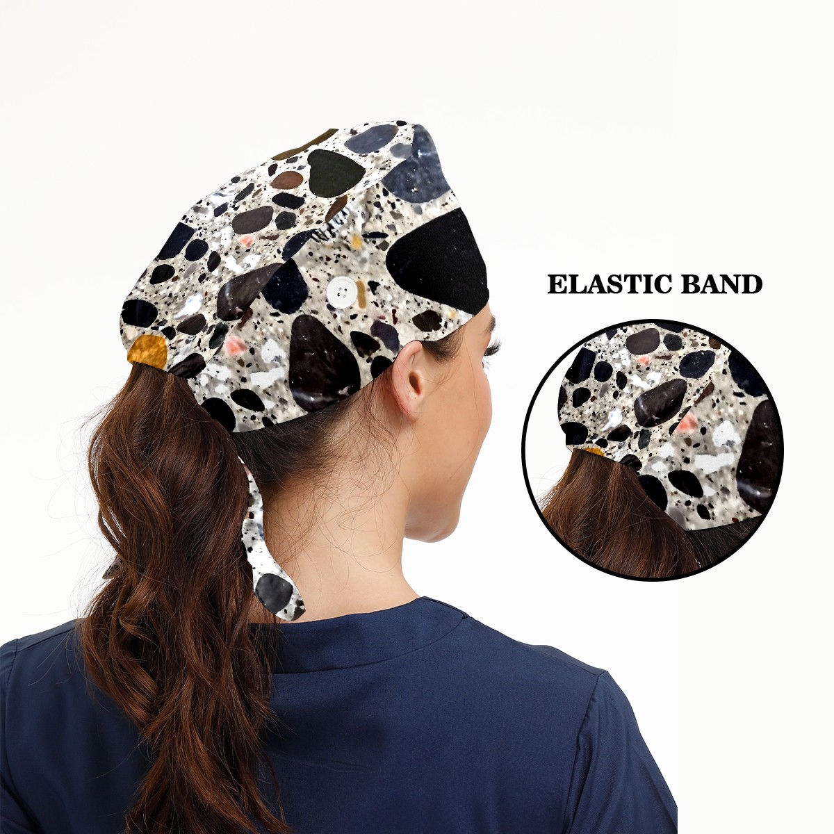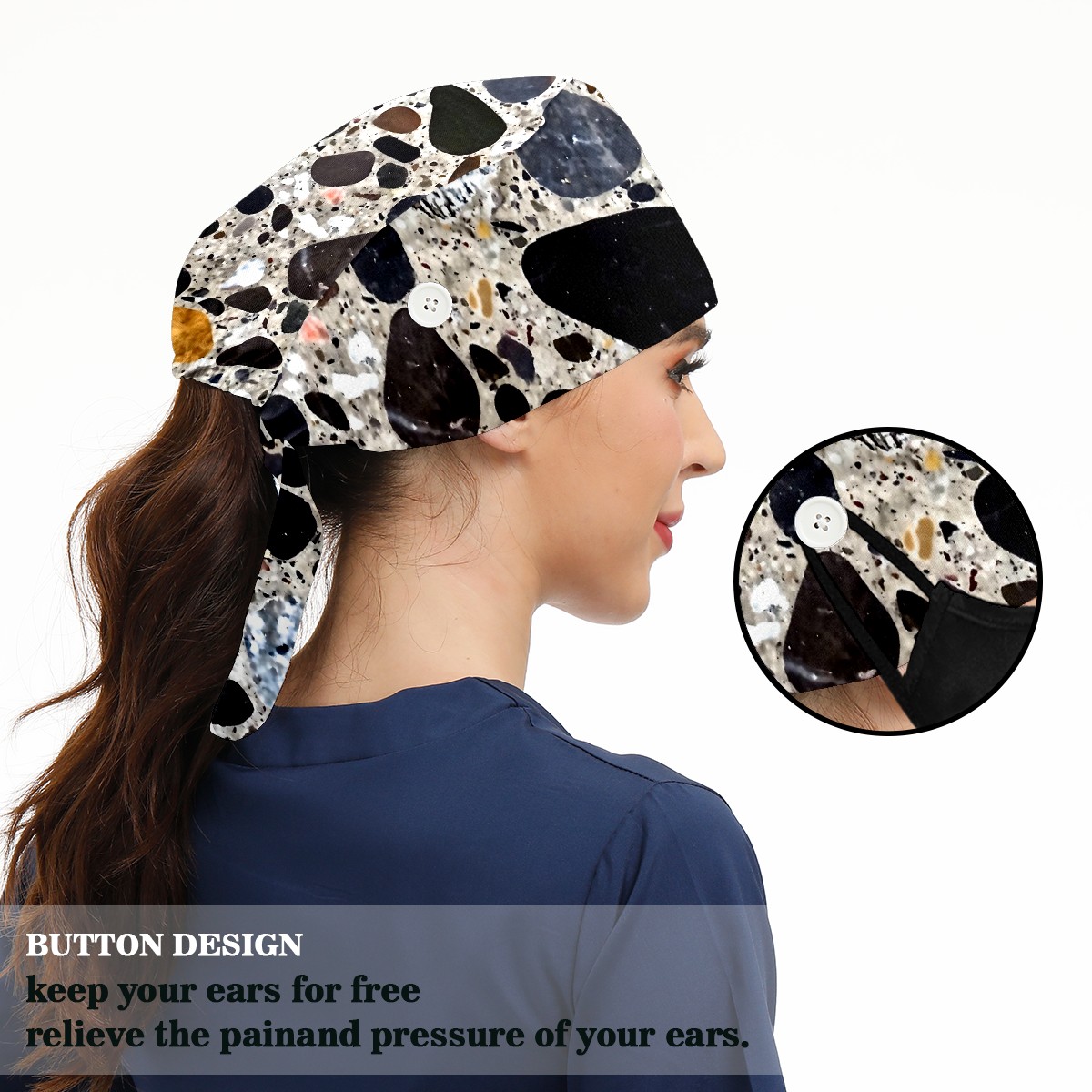 Working Caps with Button&Sweatband Satin Lined Cotton Adjustable Nurse Hats Elastic Band Scrub Cap Surgeon Hat Print Stone Texture