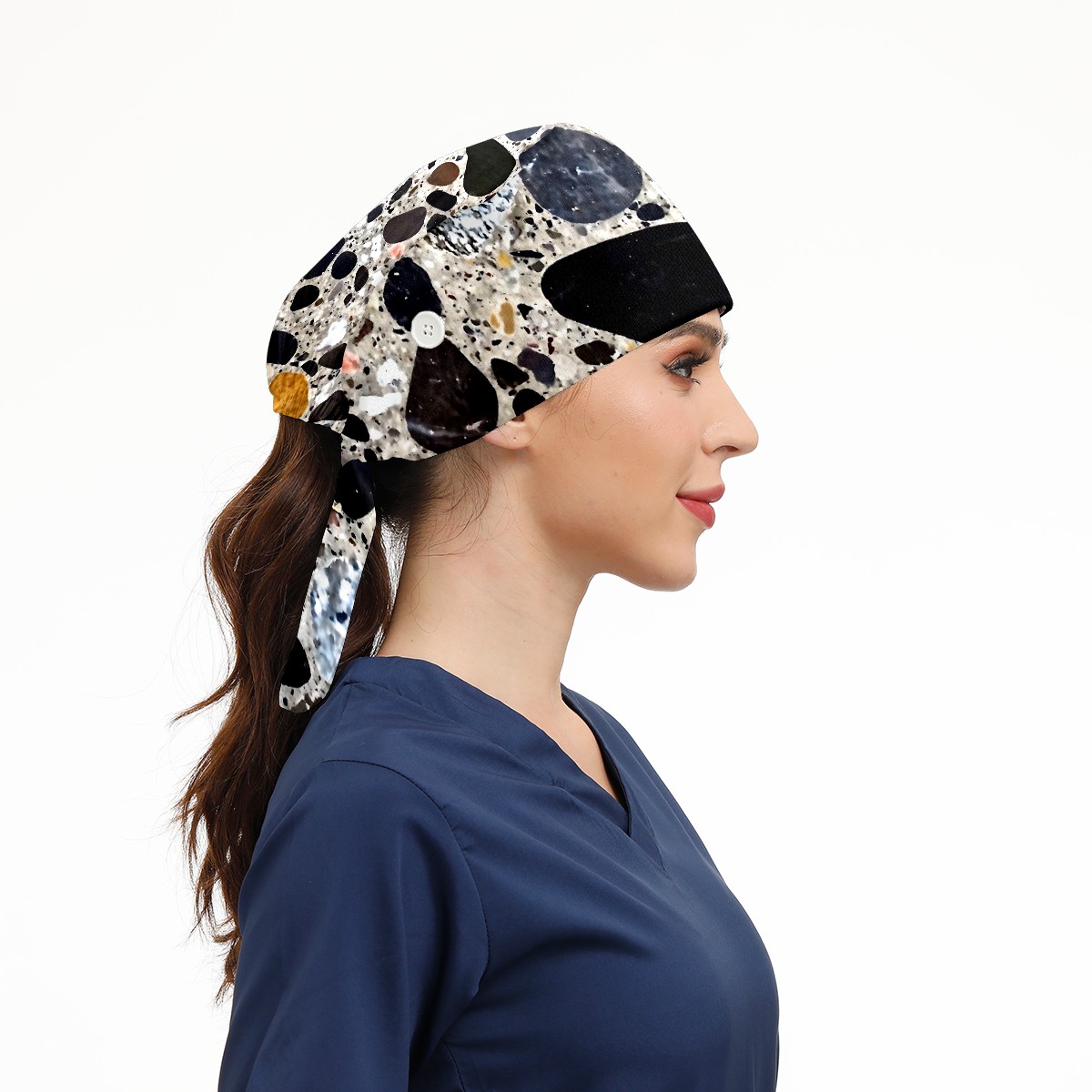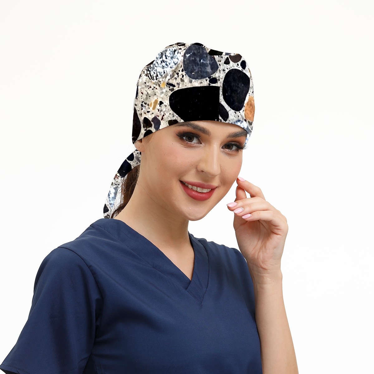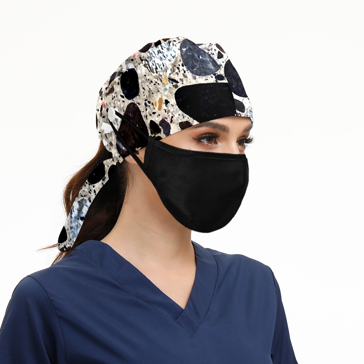 Working Caps with Button&Sweatband Satin Lined Cotton Adjustable Nurse Hats Elastic Band Scrub Cap Surgeon Hat Print Stone Texture