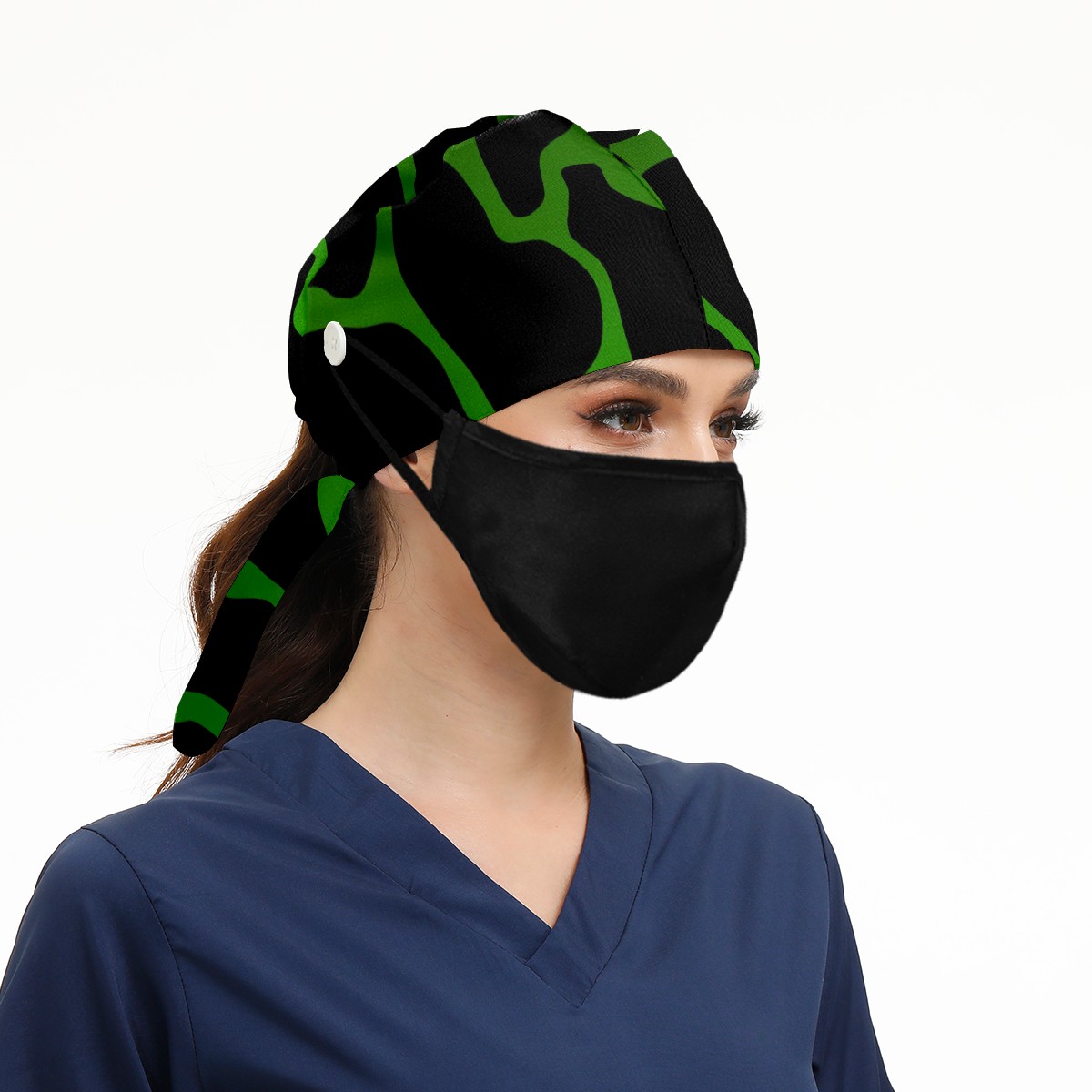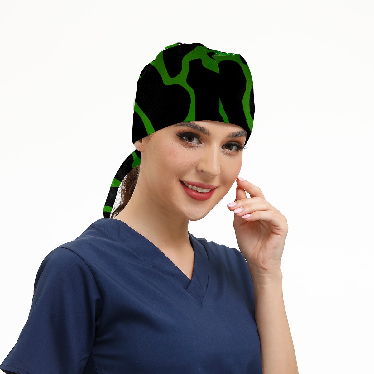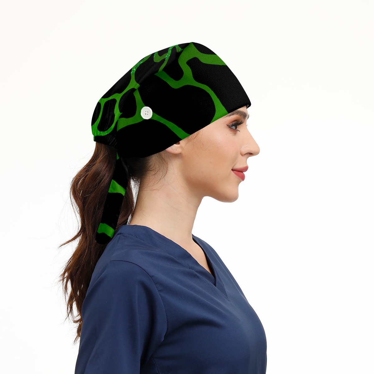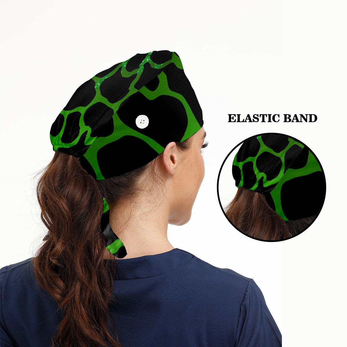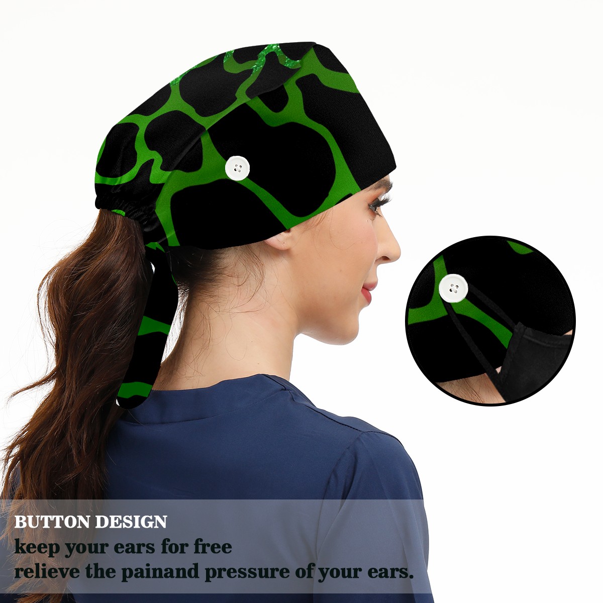 Working Caps with Button&Sweatband Satin Lined Cotton Adjustable Nurse Hats Elastic Band Scrub Cap Surgeon Hat Print Cow Texture