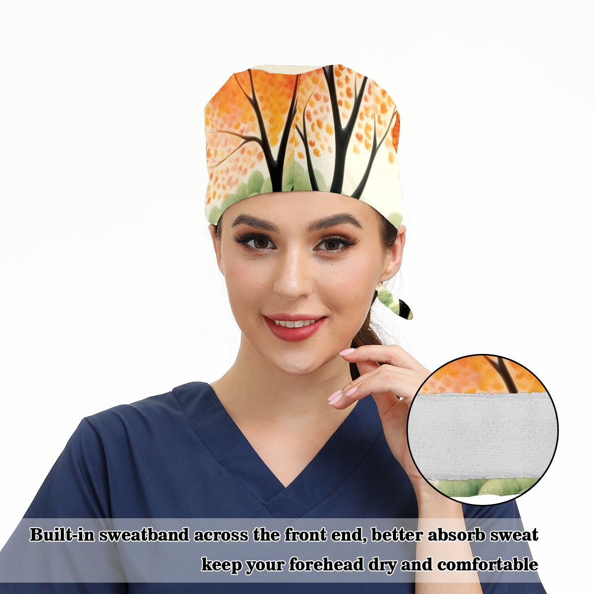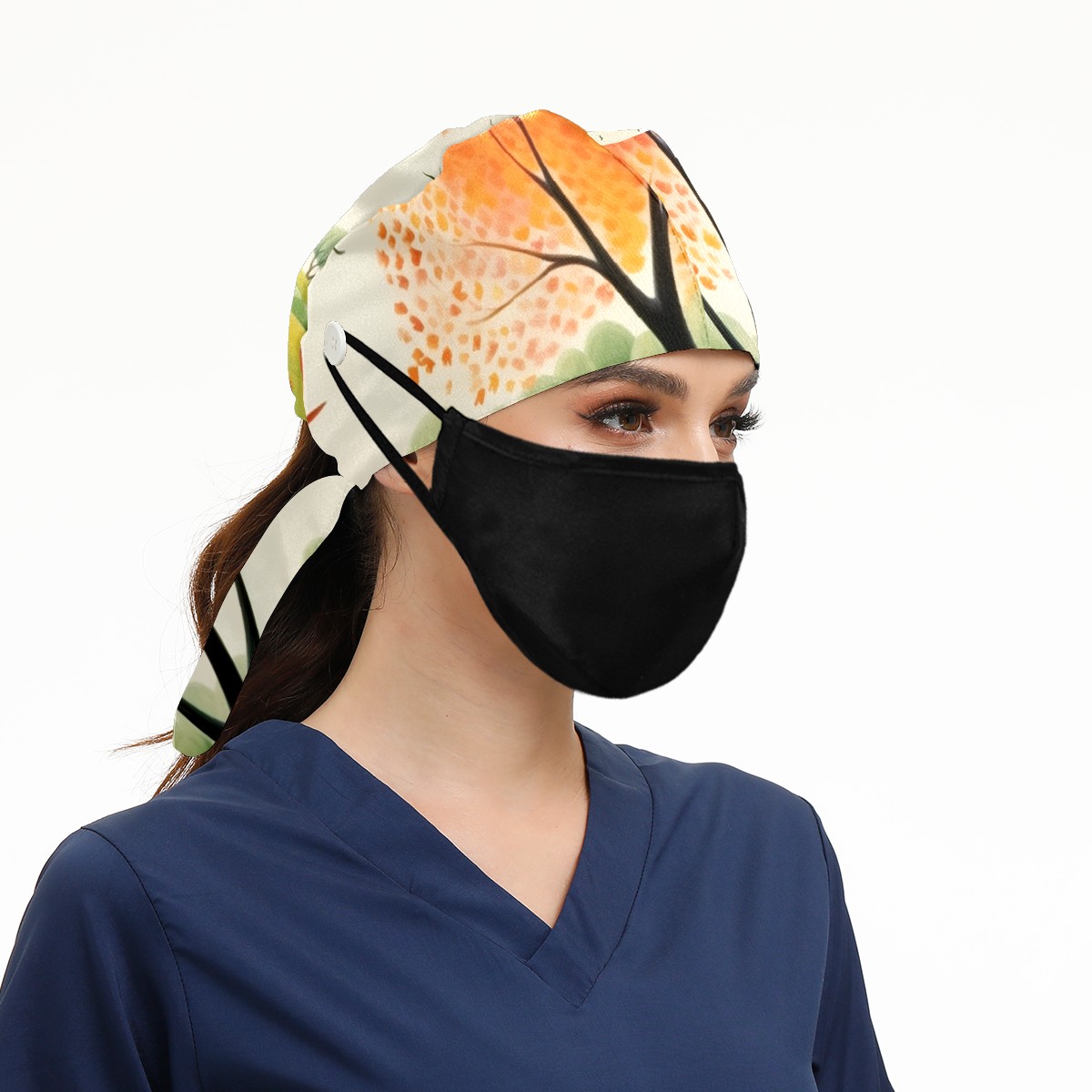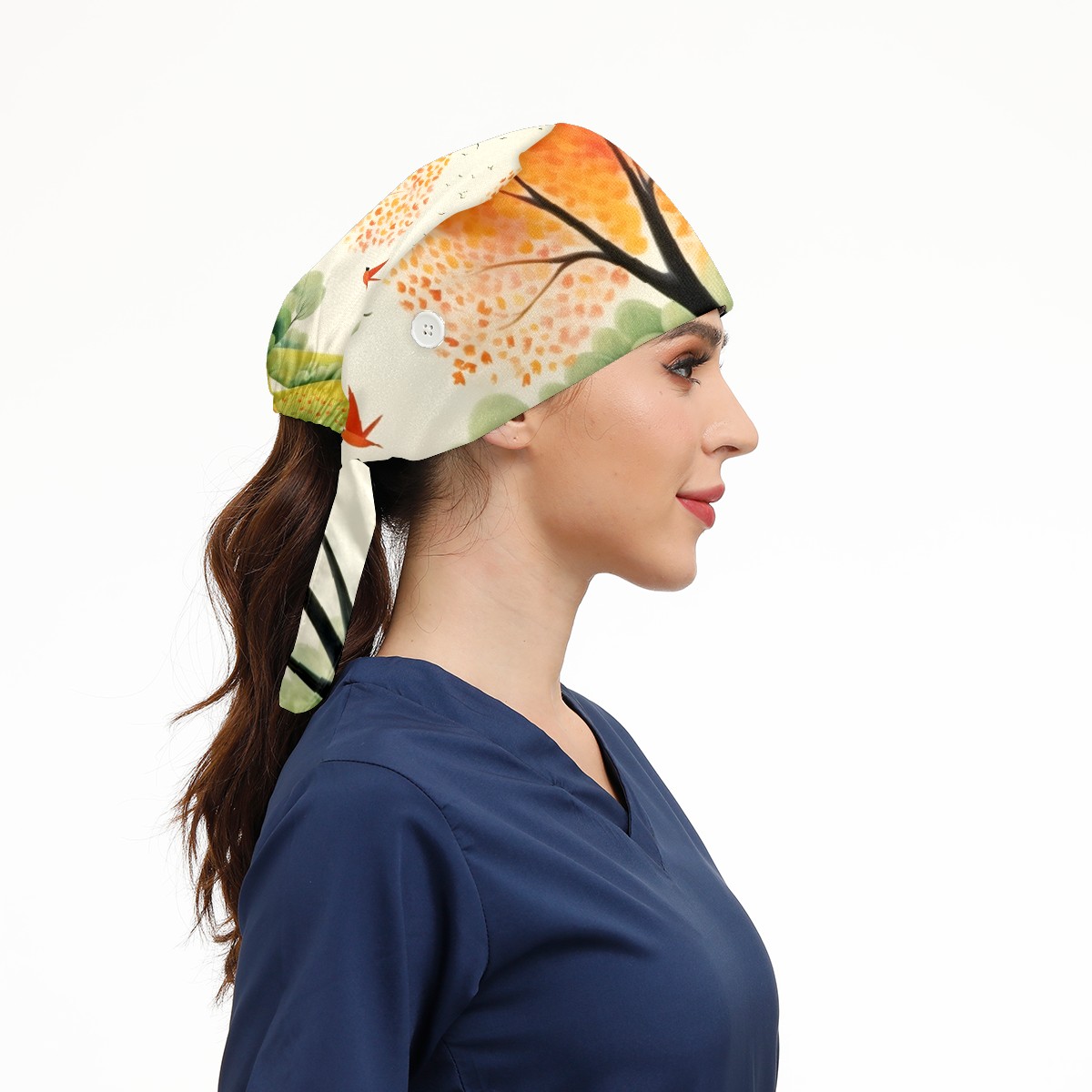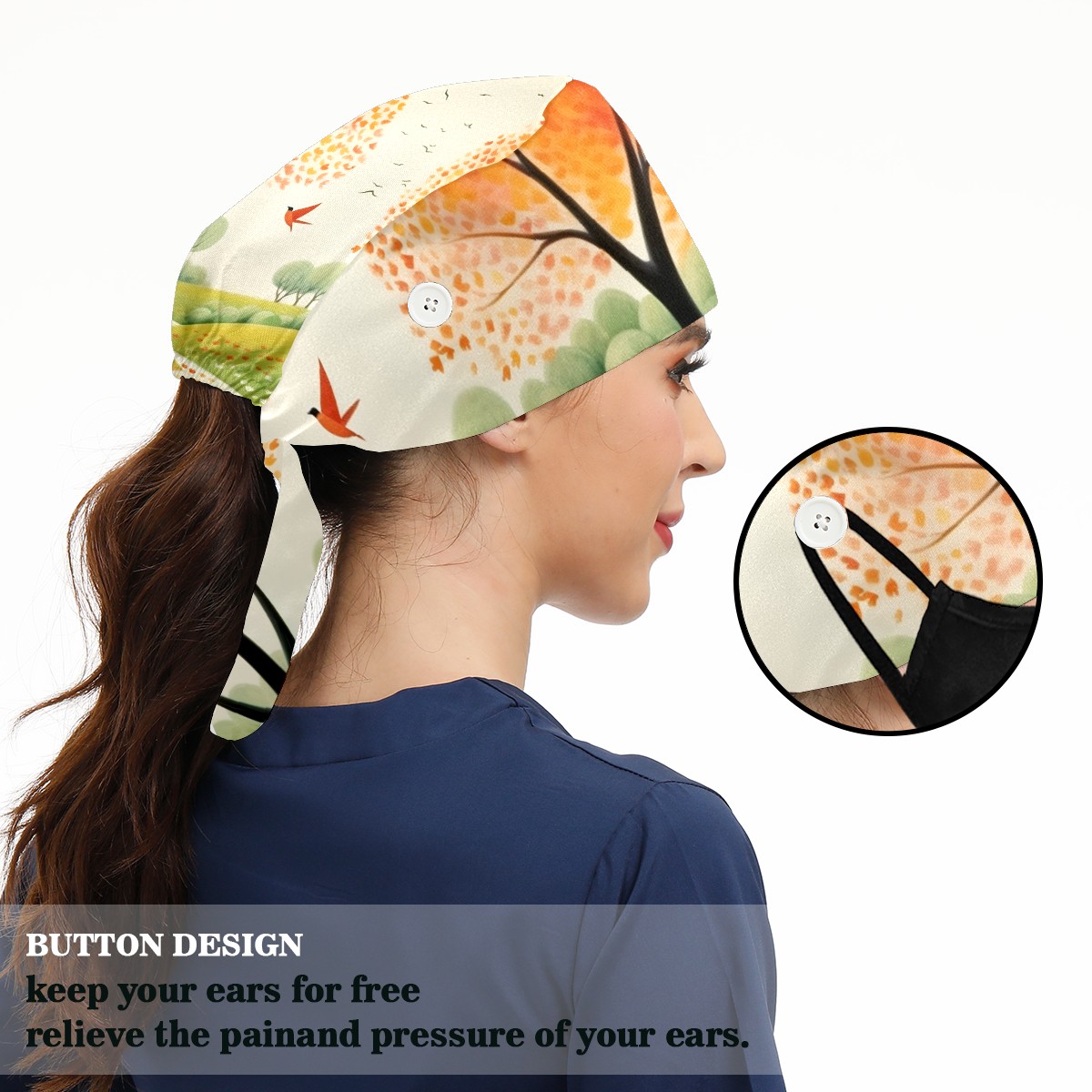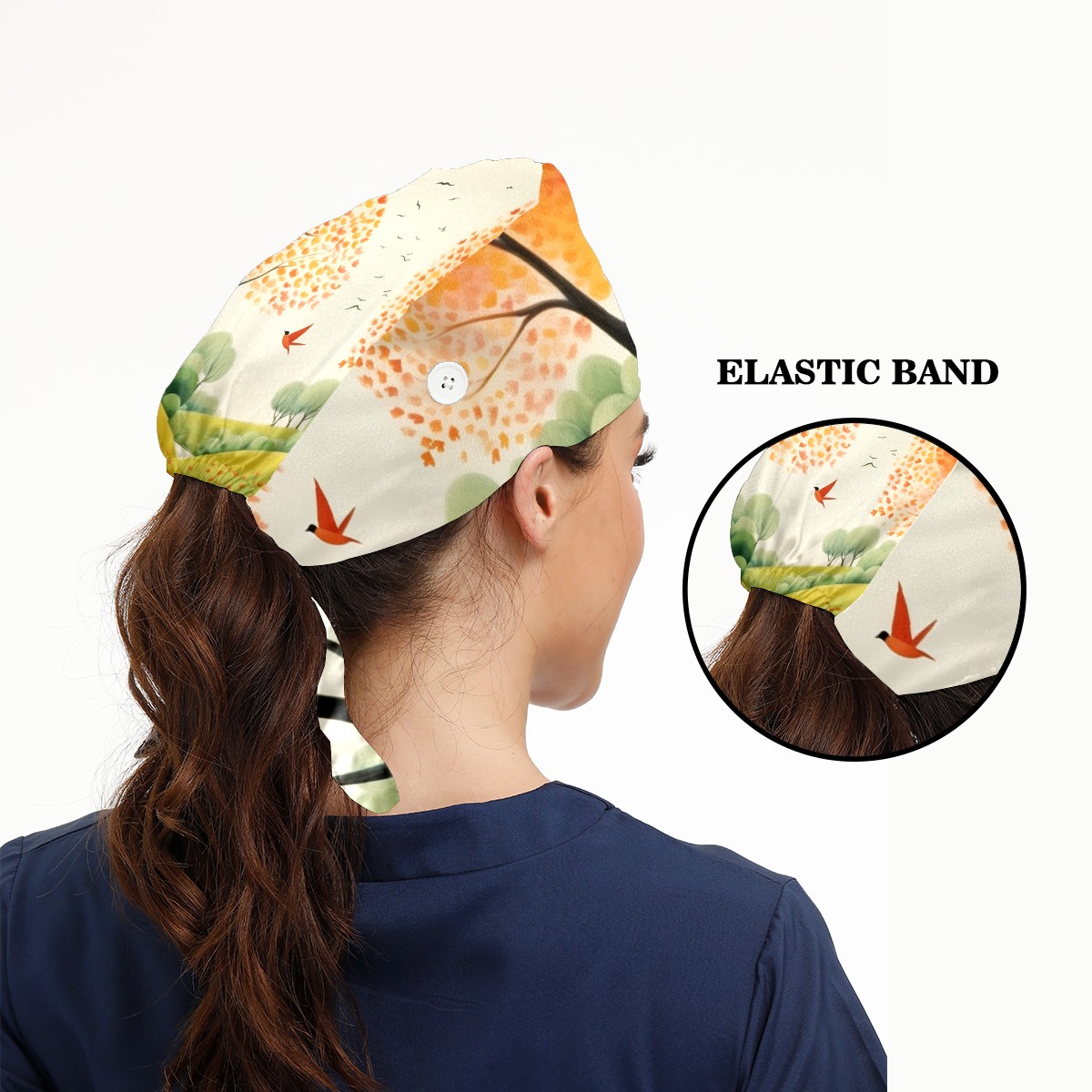 Working Caps with Button&Sweatband Satin Lined Cotton Adjustable Nurse Hats Elastic Band Scrub Cap Surgeon Hat Spring Landscape (11)