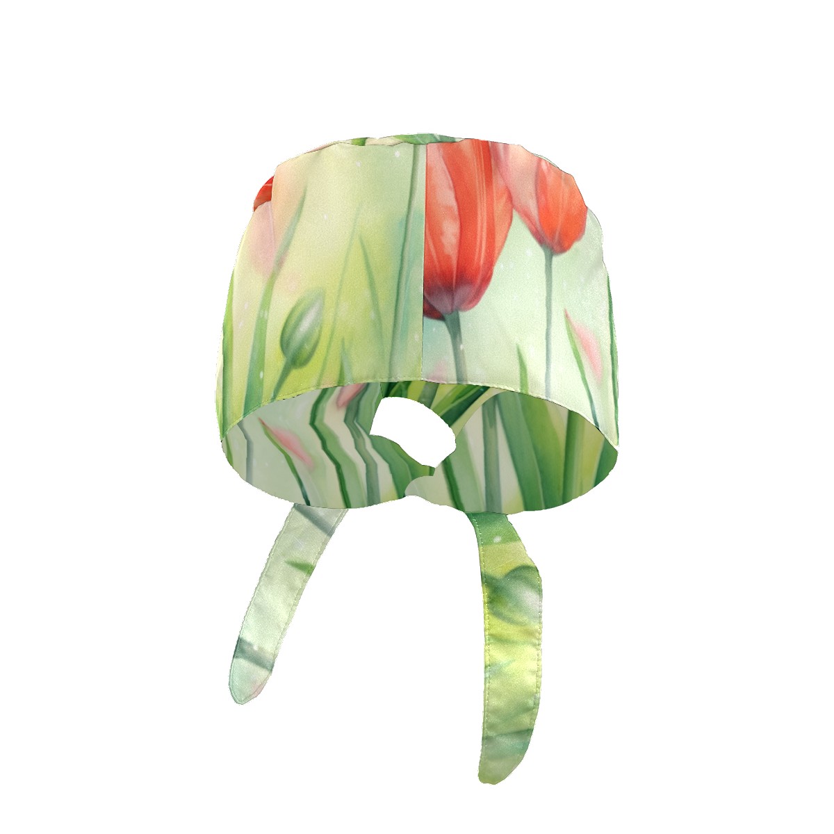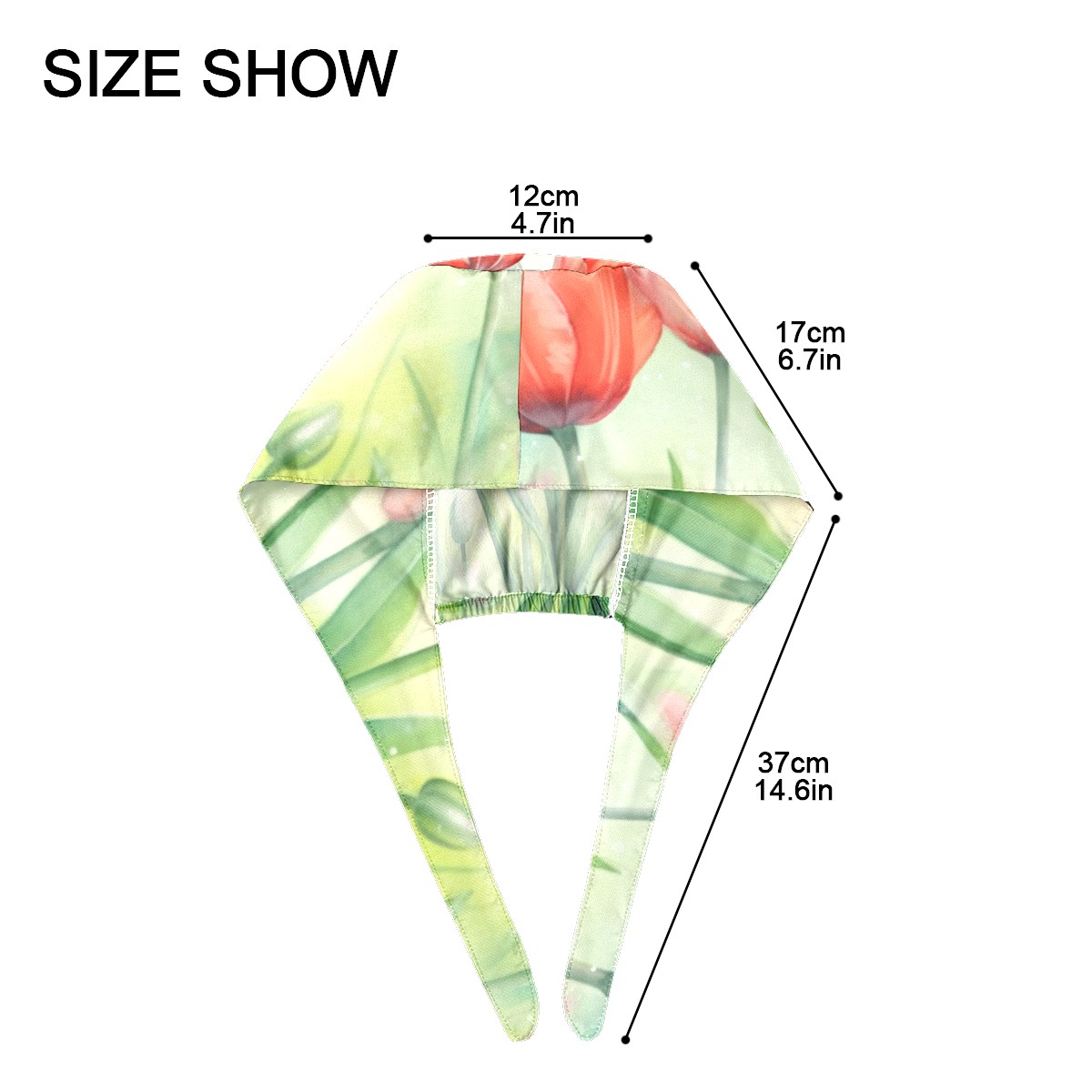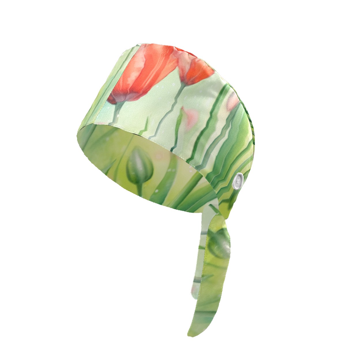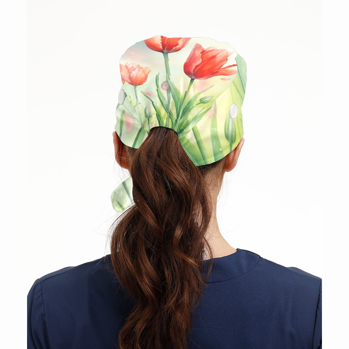 Working Caps with Button&Sweatband Satin Lined Cotton Adjustable Nurse Hats Elastic Band Scrub Cap Surgeon Hat Spring Flowers (2)