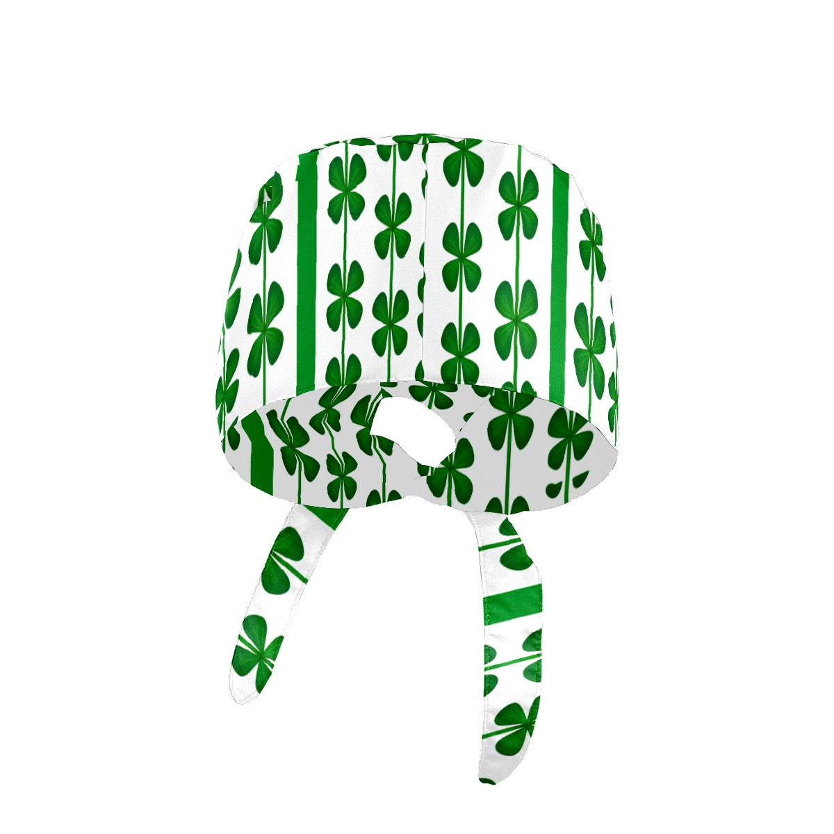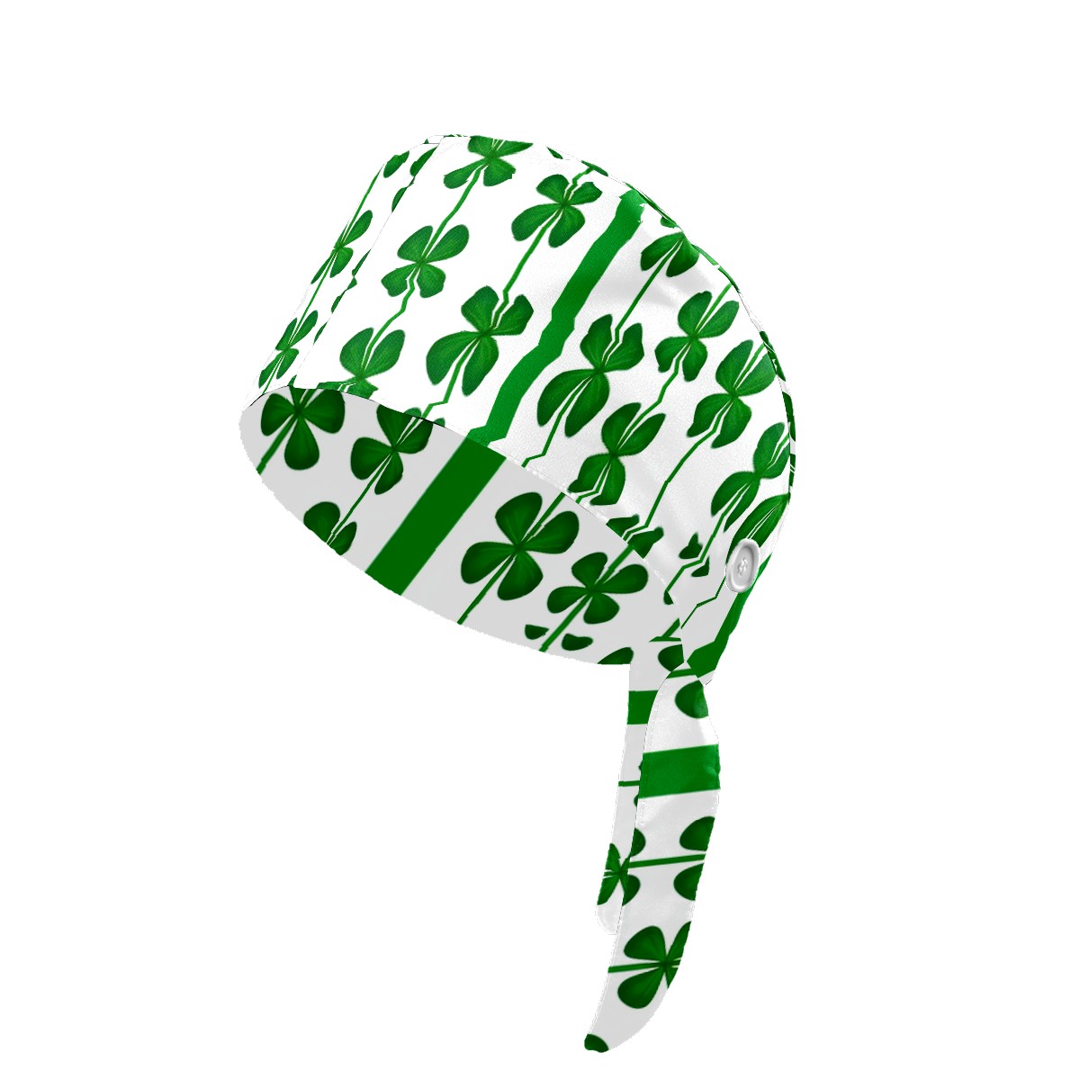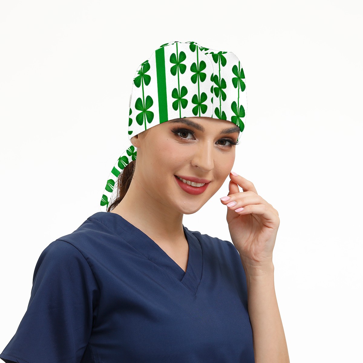 Working Caps with Button&Sweatband Satin Lined Cotton Adjustable Nurse Hats Elastic Band Scrub Cap Surgeon Hat Green Shamrock Leaf Pattern (1)