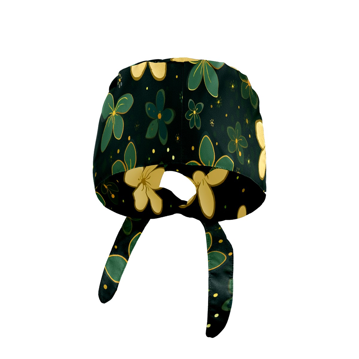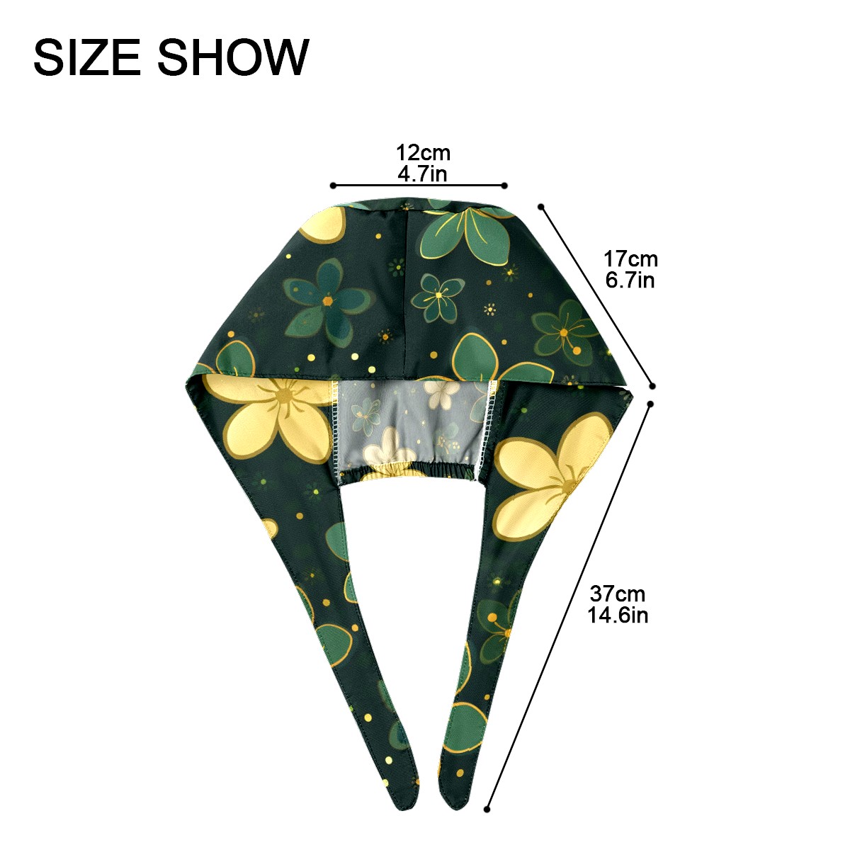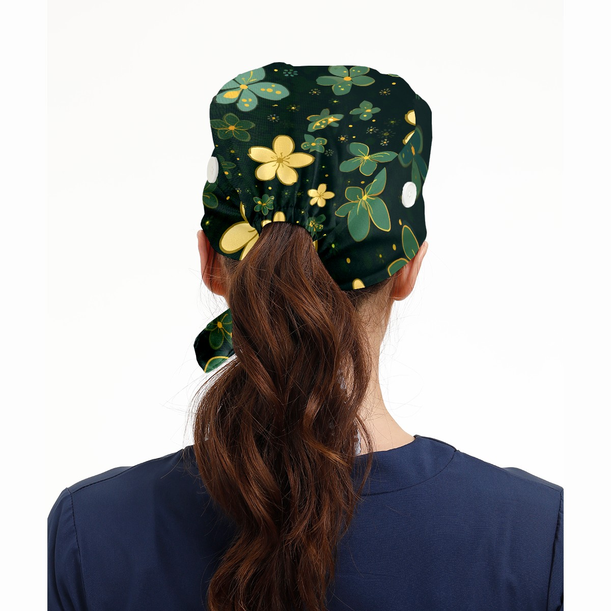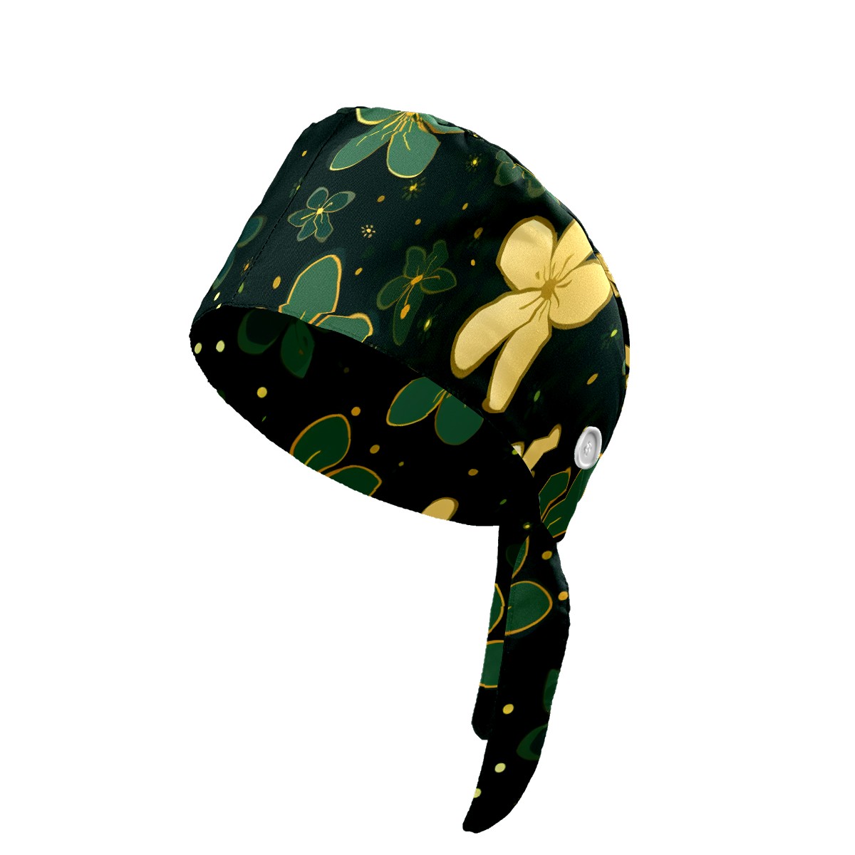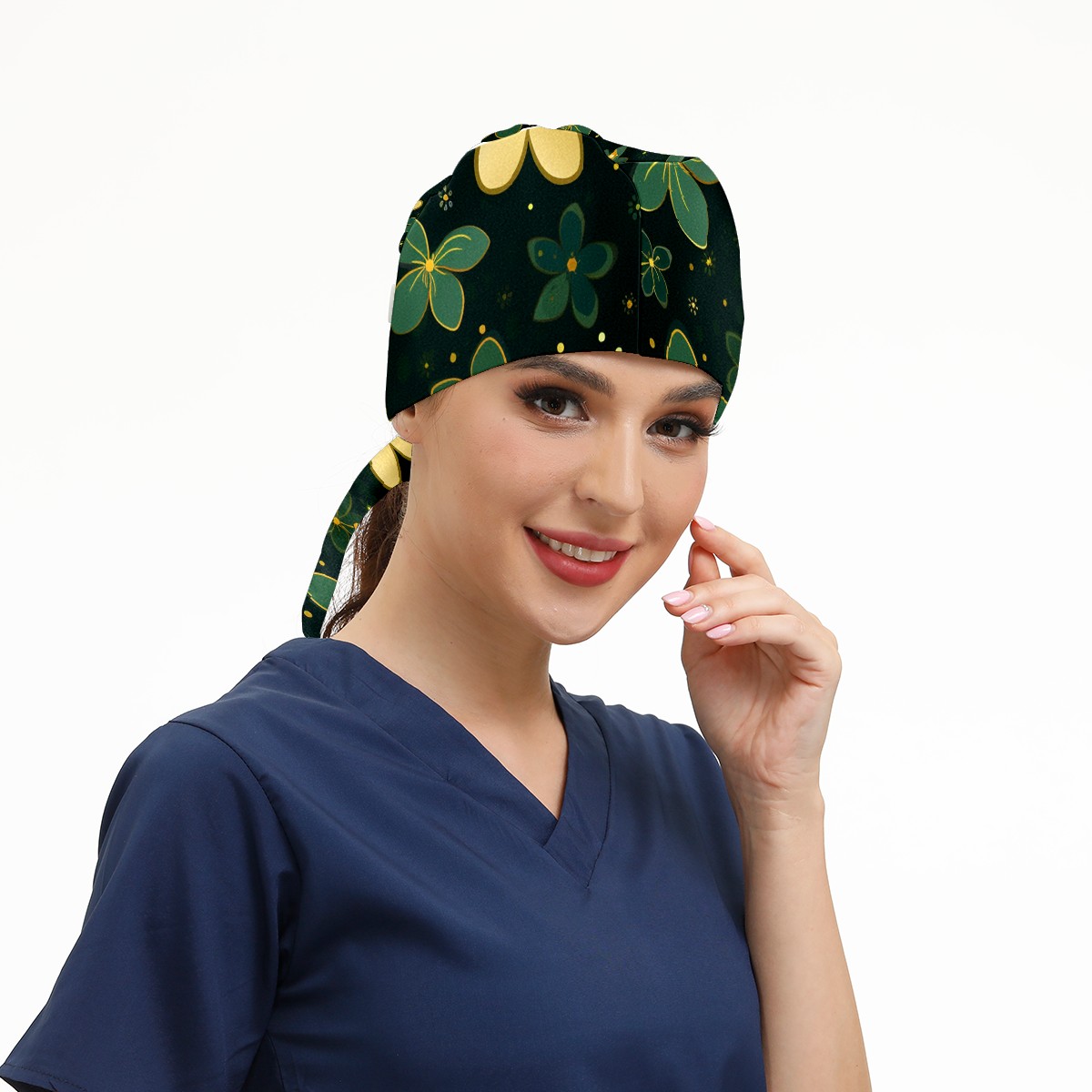 Working Caps with Button&Sweatband Satin Lined Cotton Adjustable Nurse Hats Elastic Band Scrub Cap Surgeon Hat Gold Flowers (5)