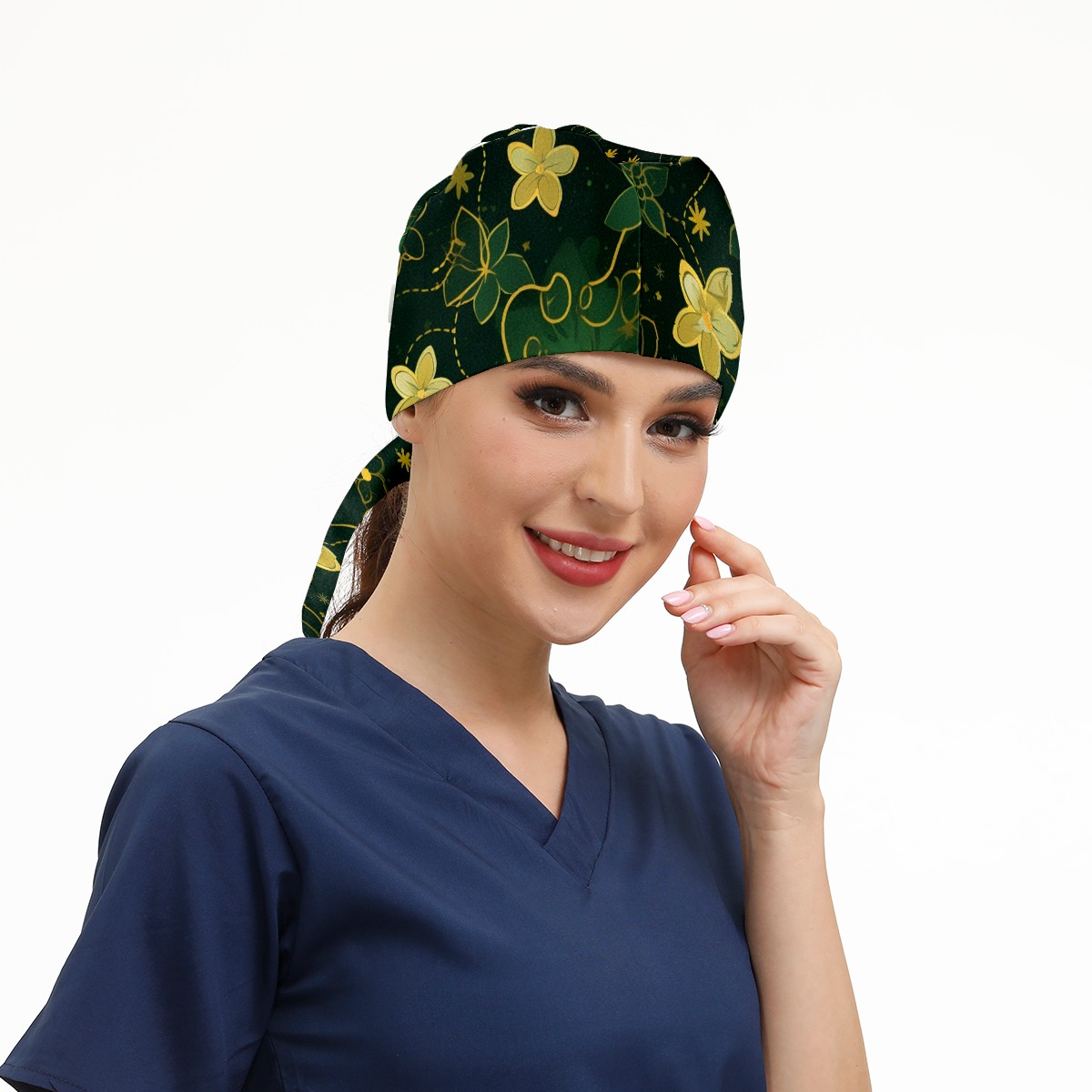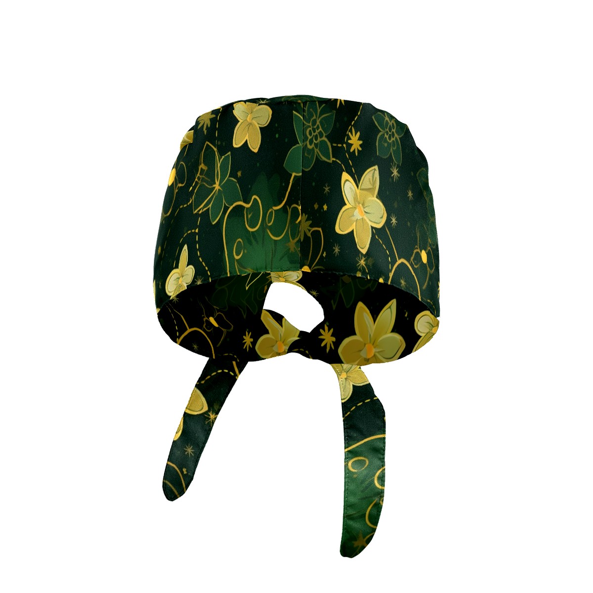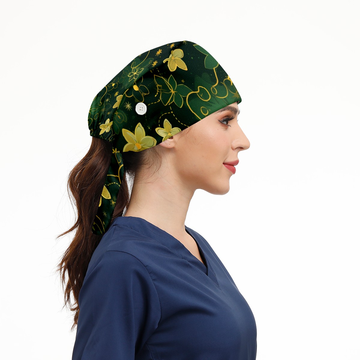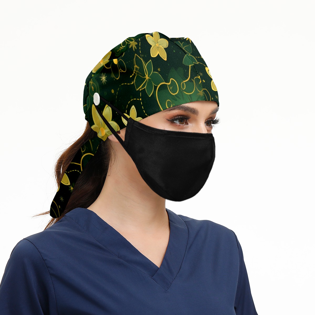 Working Caps with Button&Sweatband Satin Lined Cotton Adjustable Nurse Hats Elastic Band Scrub Cap Surgeon Hat Gold Flowers (2)