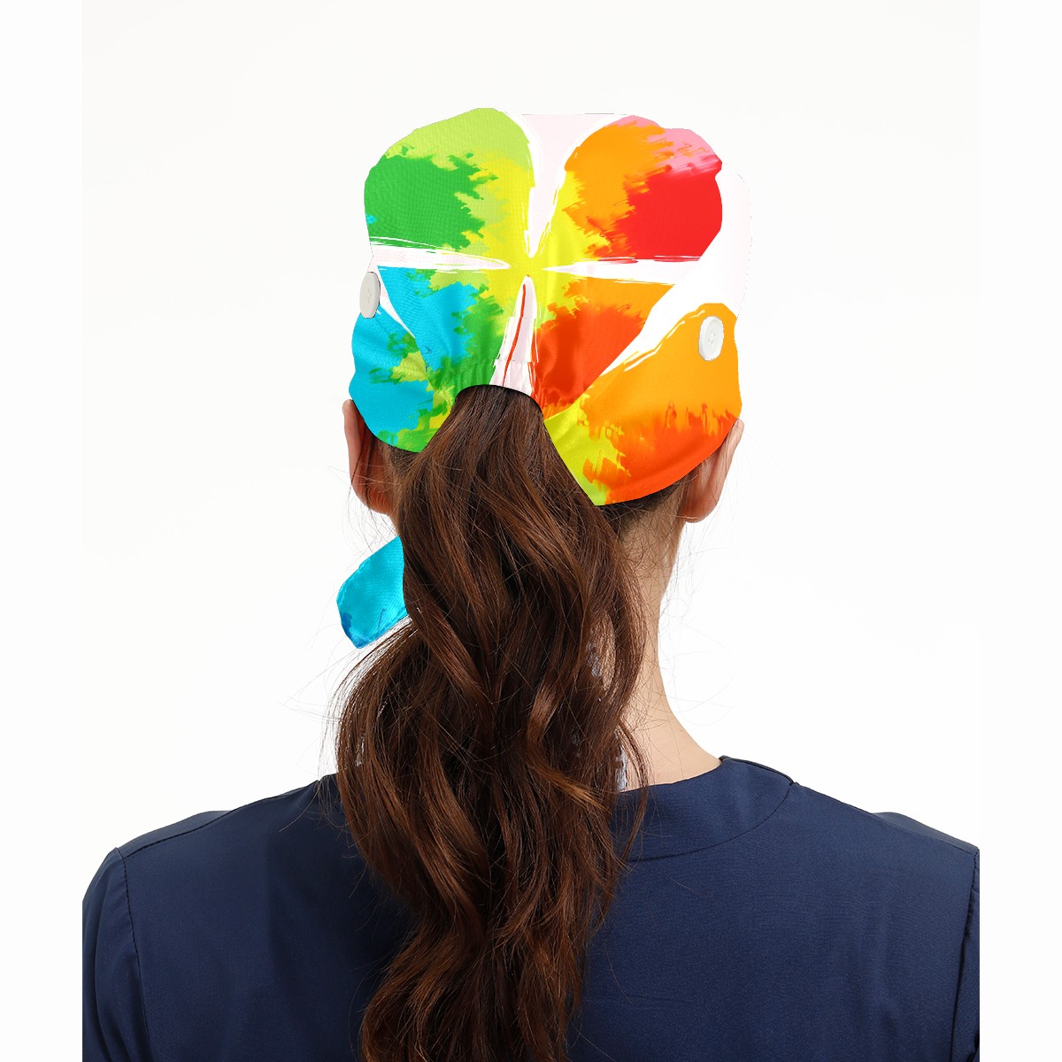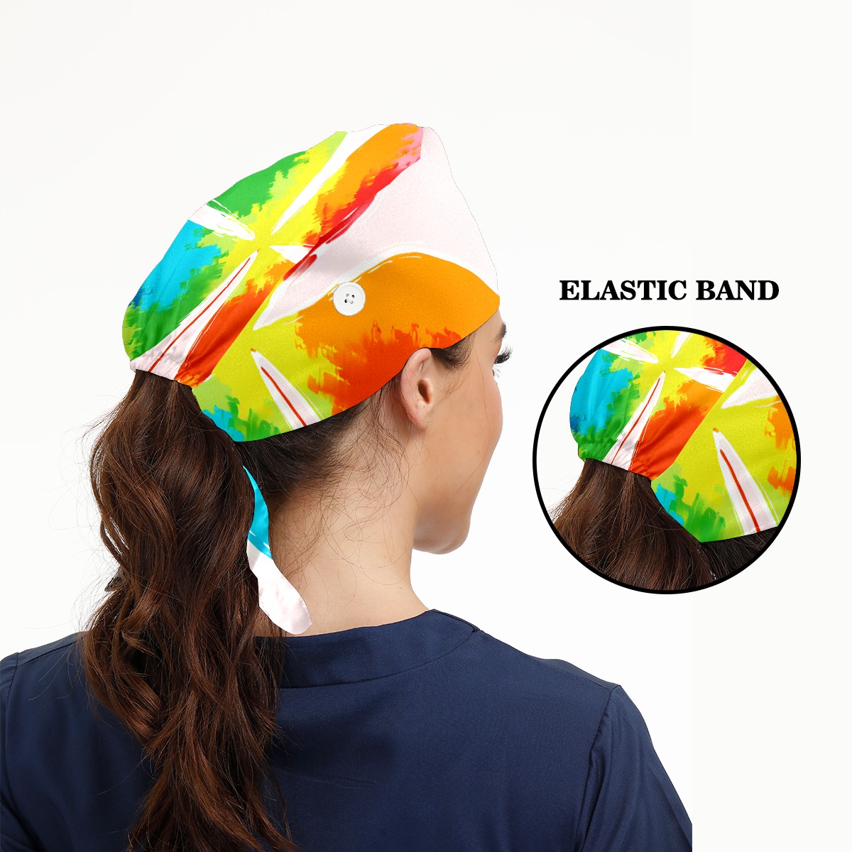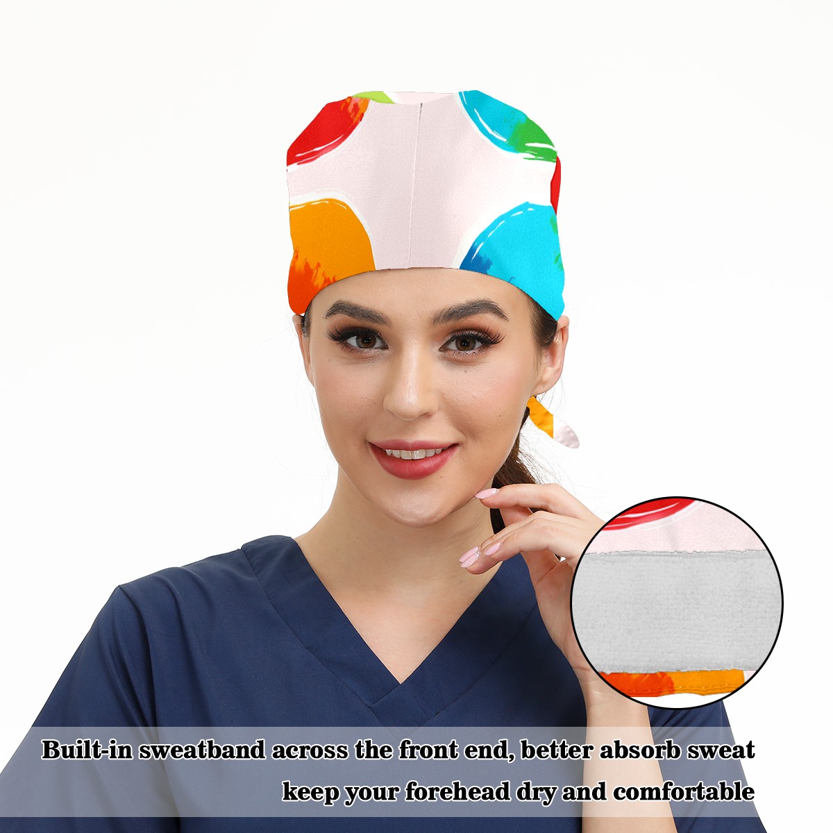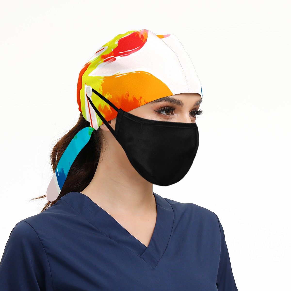 Working Caps with Button&Sweatband Satin Lined Cotton Adjustable Nurse Hats Elastic Band Scrub Cap Surgeon Hat FourLeafClover (42)