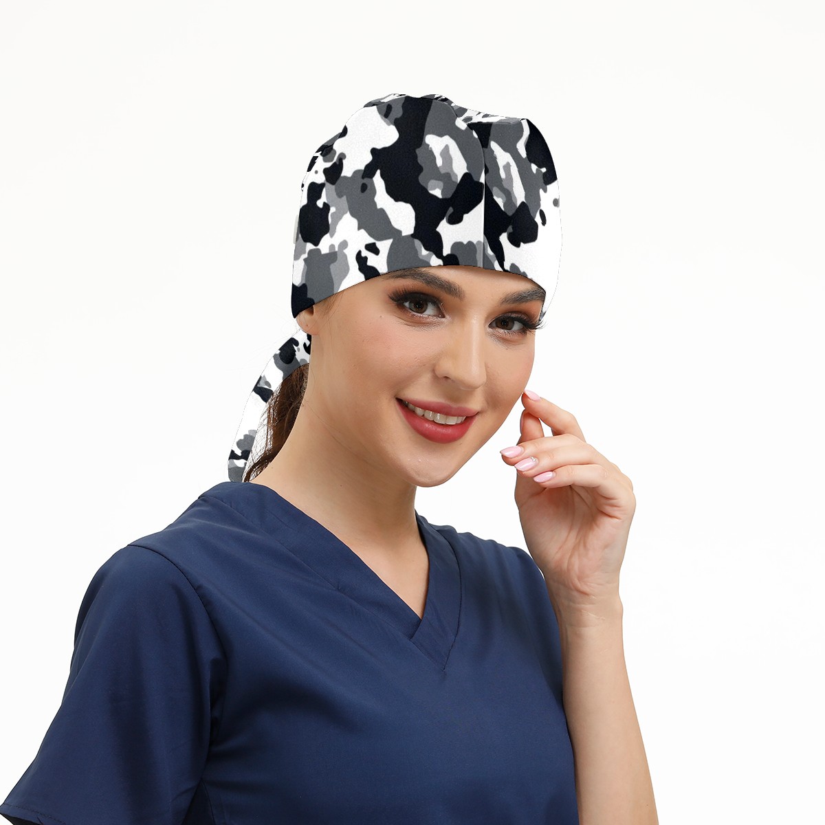 Working Caps with Button&Sweatband Satin Lined Cotton Adjustable Nurse Hats Elastic Band Scrub Cap Surgeon Hat Black White Marble Texture