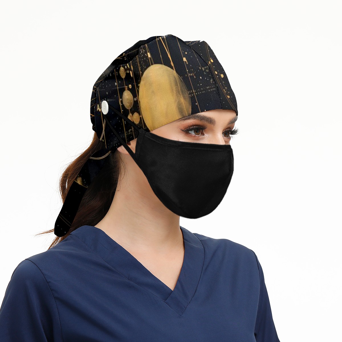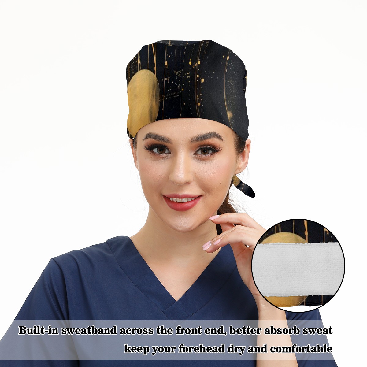 Working Caps with Button&Sweatband Satin Lined Cotton Adjustable Nurse Hats Elastic Band Scrub Cap Surgeon Hat Galaxy Starry Sky