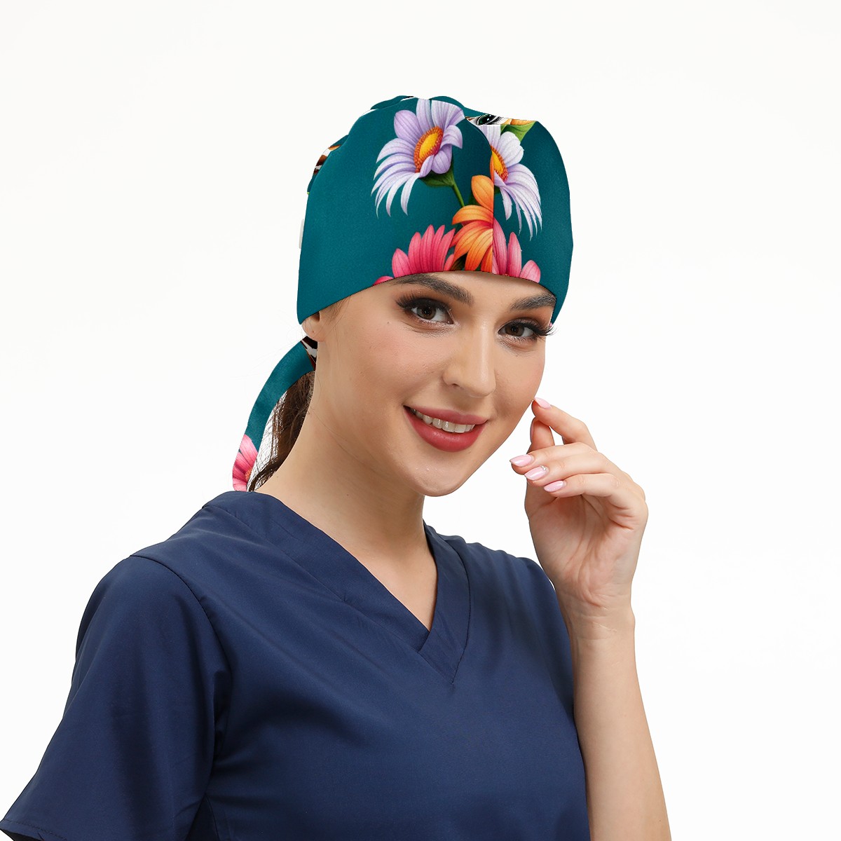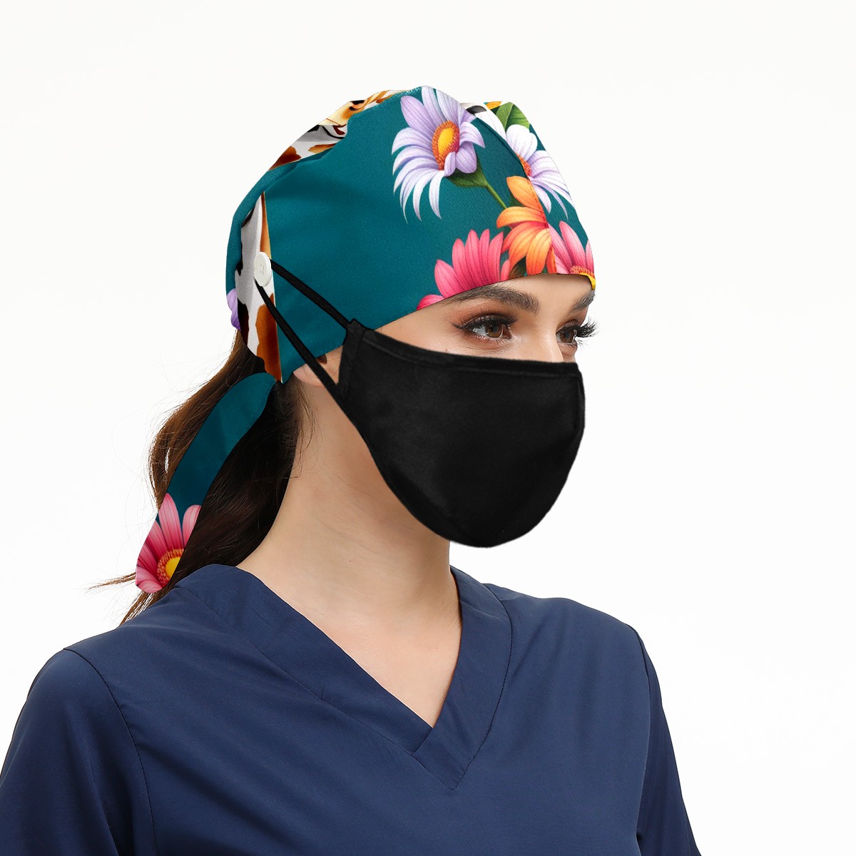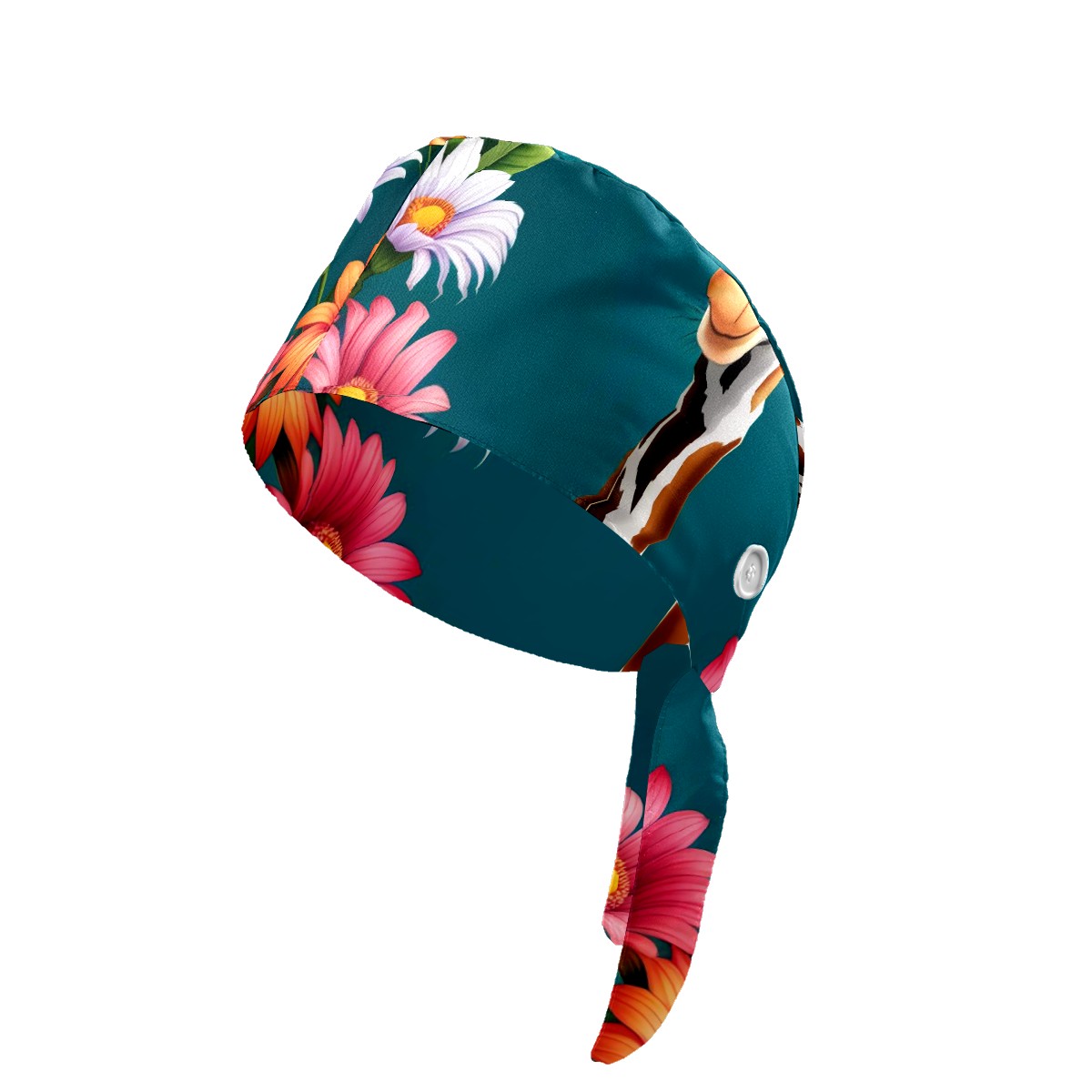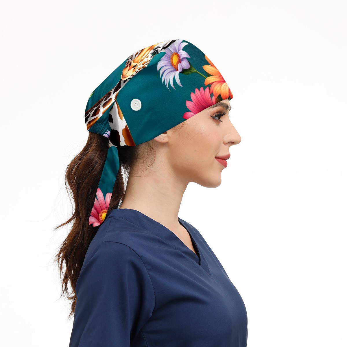 Working Caps with Button&Sweatband Satin Lined Cotton Adjustable Nurse Hats Elastic Band Scrub Cap Surgeon Hat Cute Giraffe