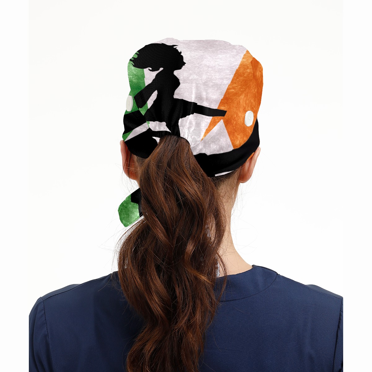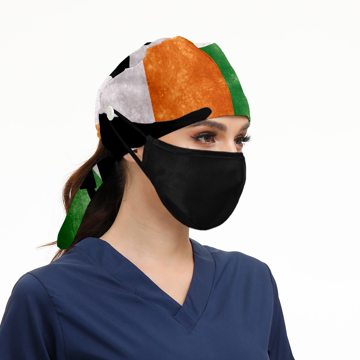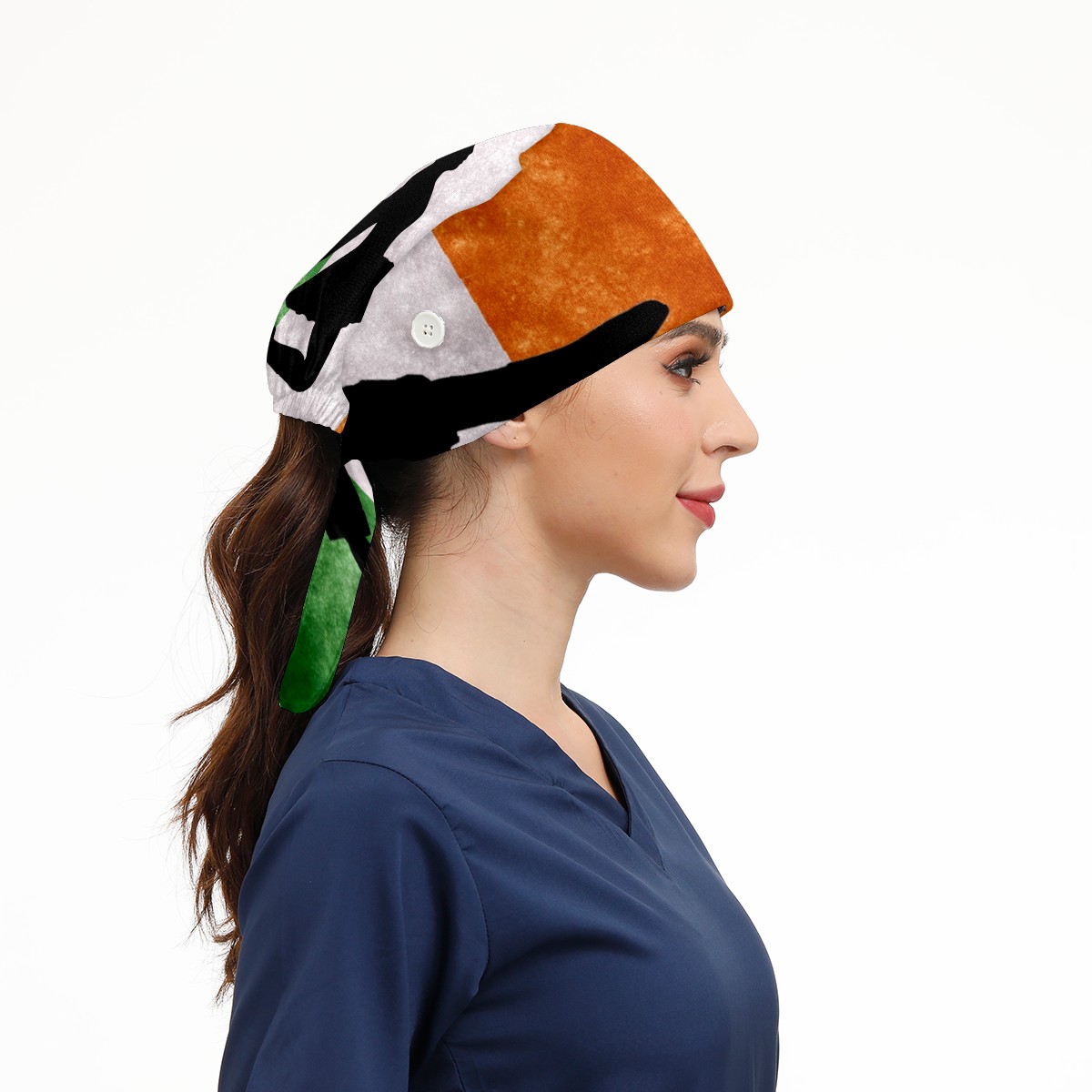 Working Caps with Button&Sweatband Satin Lined Cotton Adjustable Nurse Hats Elastic Band Scrub Cap Surgeon Hat Irish Dancer On Irish Flag