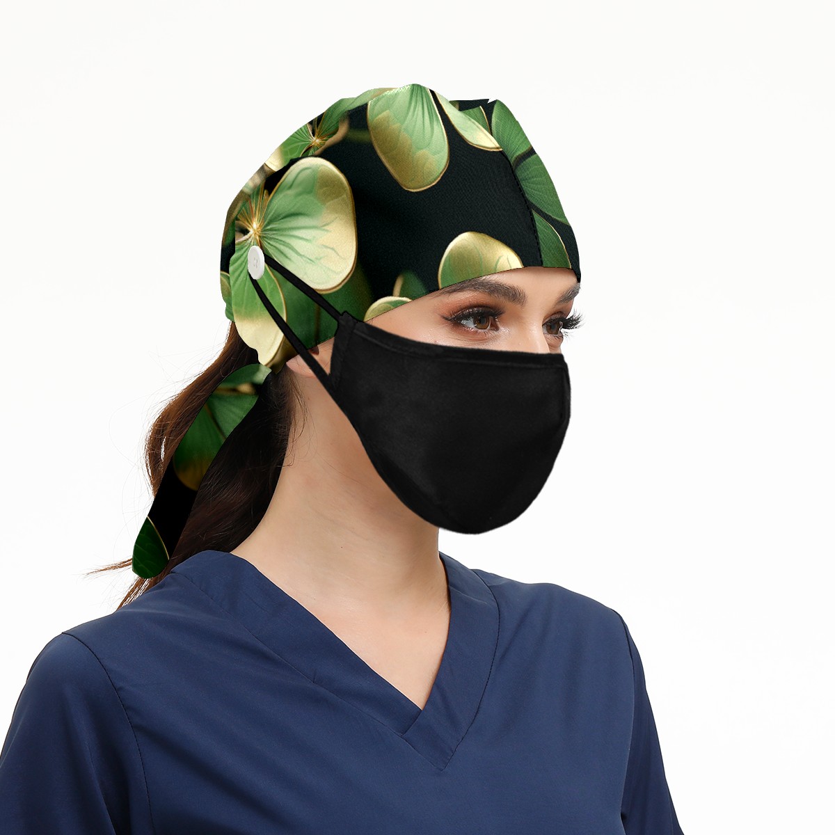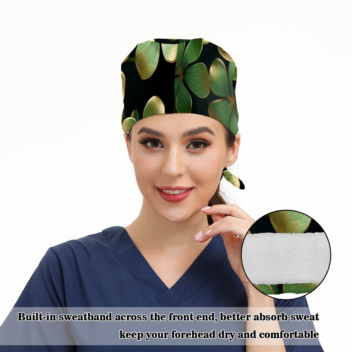 Working Caps with Button&Sweatband Satin Lined Cotton Adjustable Nurse Hats Elastic Band Scrub Cap Surgeon Hat St Patricks Day 66