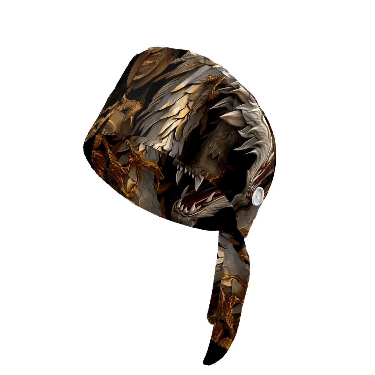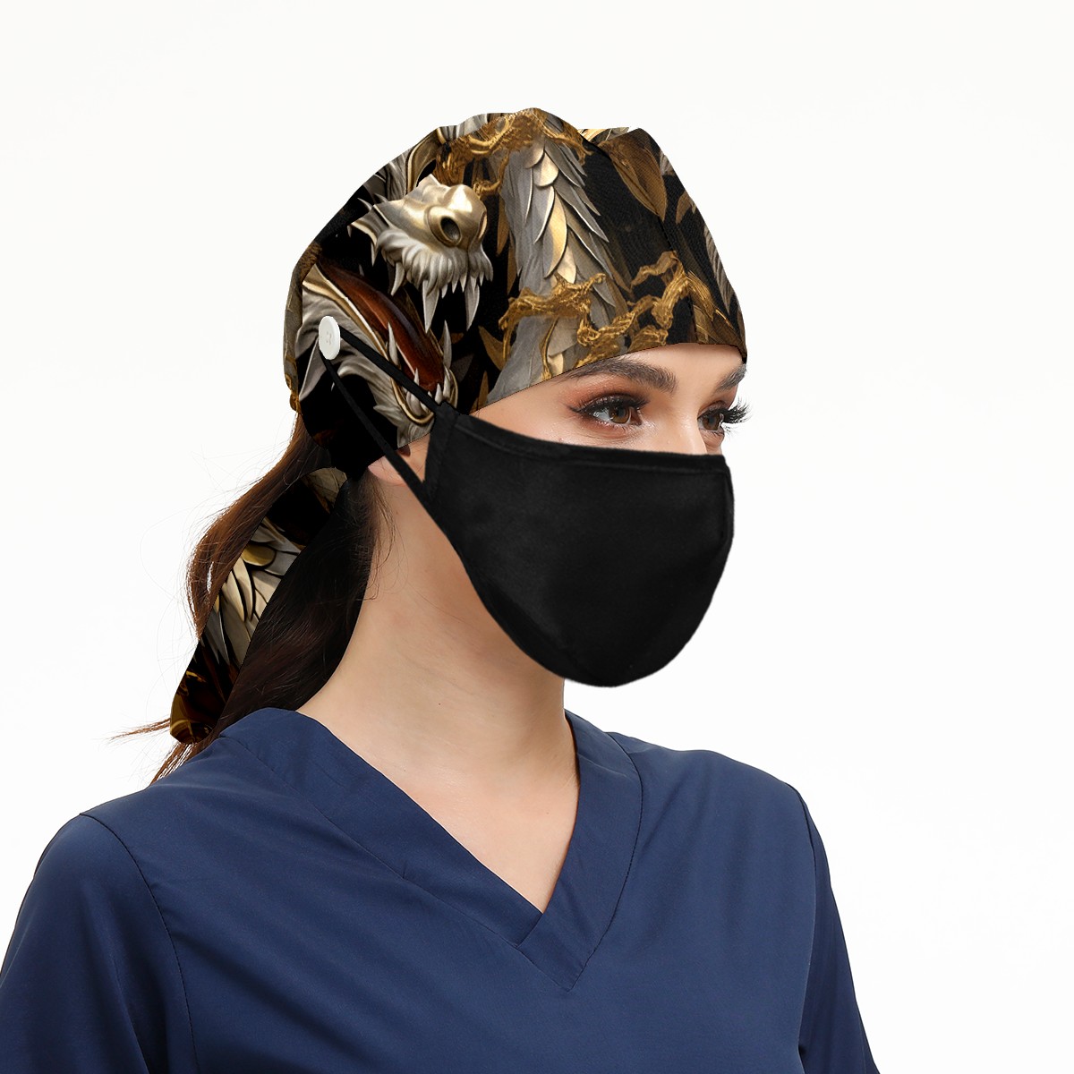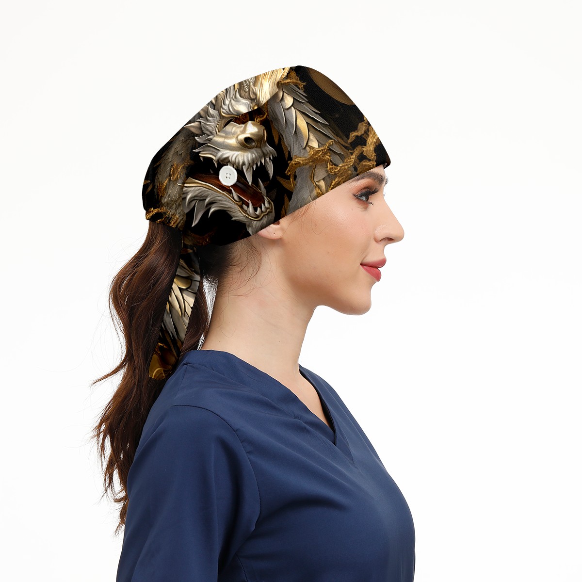 Working Caps with Button&Sweatband Satin Lined Cotton Adjustable Nurse Hats Elastic Band Scrub Cap Surgeon Hat Dragon
