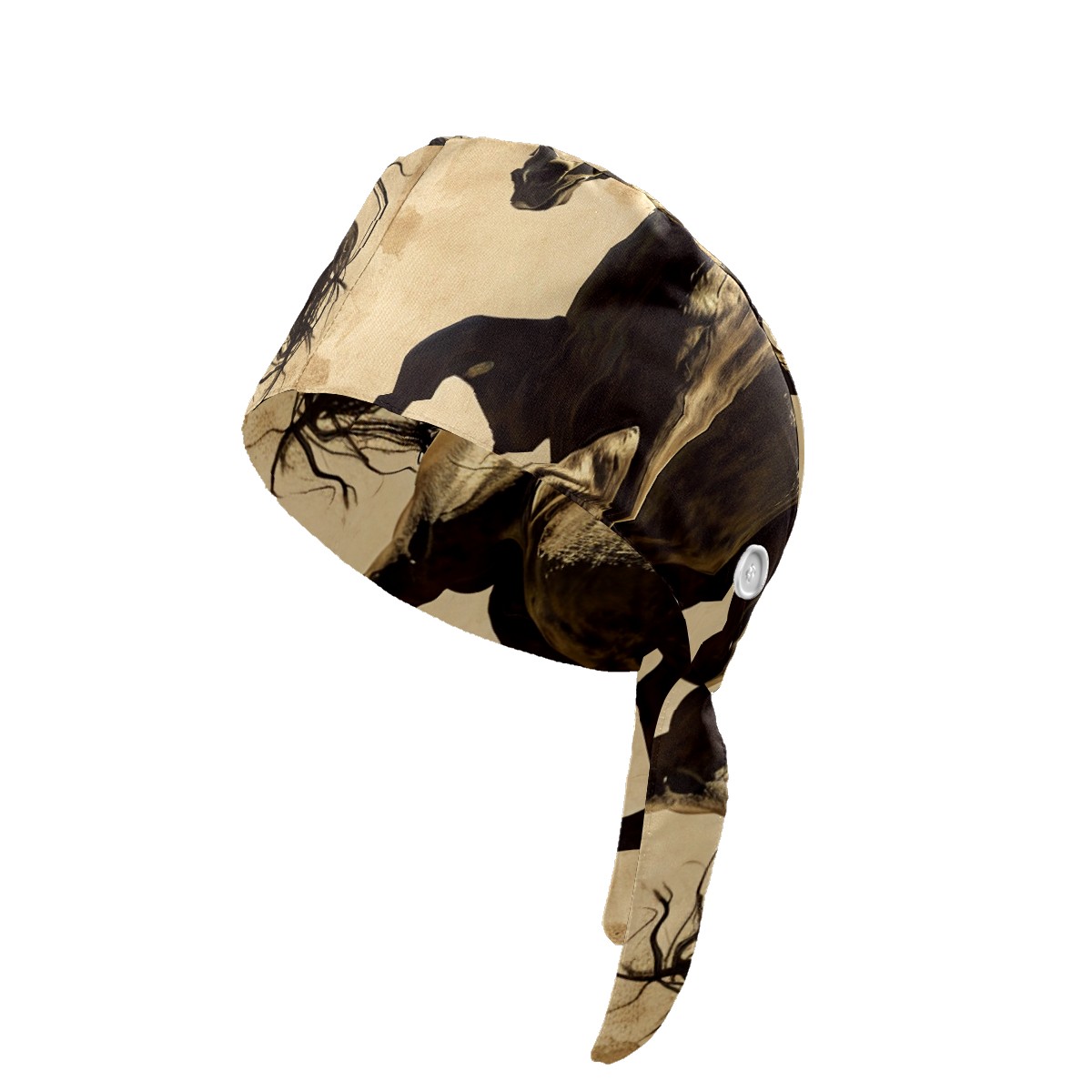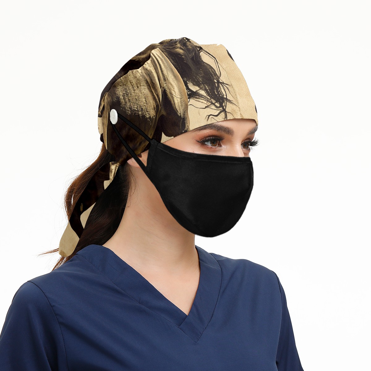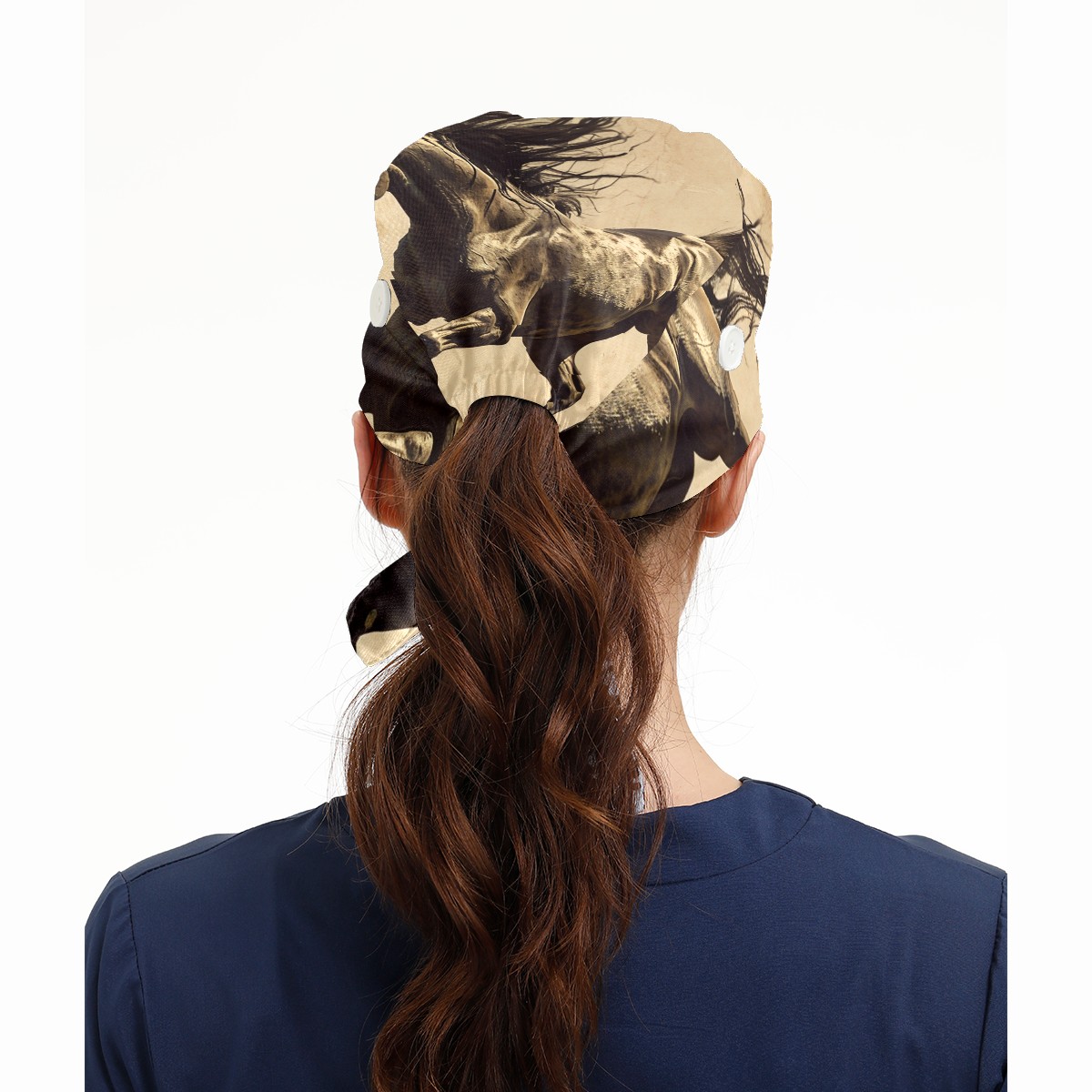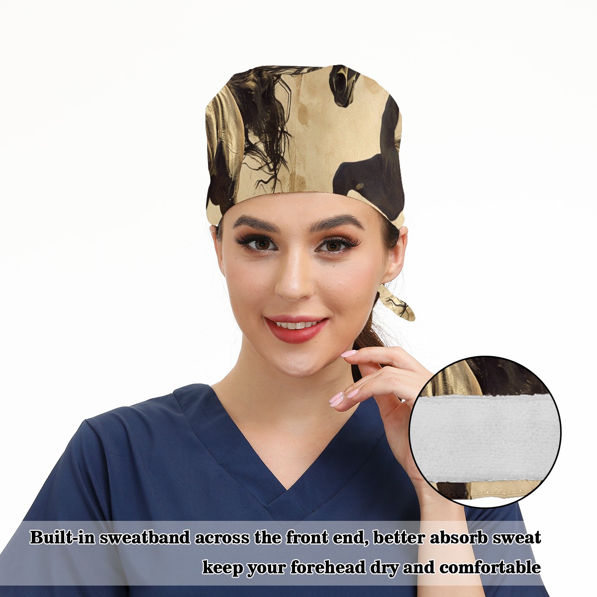Working Caps with Button&Sweatband Satin Lined Cotton Adjustable Nurse Hats Elastic Band Scrub Cap Surgeon Hat Horse