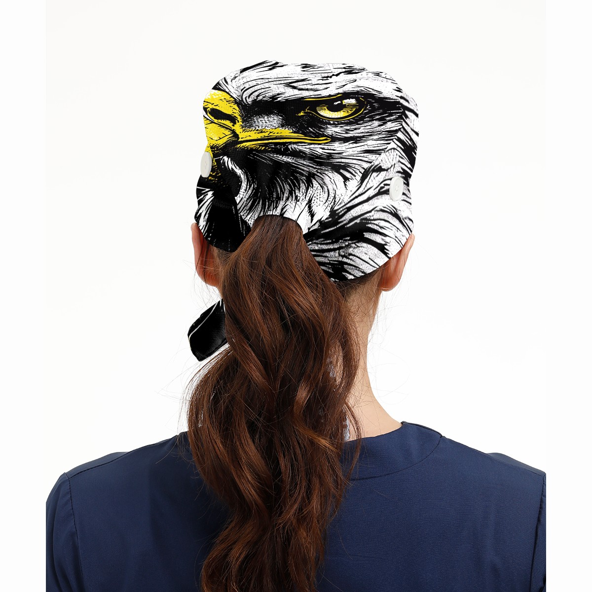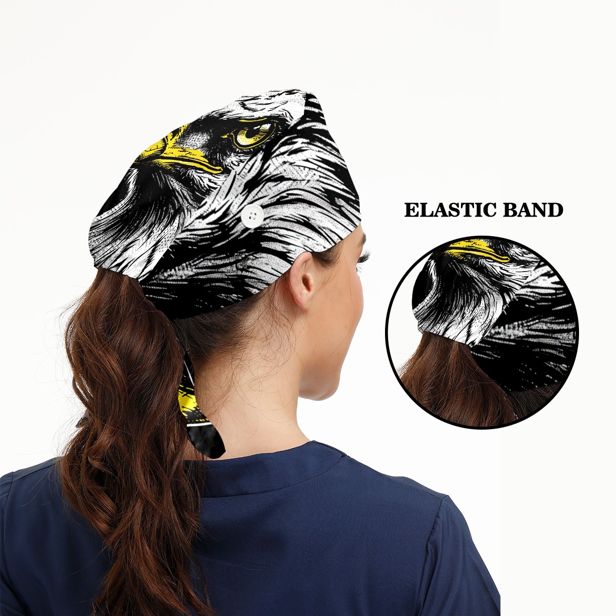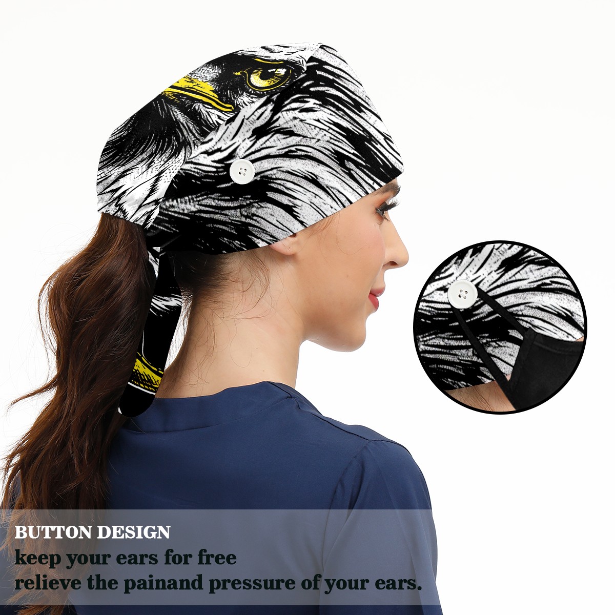 Working Caps with Button&Sweatband Satin Lined Cotton Adjustable Nurse Hats Elastic Band Scrub Cap Surgeon Hat Eagle