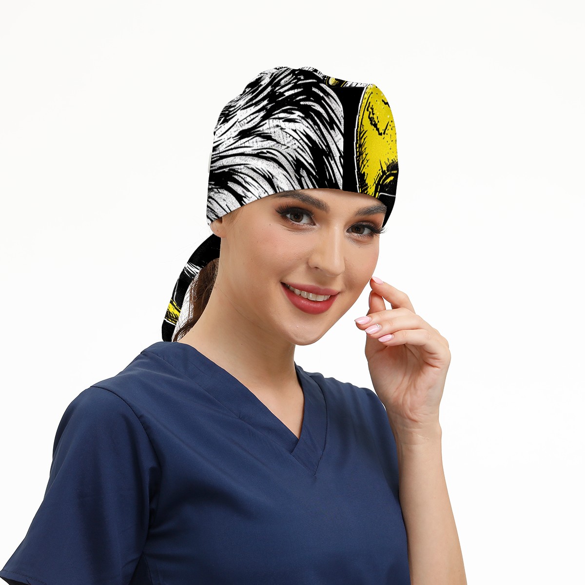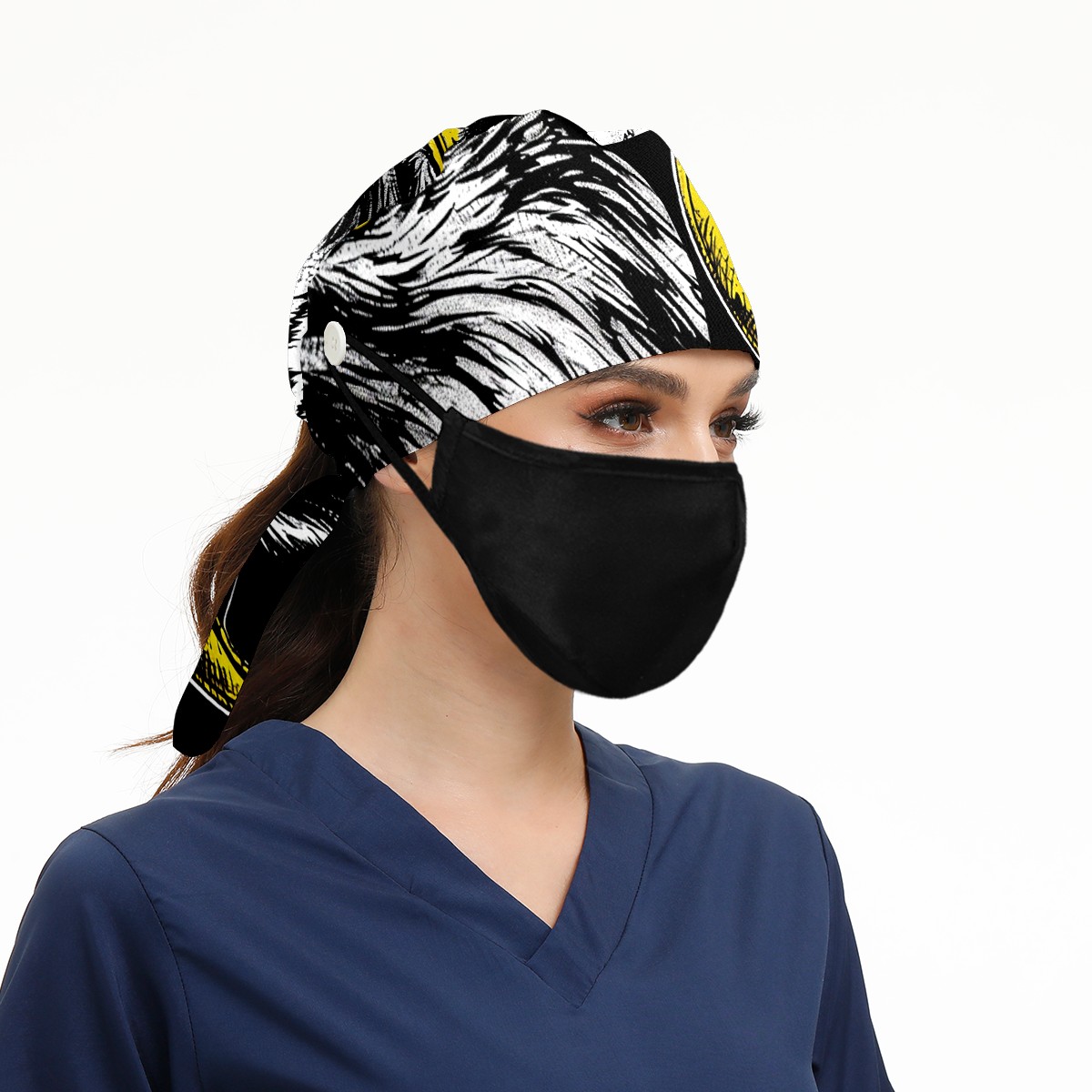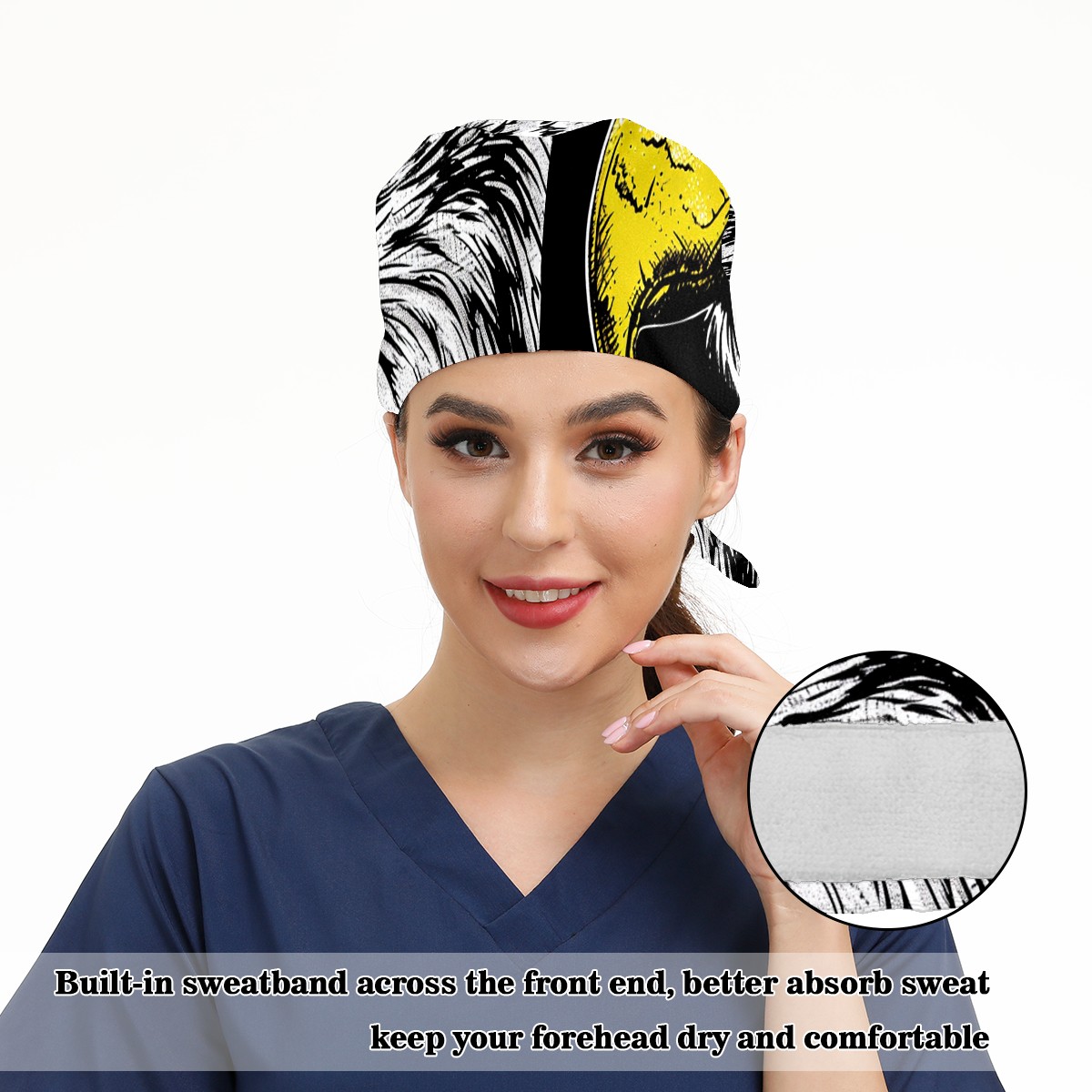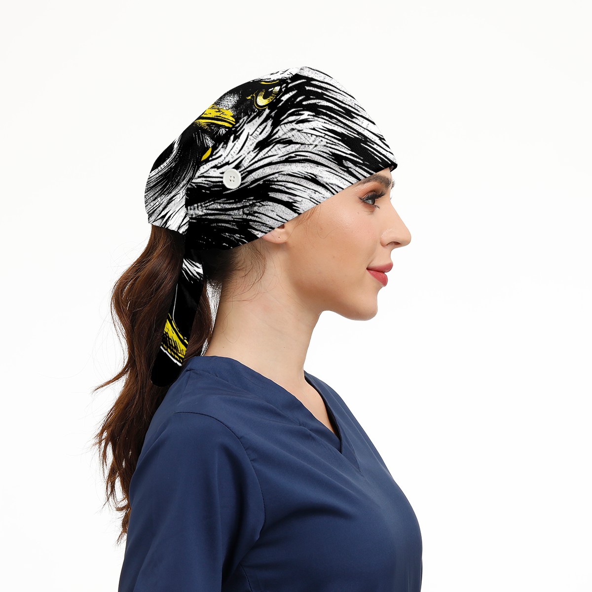 Working Caps with Button&Sweatband Satin Lined Cotton Adjustable Nurse Hats Elastic Band Scrub Cap Surgeon Hat Eagle