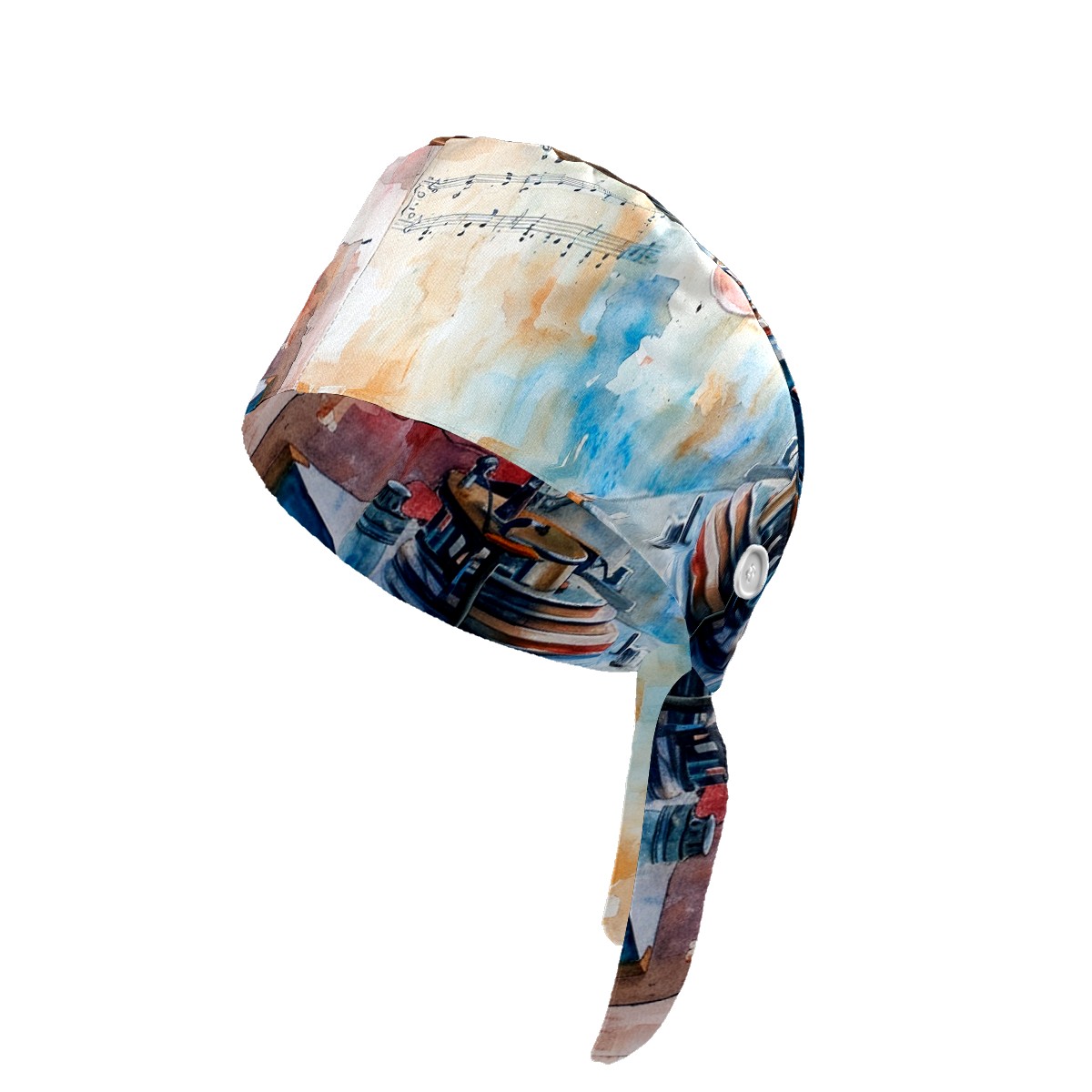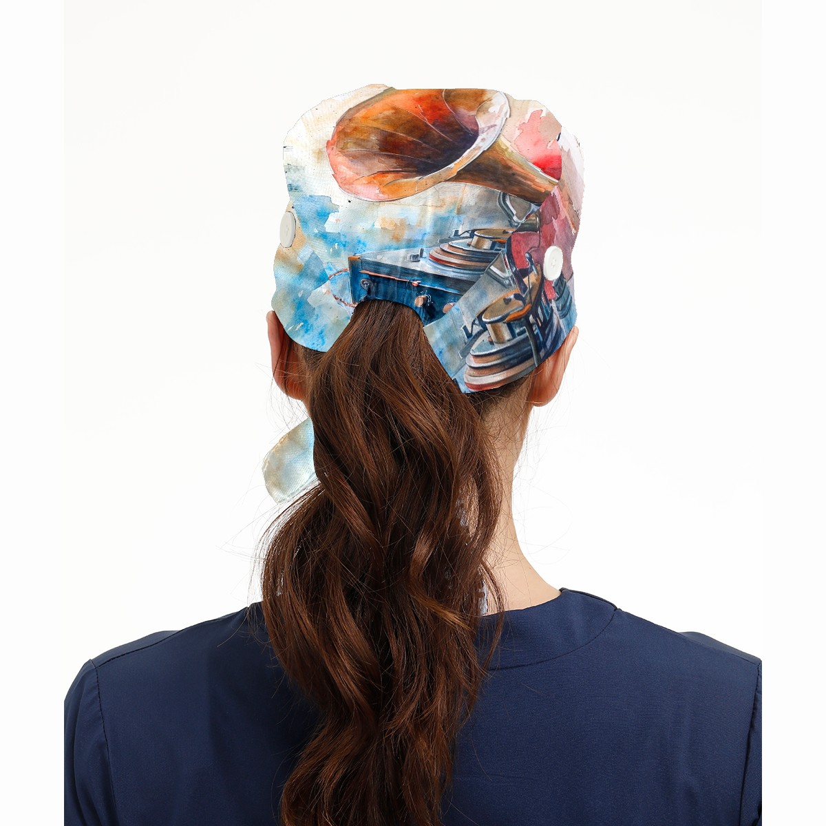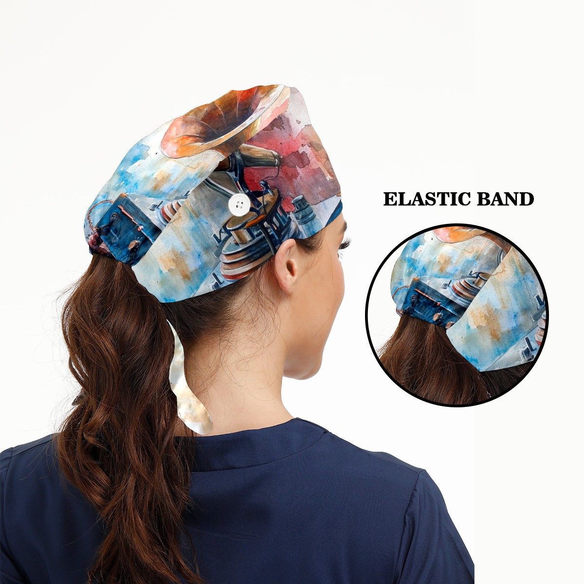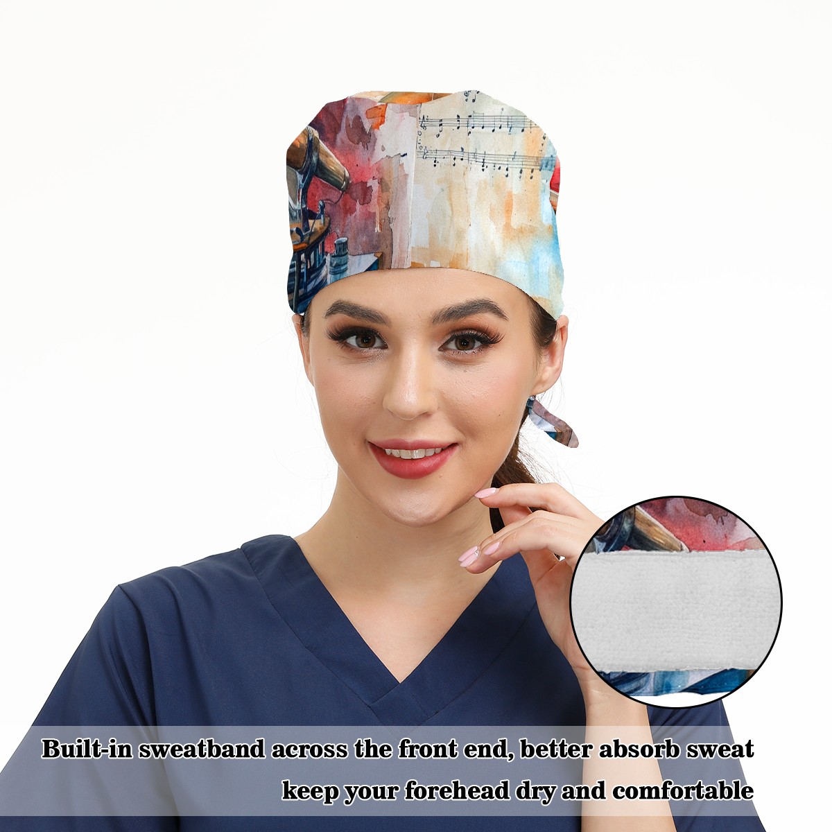 Working Caps with Button&Sweatband Satin Lined Cotton Adjustable Nurse Hats Elastic Band Scrub Cap Surgeon Hat Horn