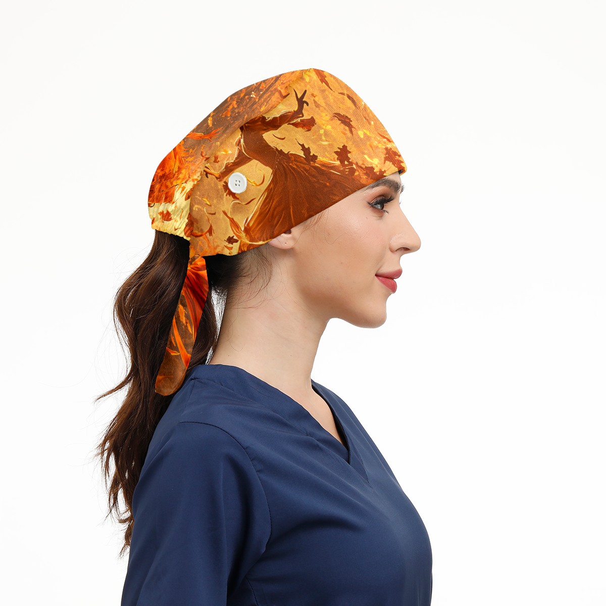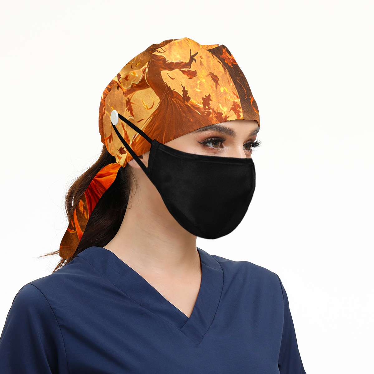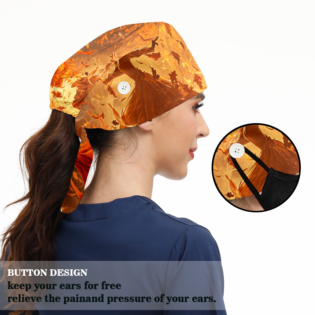Working Caps with Button&Sweatband Satin Lined Cotton Adjustable Nurse Hats Elastic Band Scrub Cap Surgeon Hat Girl