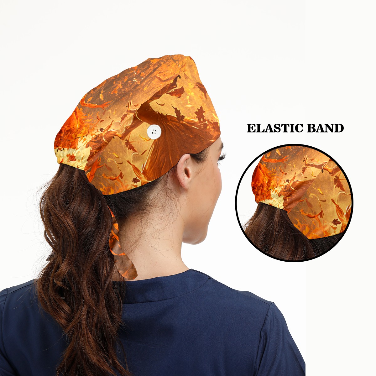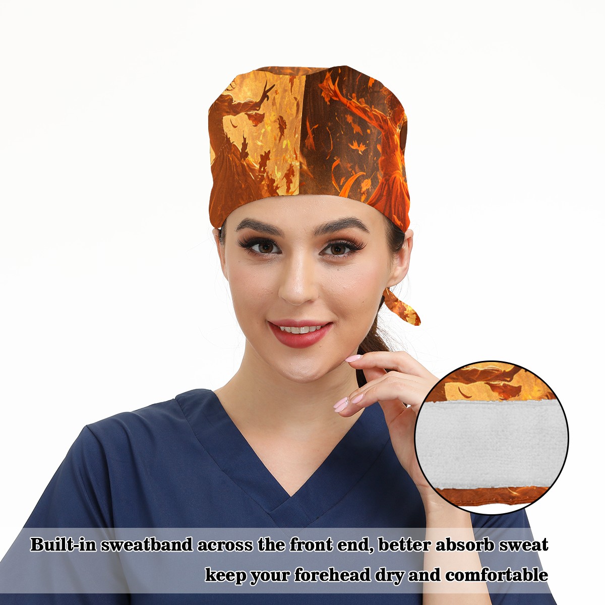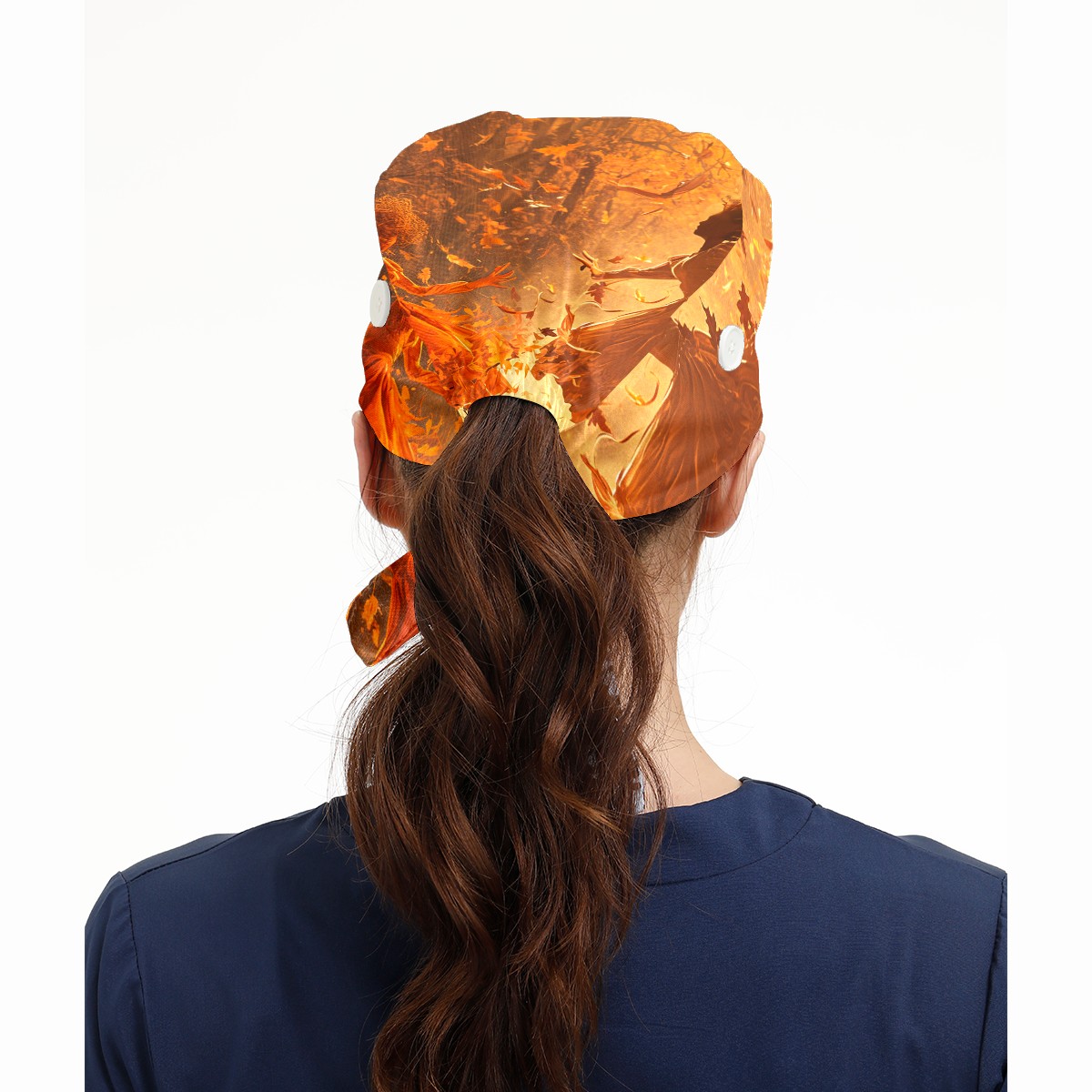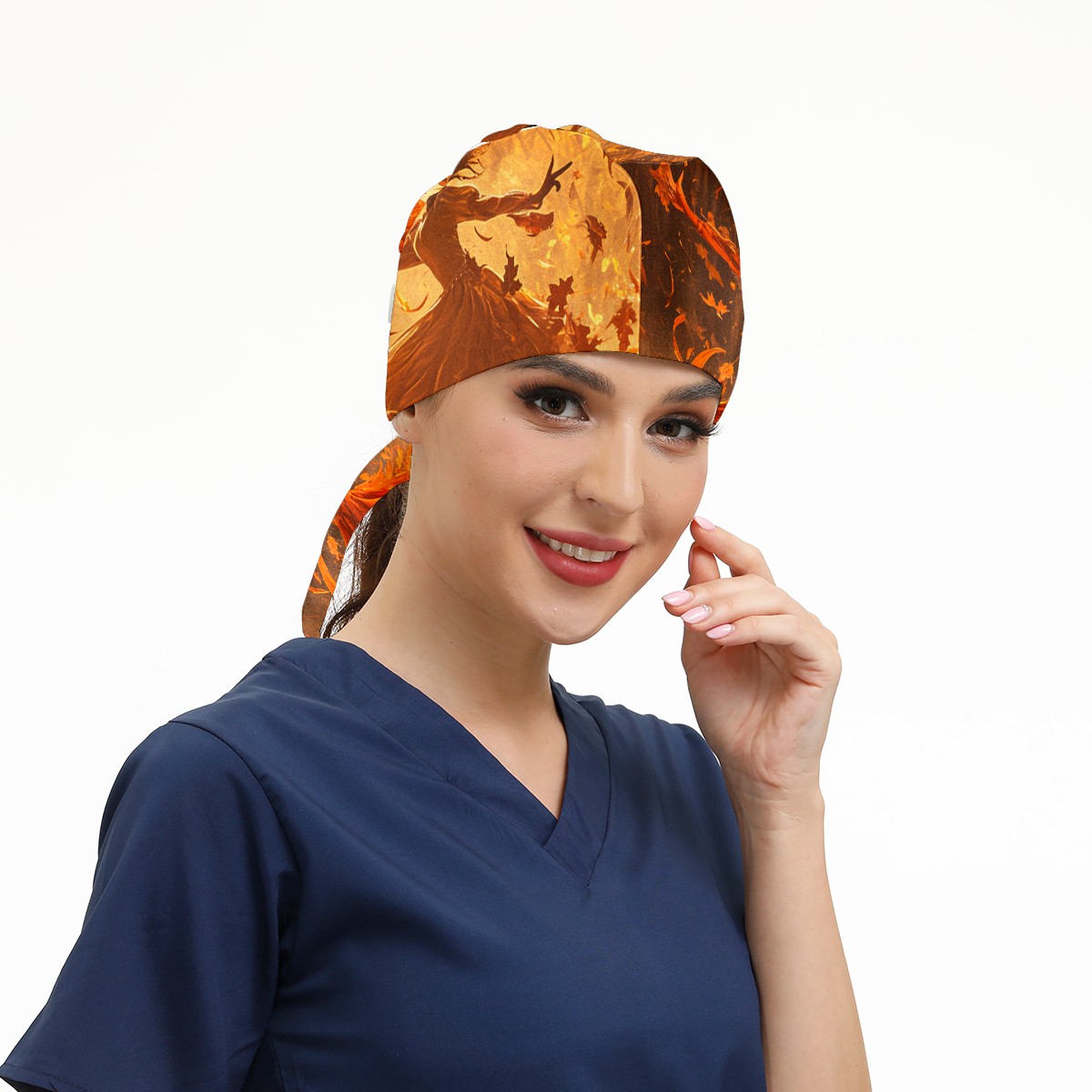 Working Caps with Button&Sweatband Satin Lined Cotton Adjustable Nurse Hats Elastic Band Scrub Cap Surgeon Hat Girl