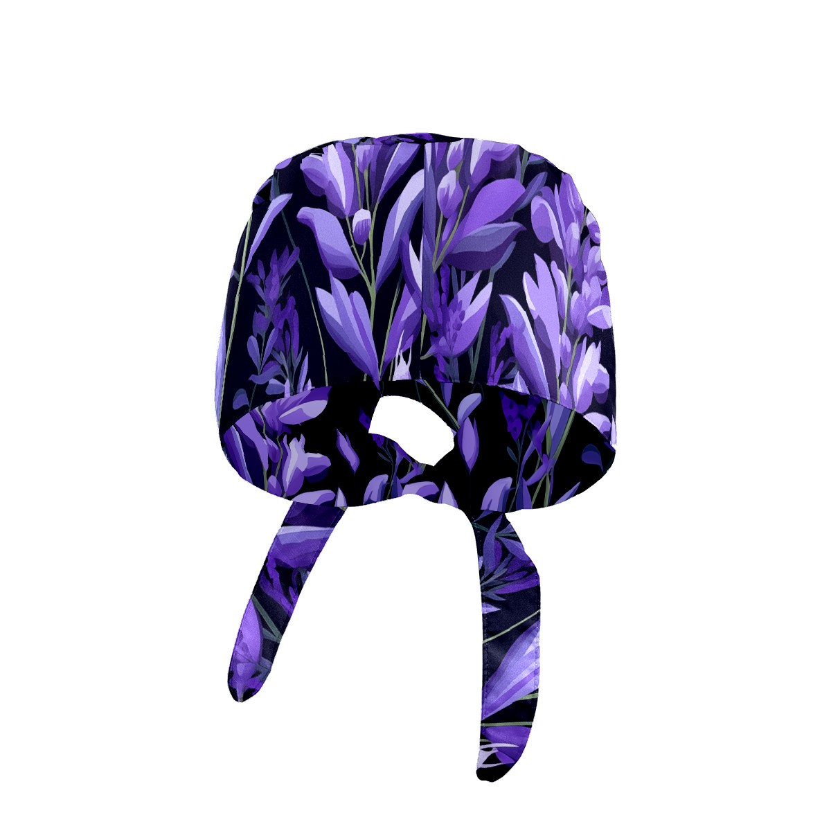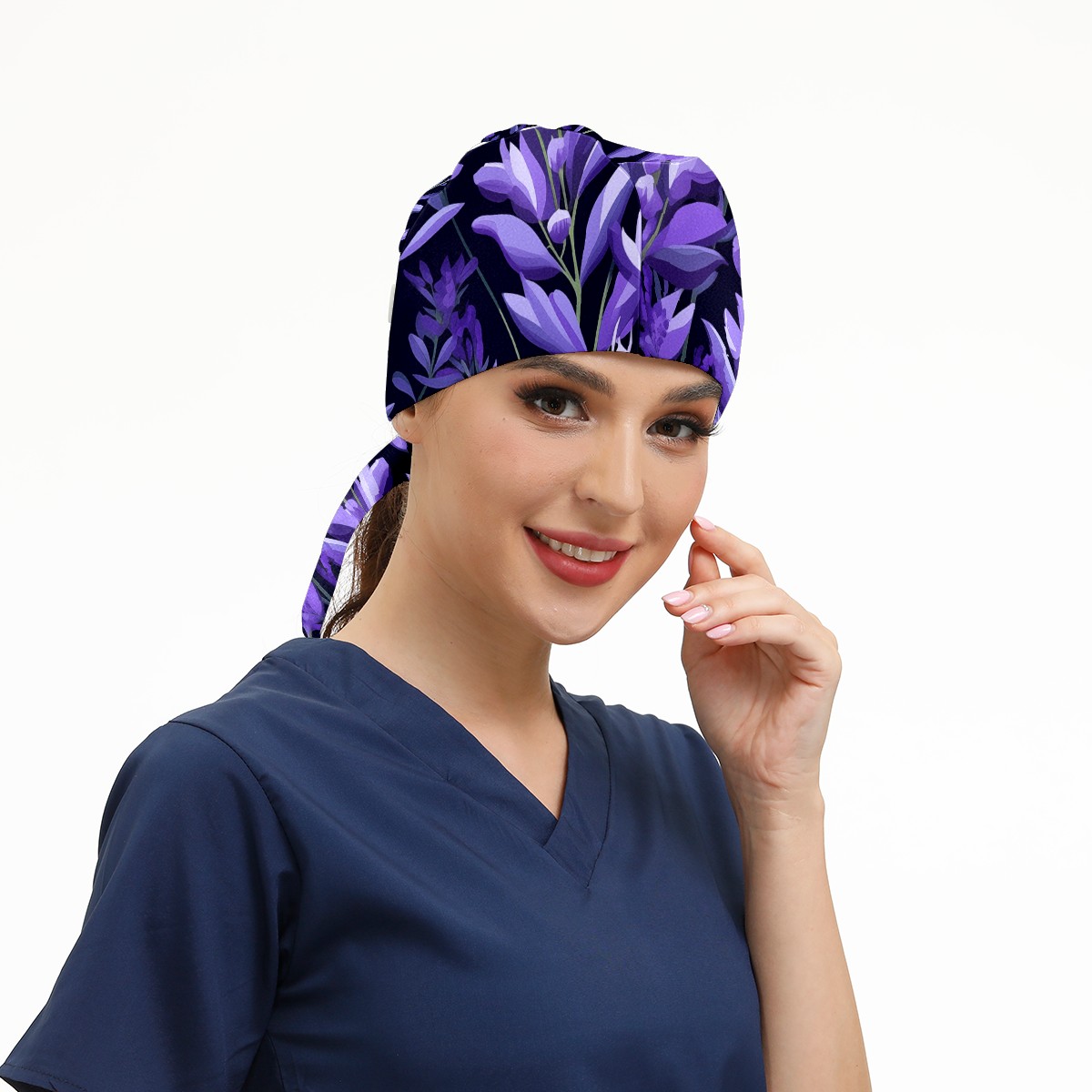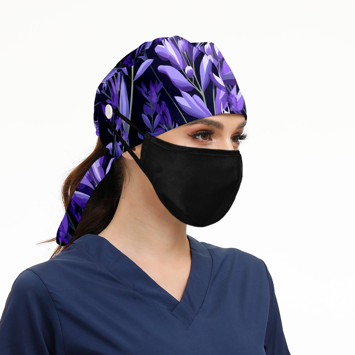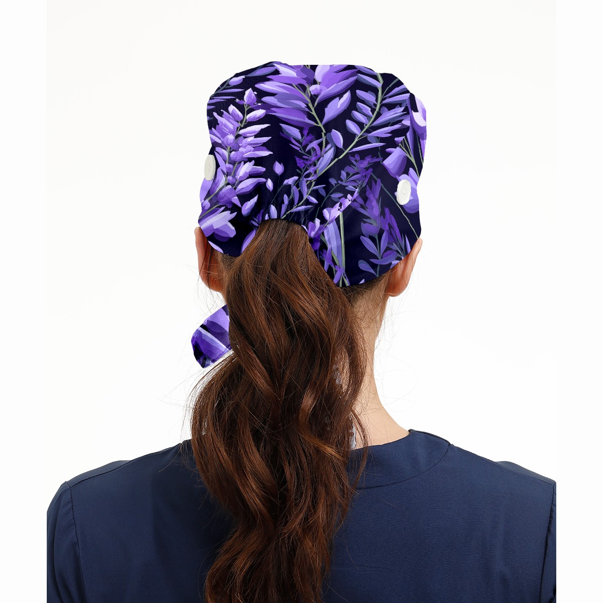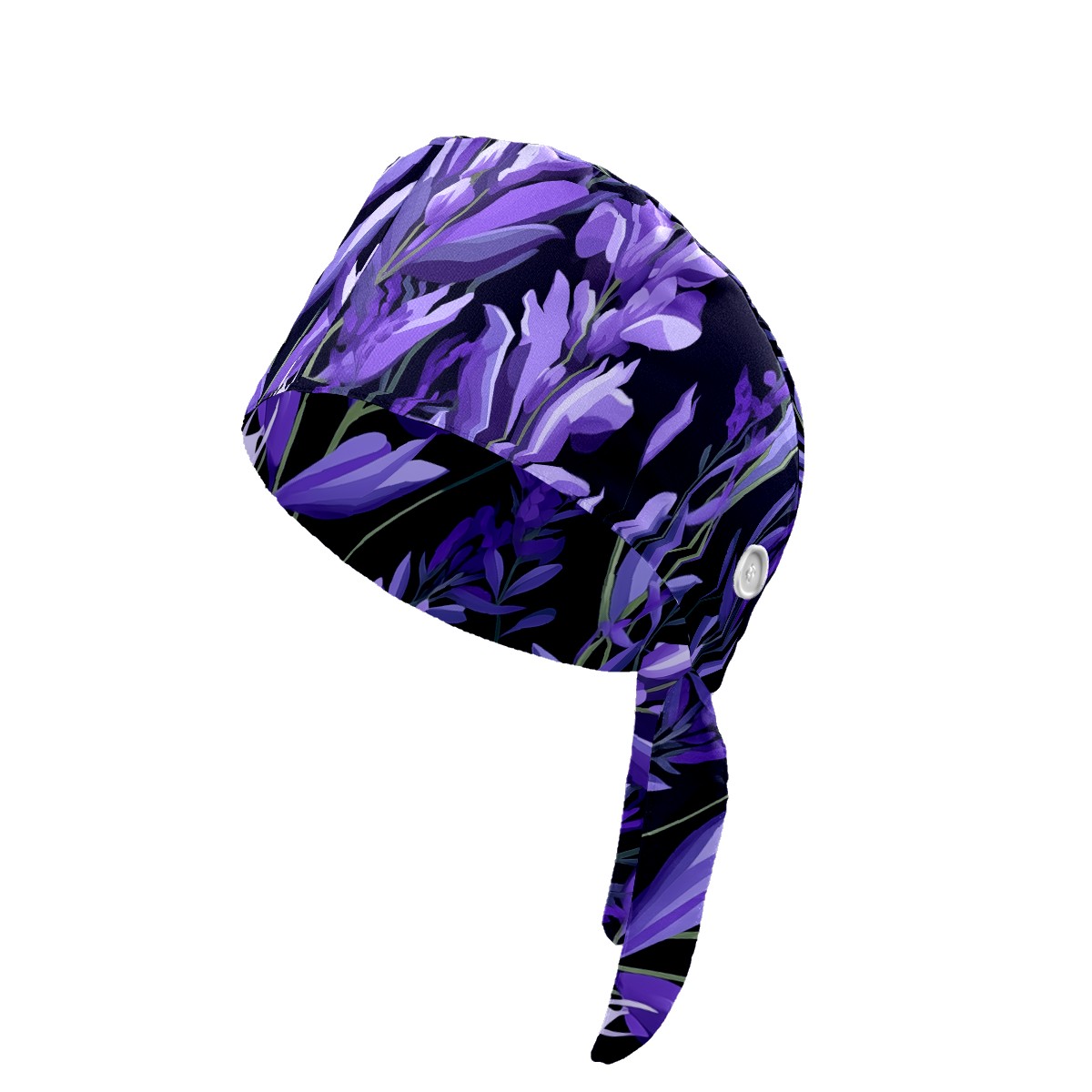 Working Caps with Button&Sweatband Satin Lined Cotton Adjustable Nurse Hats Elastic Band Scrub Cap Surgeon Hat Purple Plants