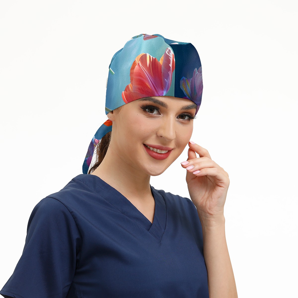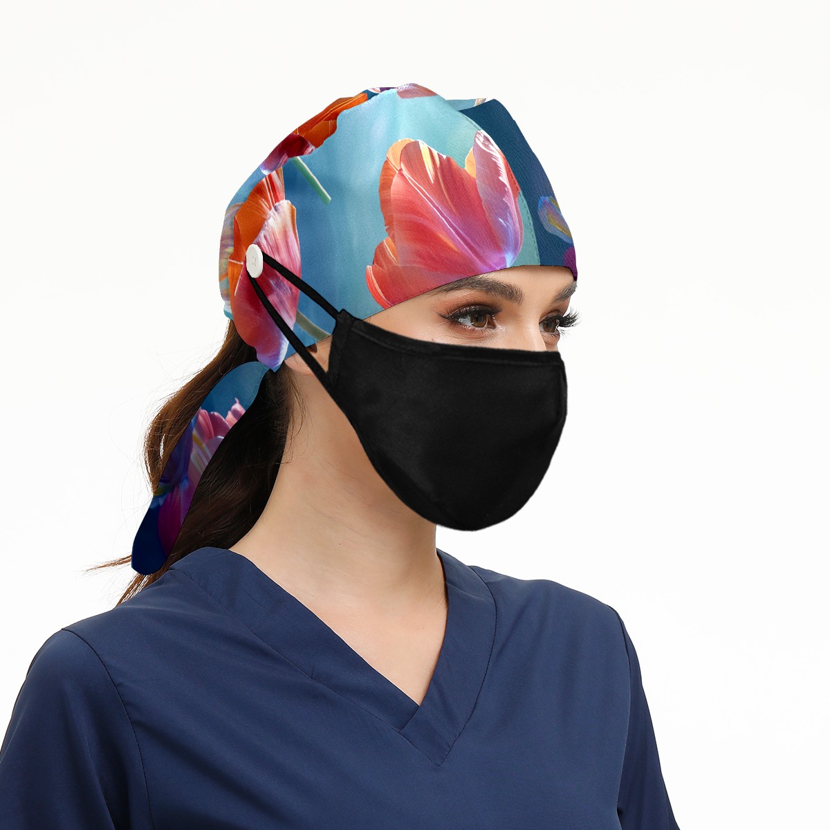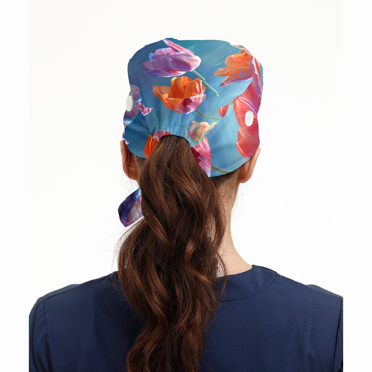 Working Caps with Button&Sweatband Satin Lined Cotton Adjustable Nurse Hats Elastic Band Scrub Cap Surgeon Hat Tulip Petal B