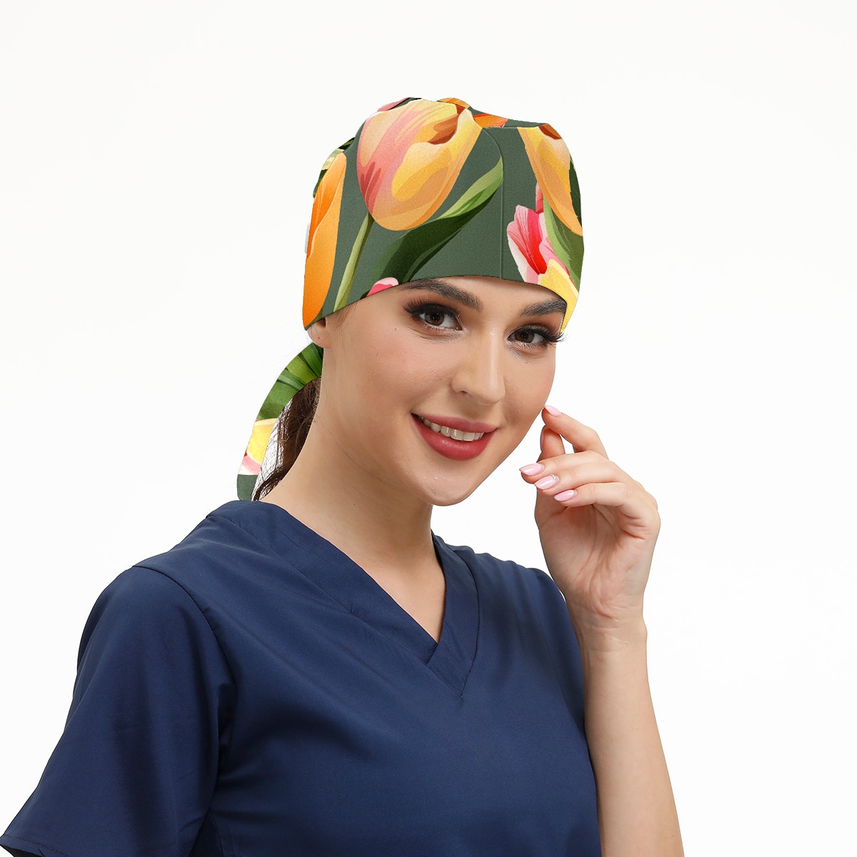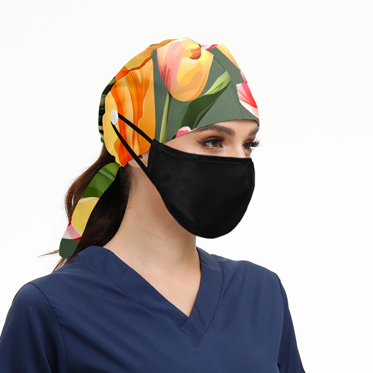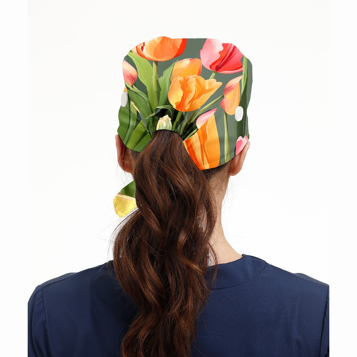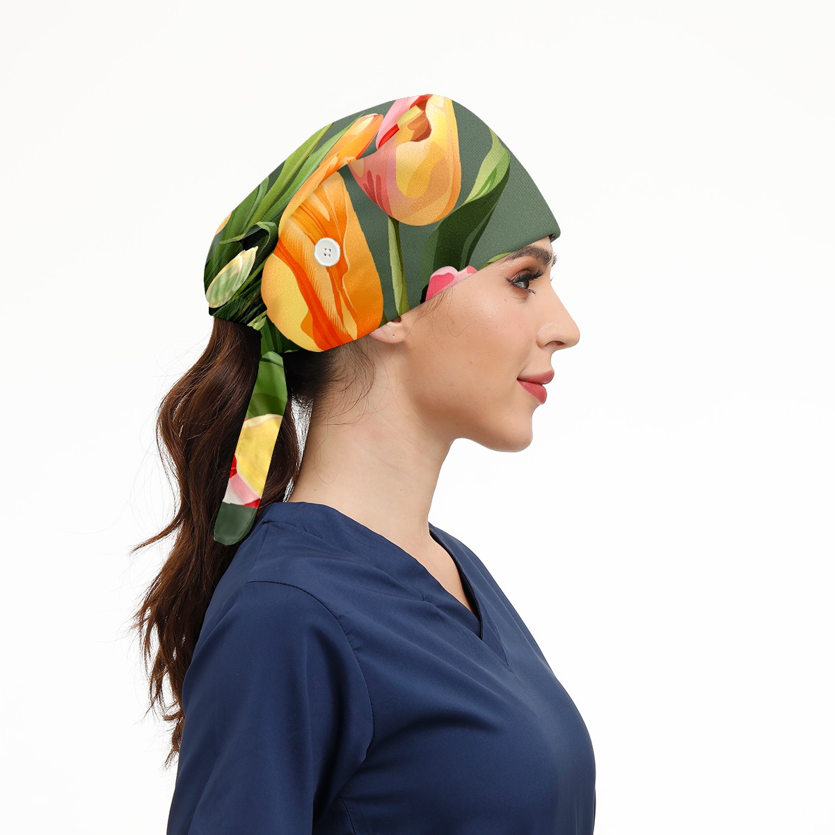 Working Caps with Button&Sweatband Satin Lined Cotton Adjustable Nurse Hats Elastic Band Scrub Cap Surgeon Hat Tulip Petal C