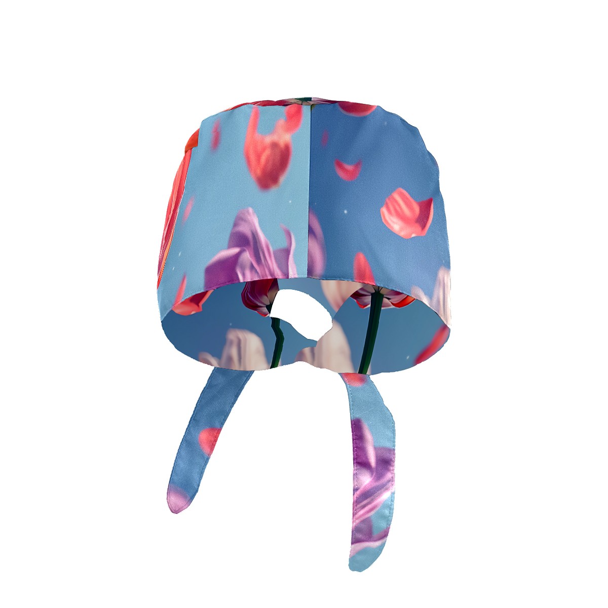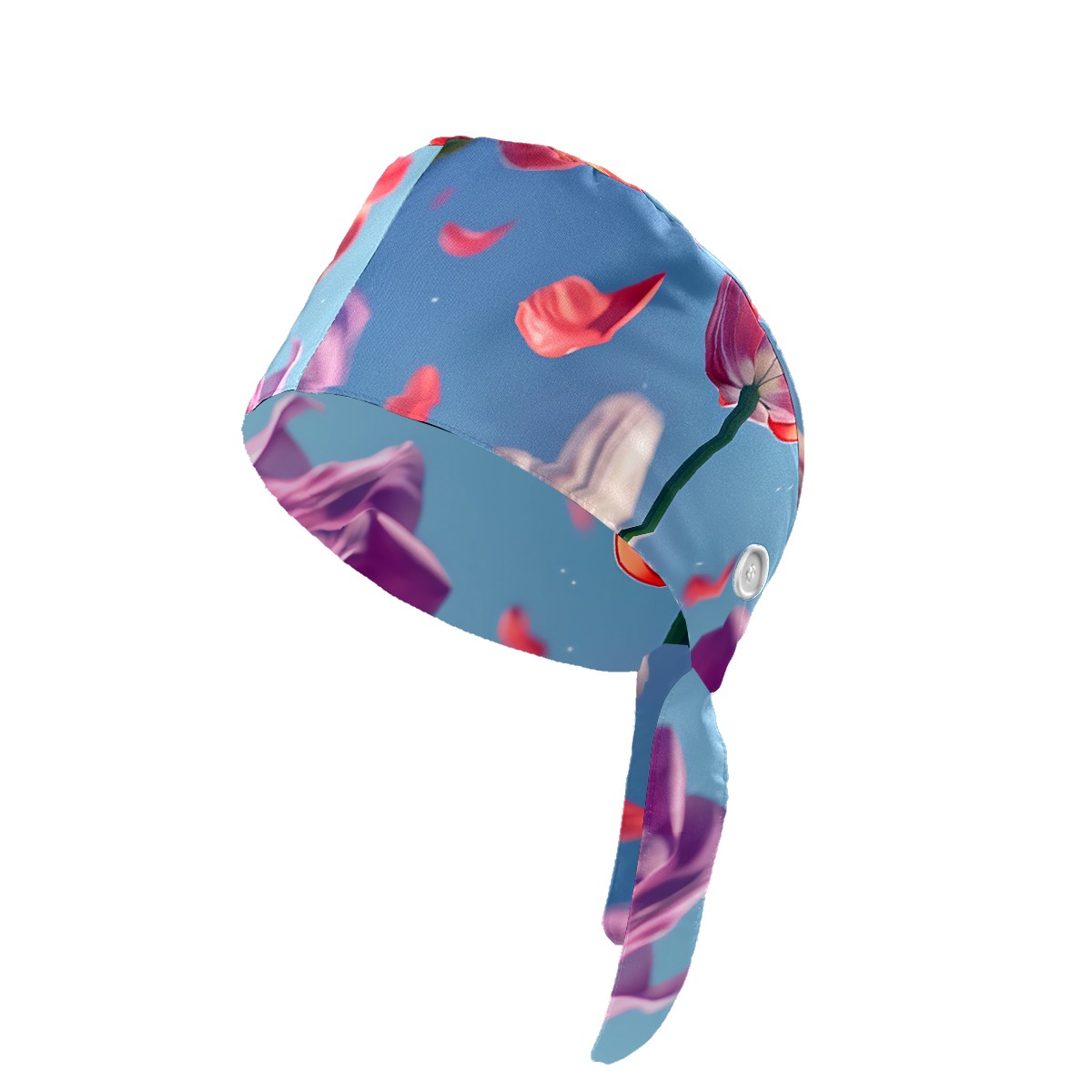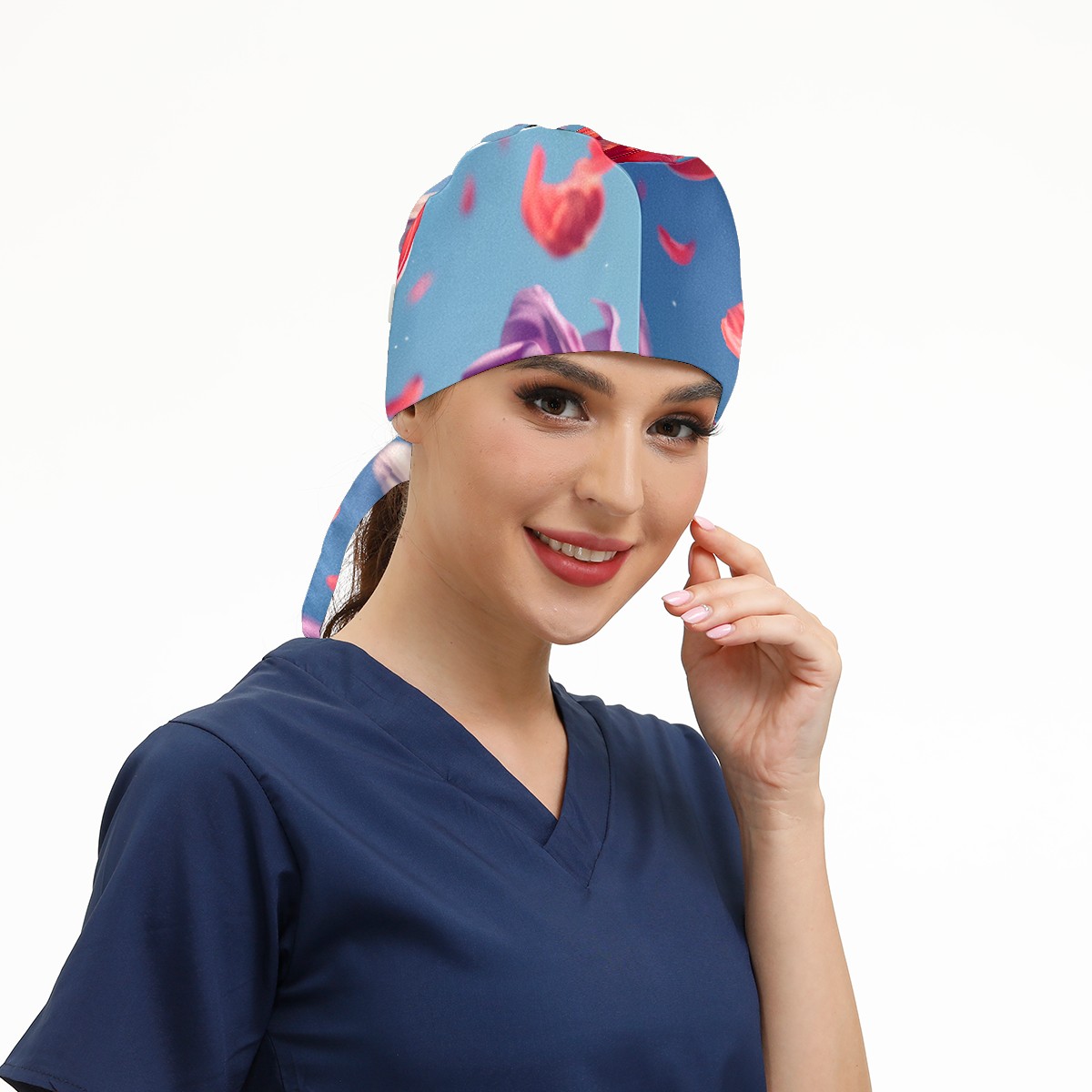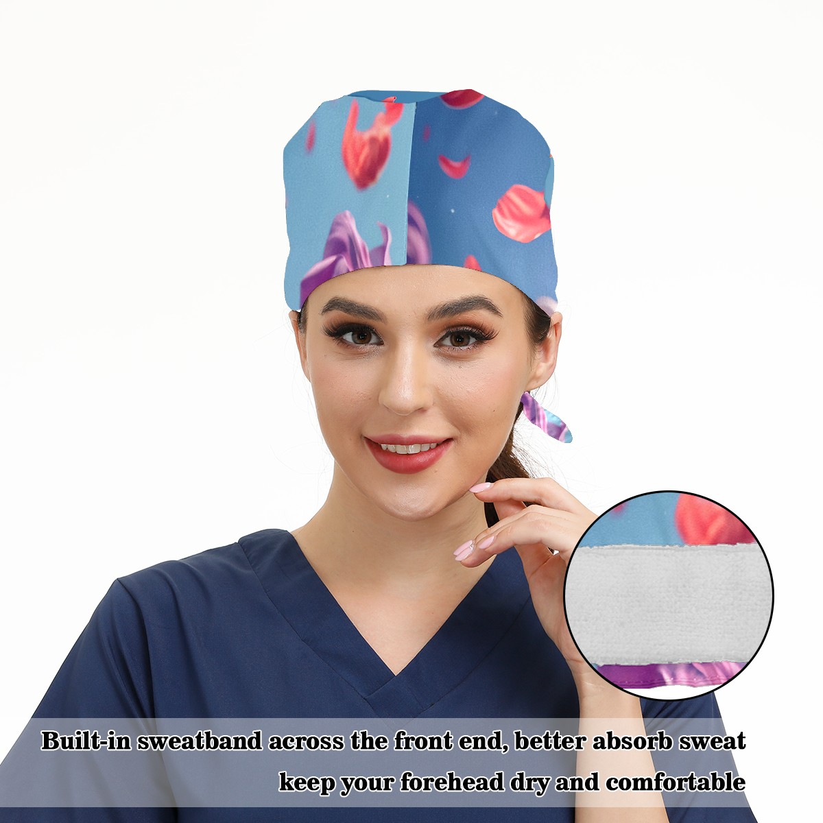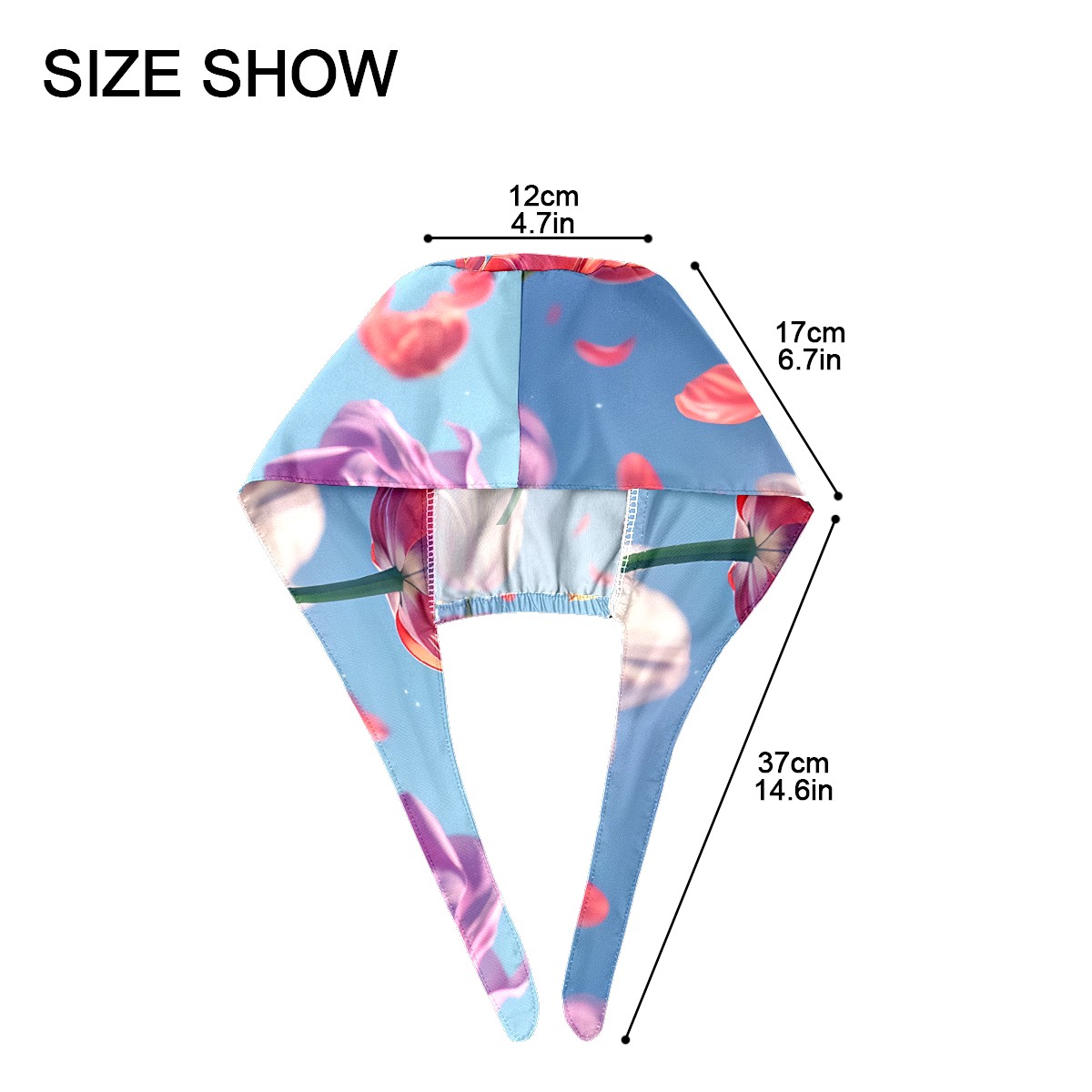 Working Caps with Button&Sweatband Satin Lined Cotton Adjustable Nurse Hats Elastic Band Scrub Cap Surgeon Hat Tulips F