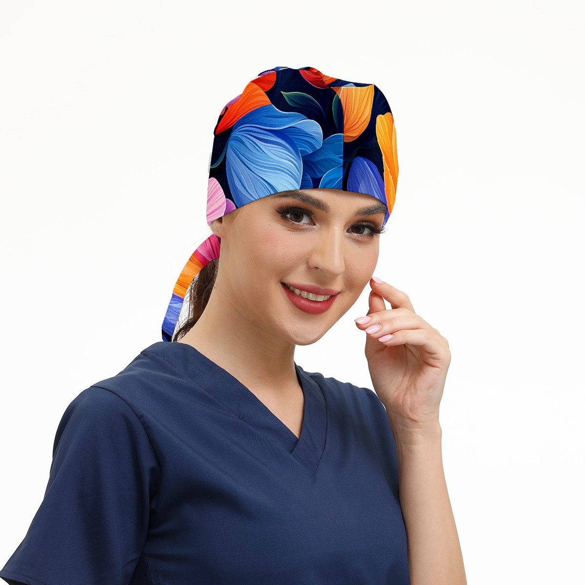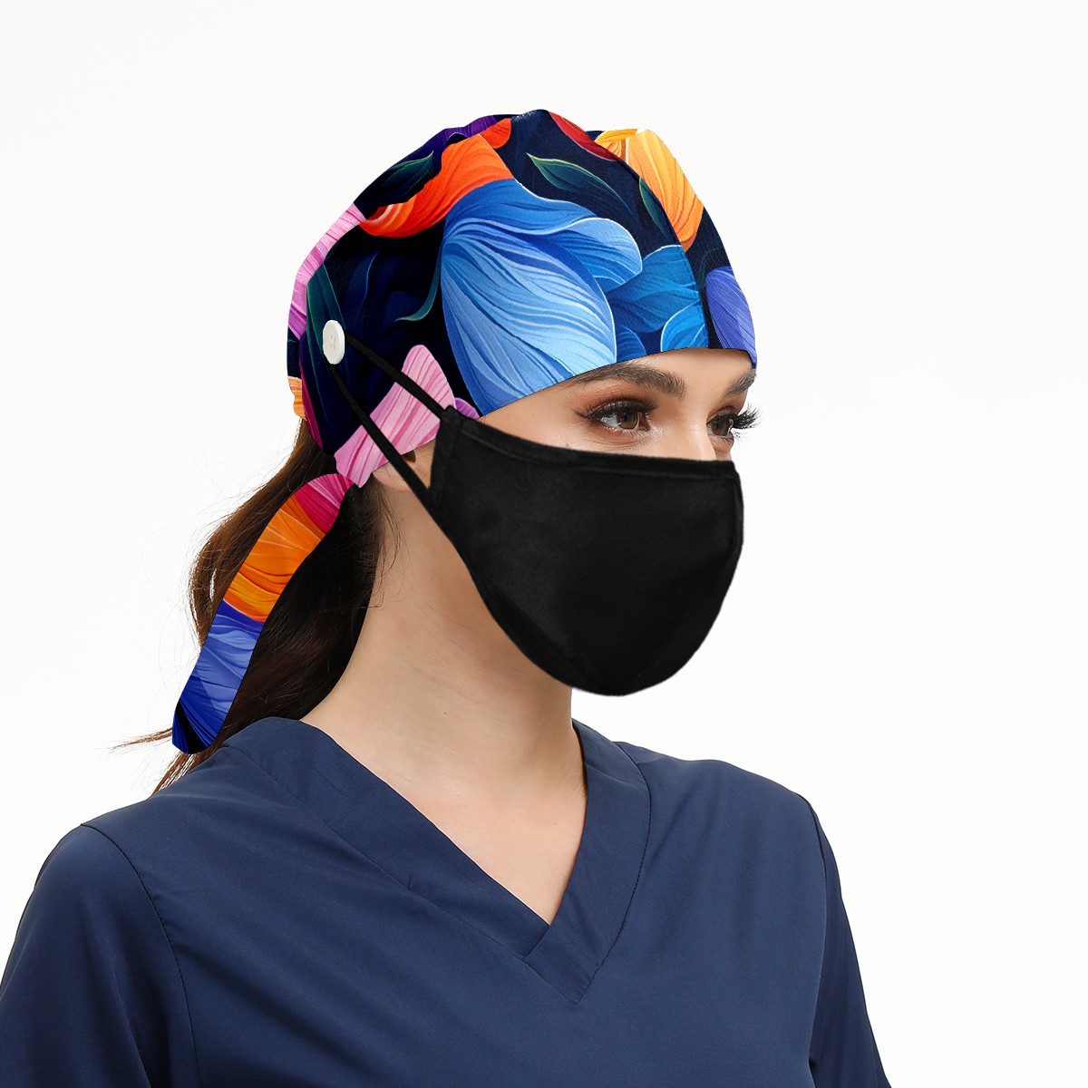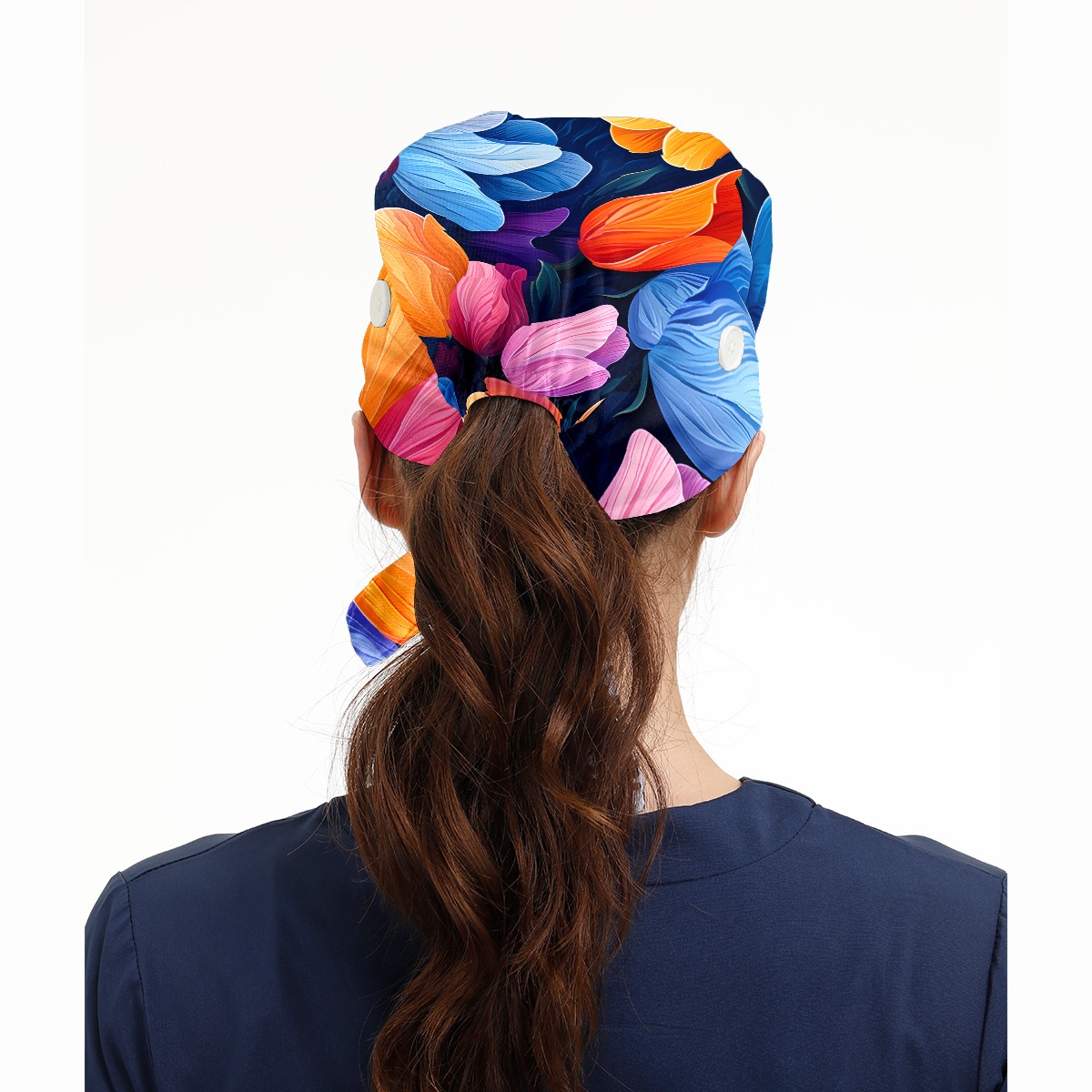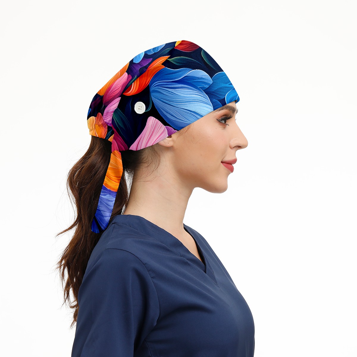 Working Caps with Button&Sweatband Satin Lined Cotton Adjustable Nurse Hats Elastic Band Scrub Cap Surgeon Hat Tulip Flowers F