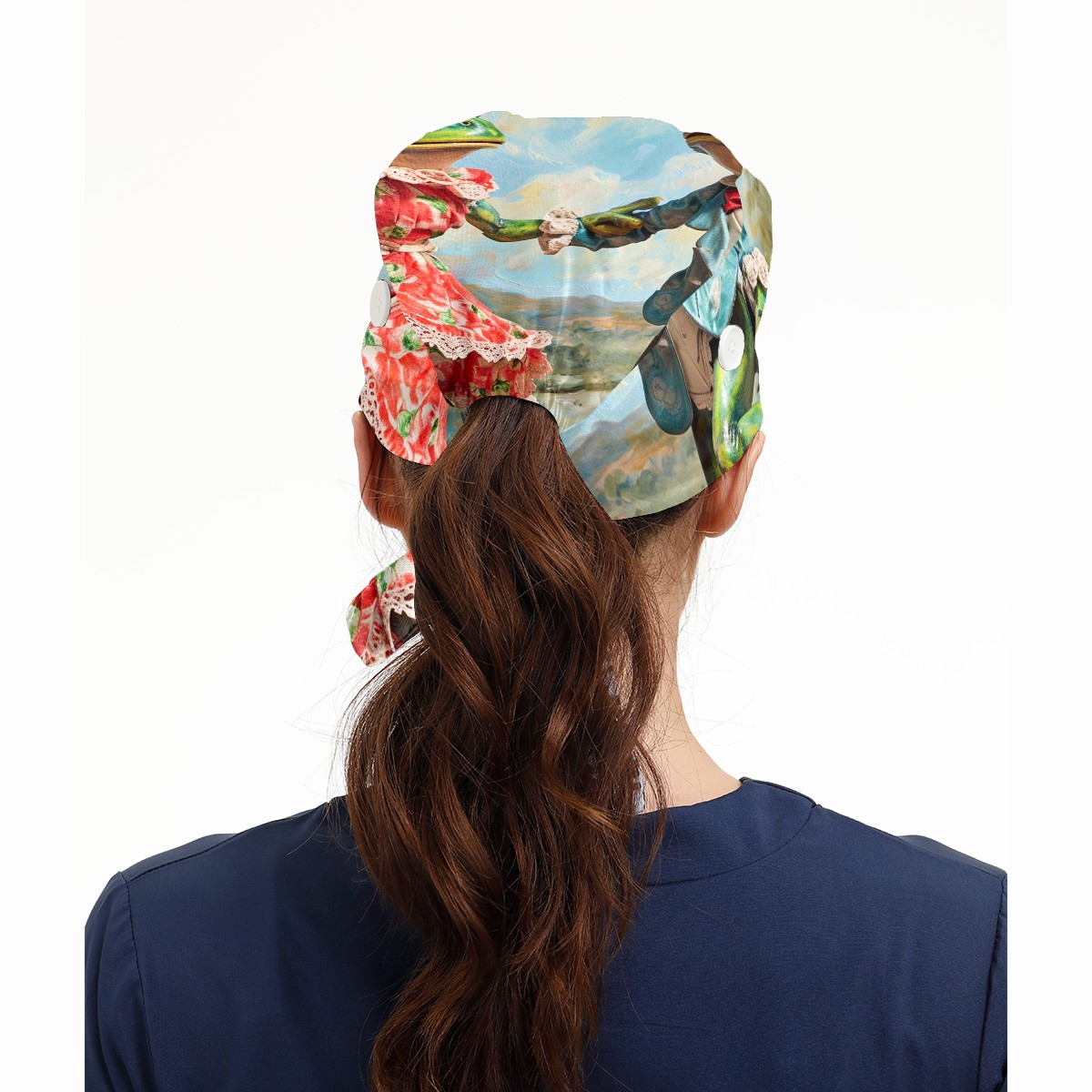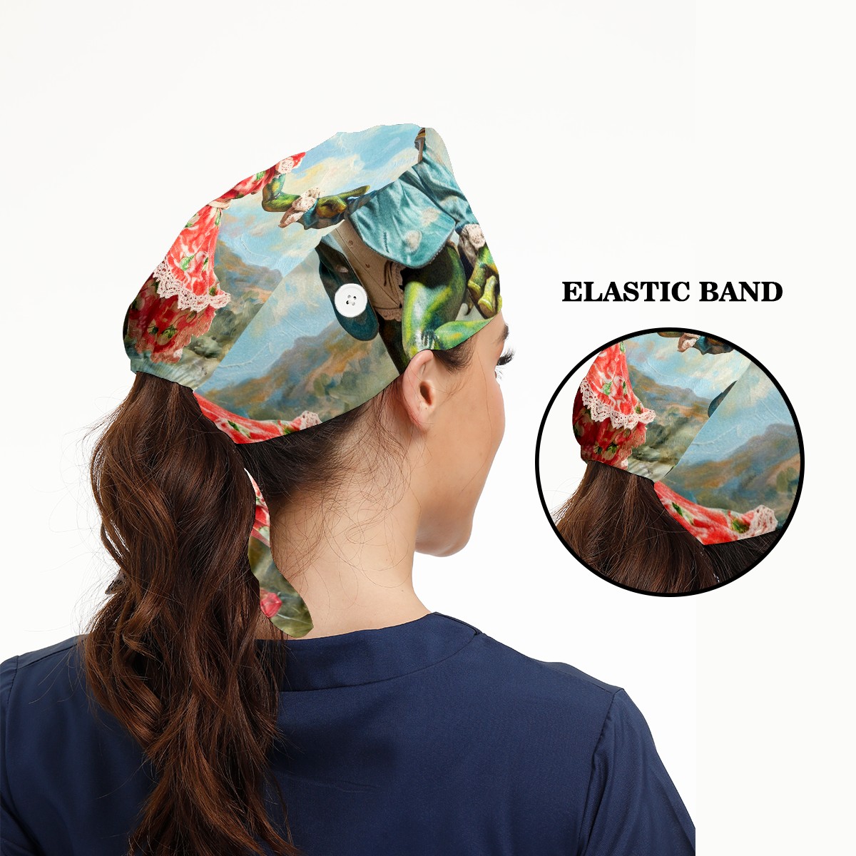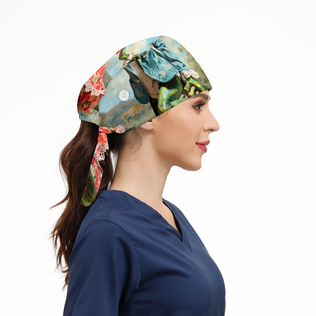 Working Caps with Button&Sweatband Satin Lined Cotton Adjustable Nurse Hats Elastic Band Scrub Cap Surgeon Hat Frog