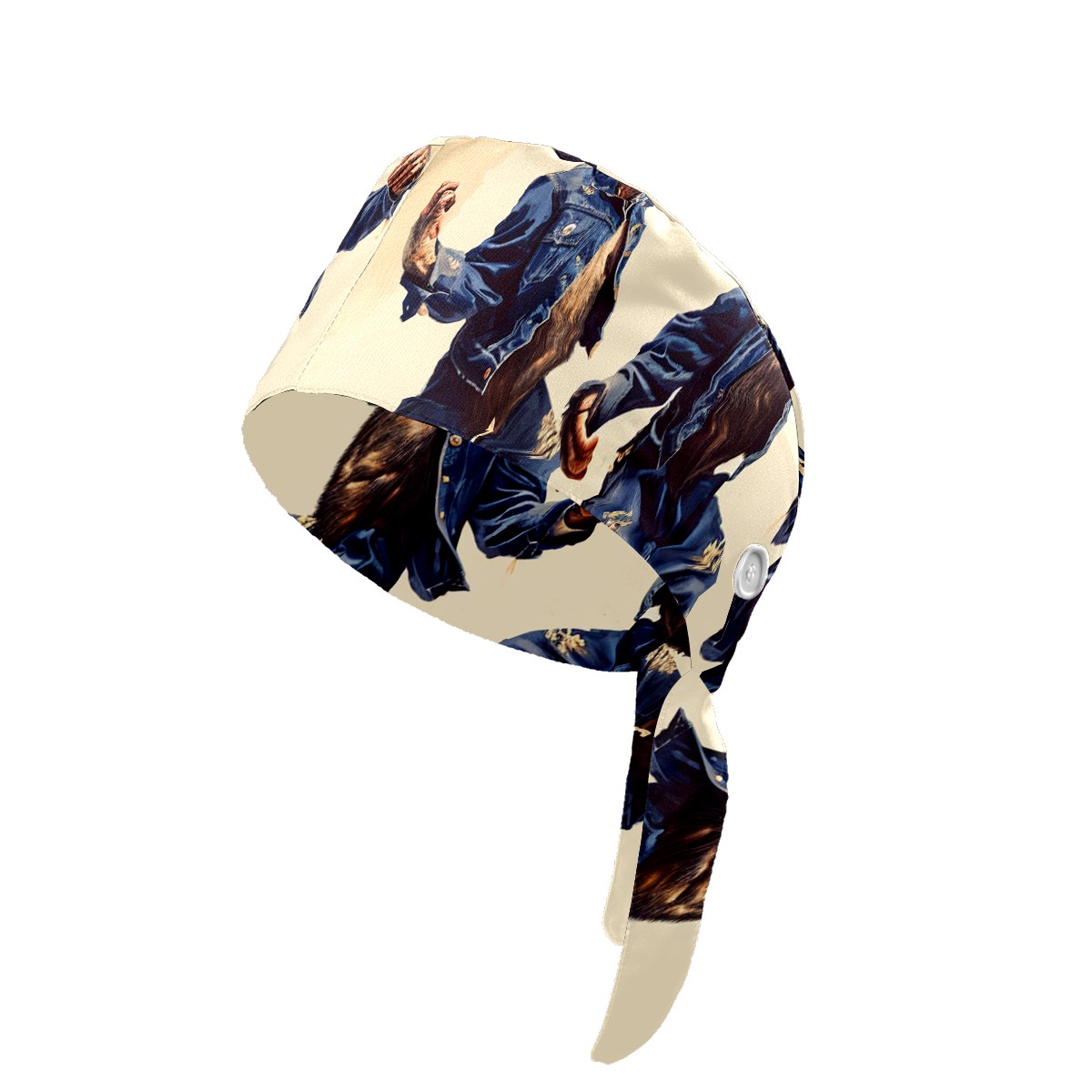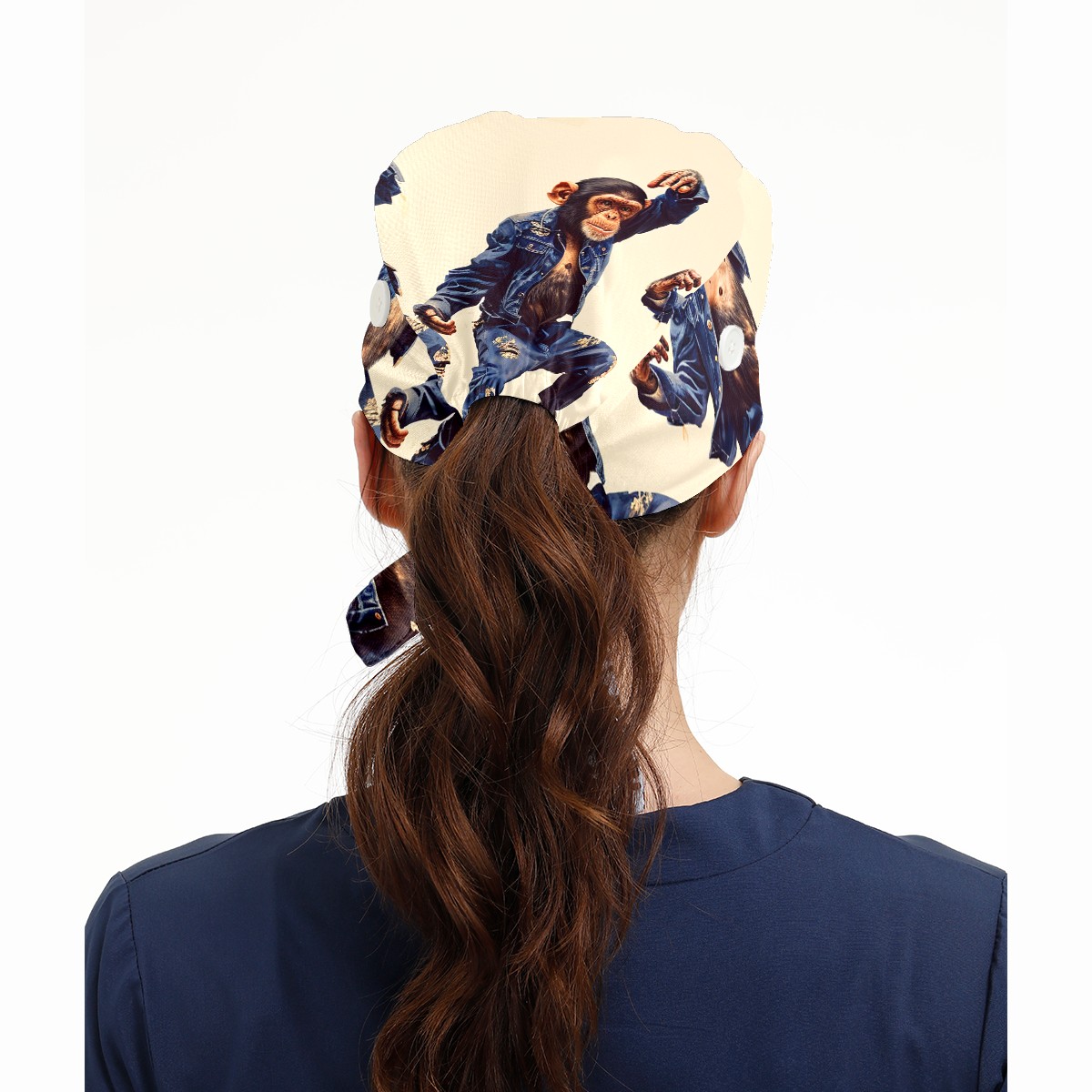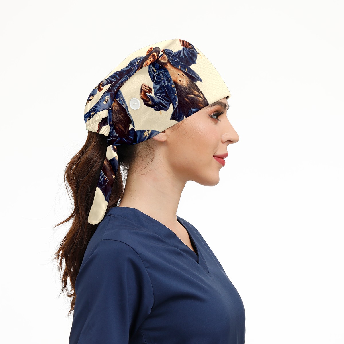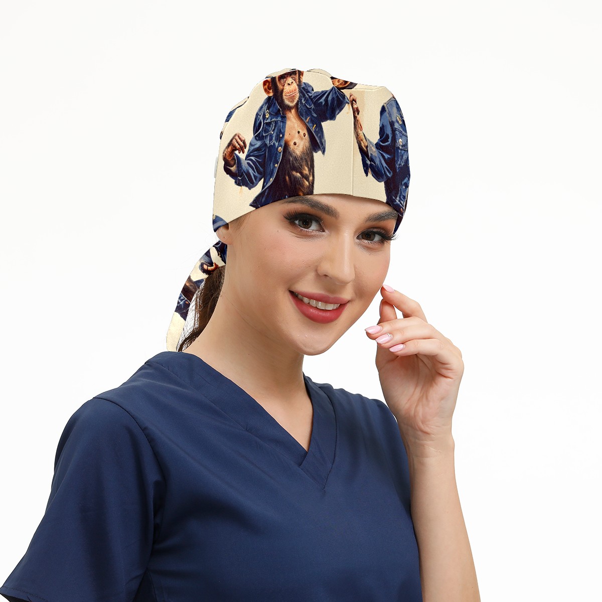 Working Caps with Button&Sweatband Satin Lined Cotton Adjustable Nurse Hats Elastic Band Scrub Cap Surgeon Hat Monkey