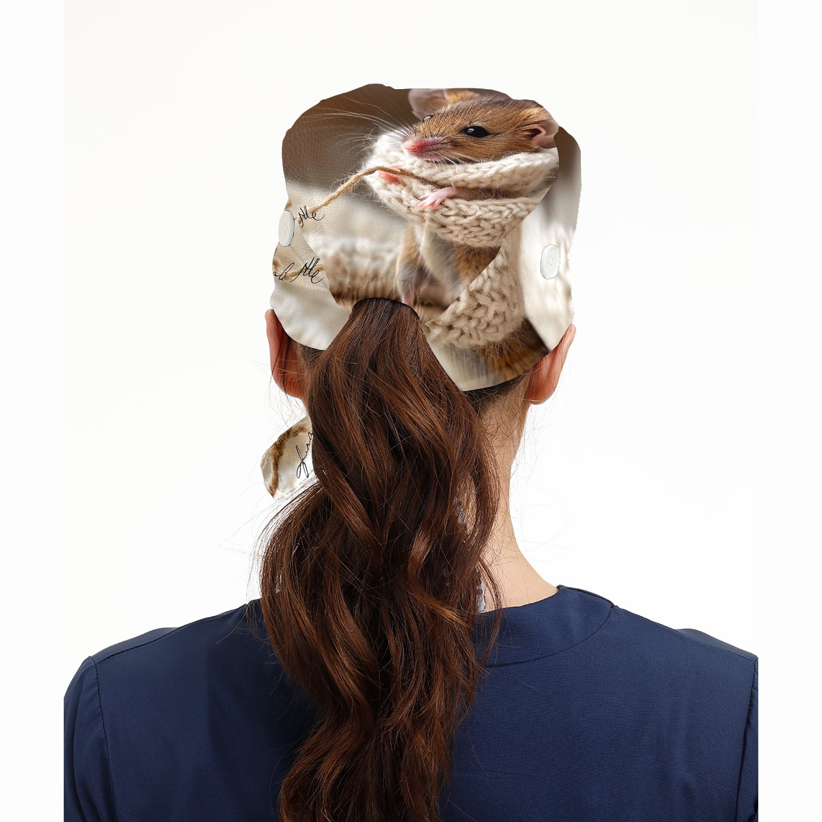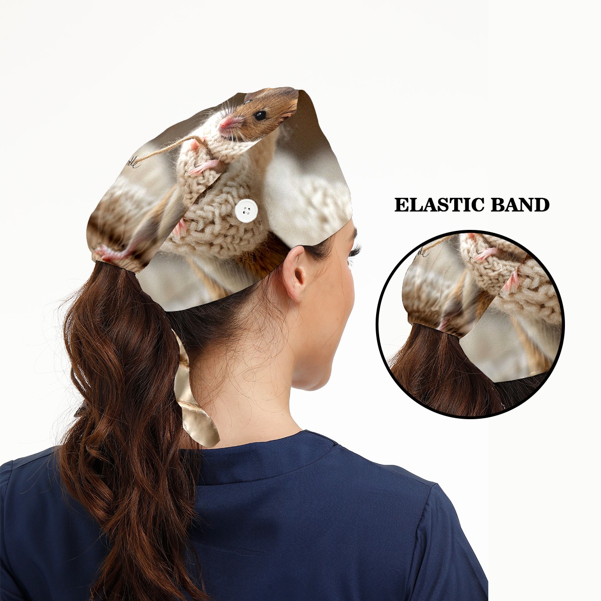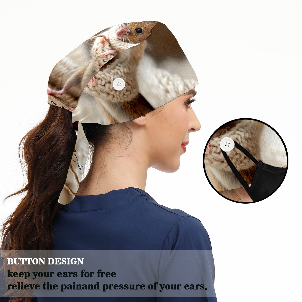 Working Caps with Button&Sweatband Satin Lined Cotton Adjustable Nurse Hats Elastic Band Scrub Cap Surgeon Hat Mouse