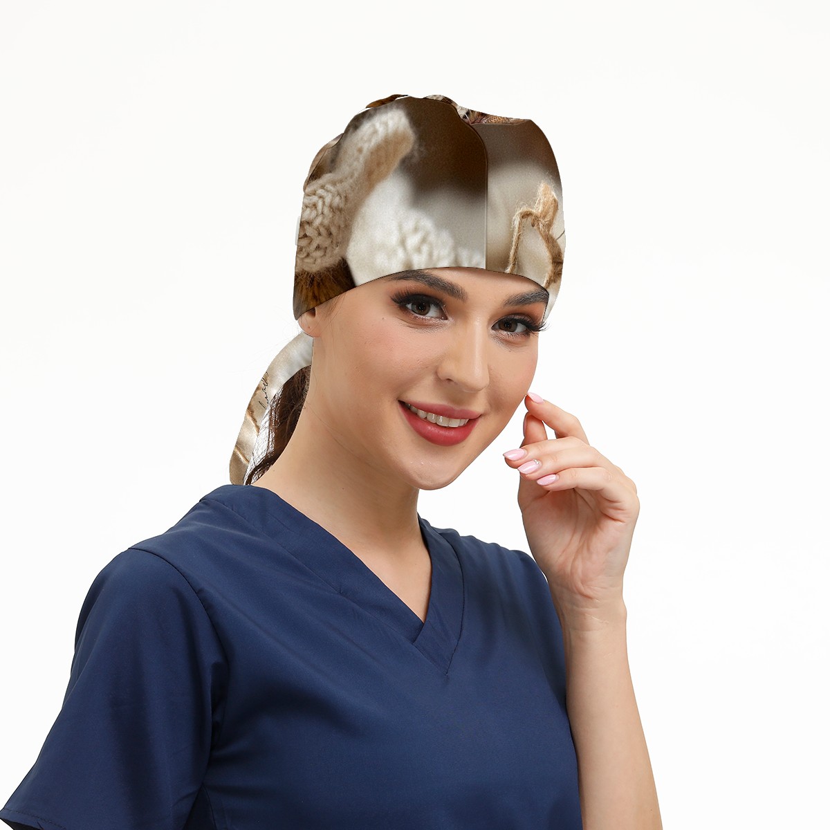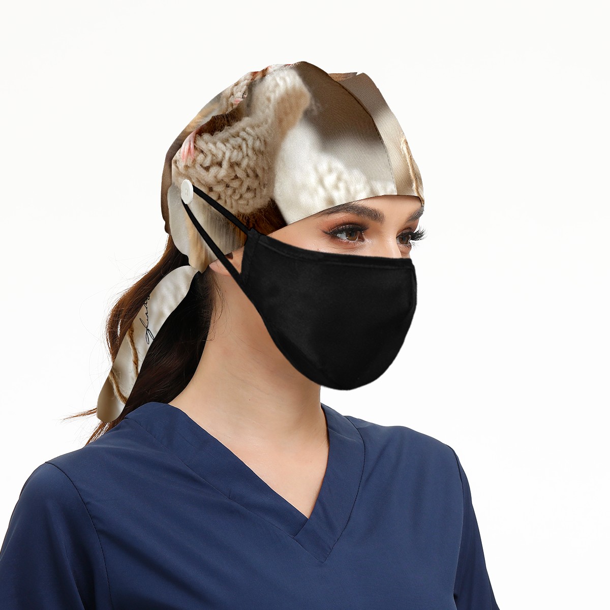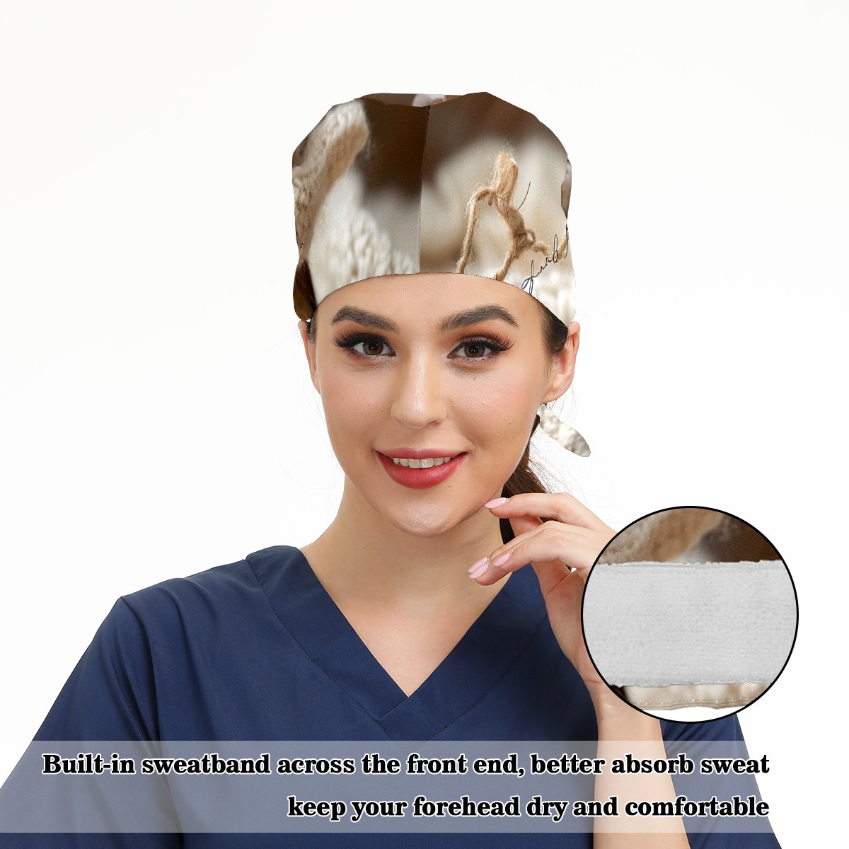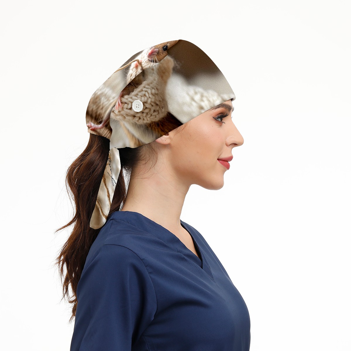 Working Caps with Button&Sweatband Satin Lined Cotton Adjustable Nurse Hats Elastic Band Scrub Cap Surgeon Hat Mouse