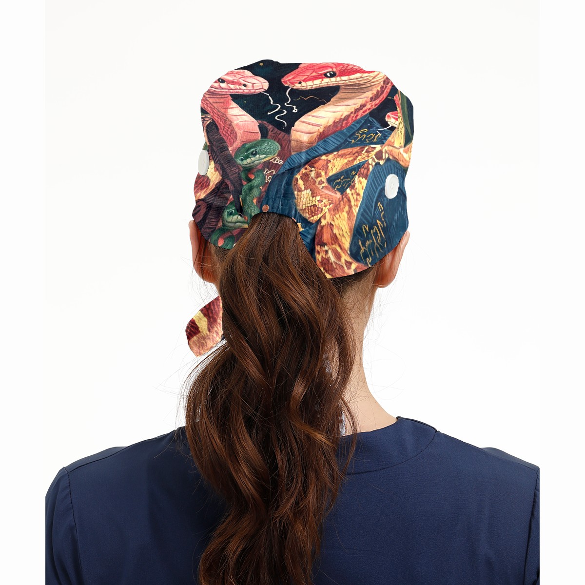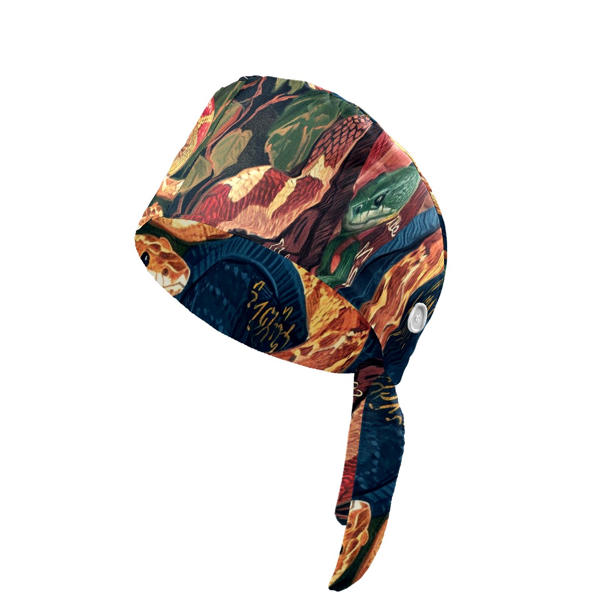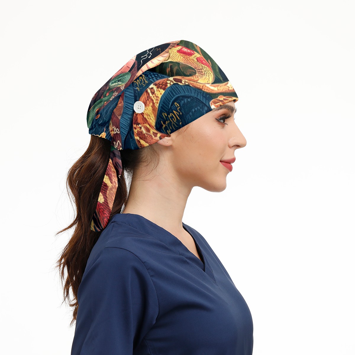 Working Caps with Button&Sweatband Satin Lined Cotton Adjustable Nurse Hats Elastic Band Scrub Cap Surgeon Hat Snake