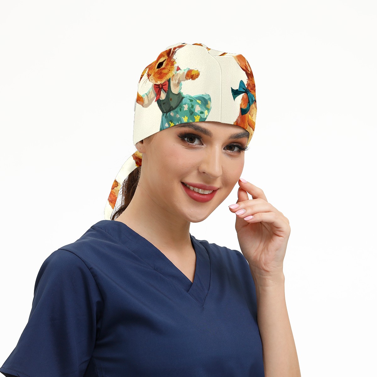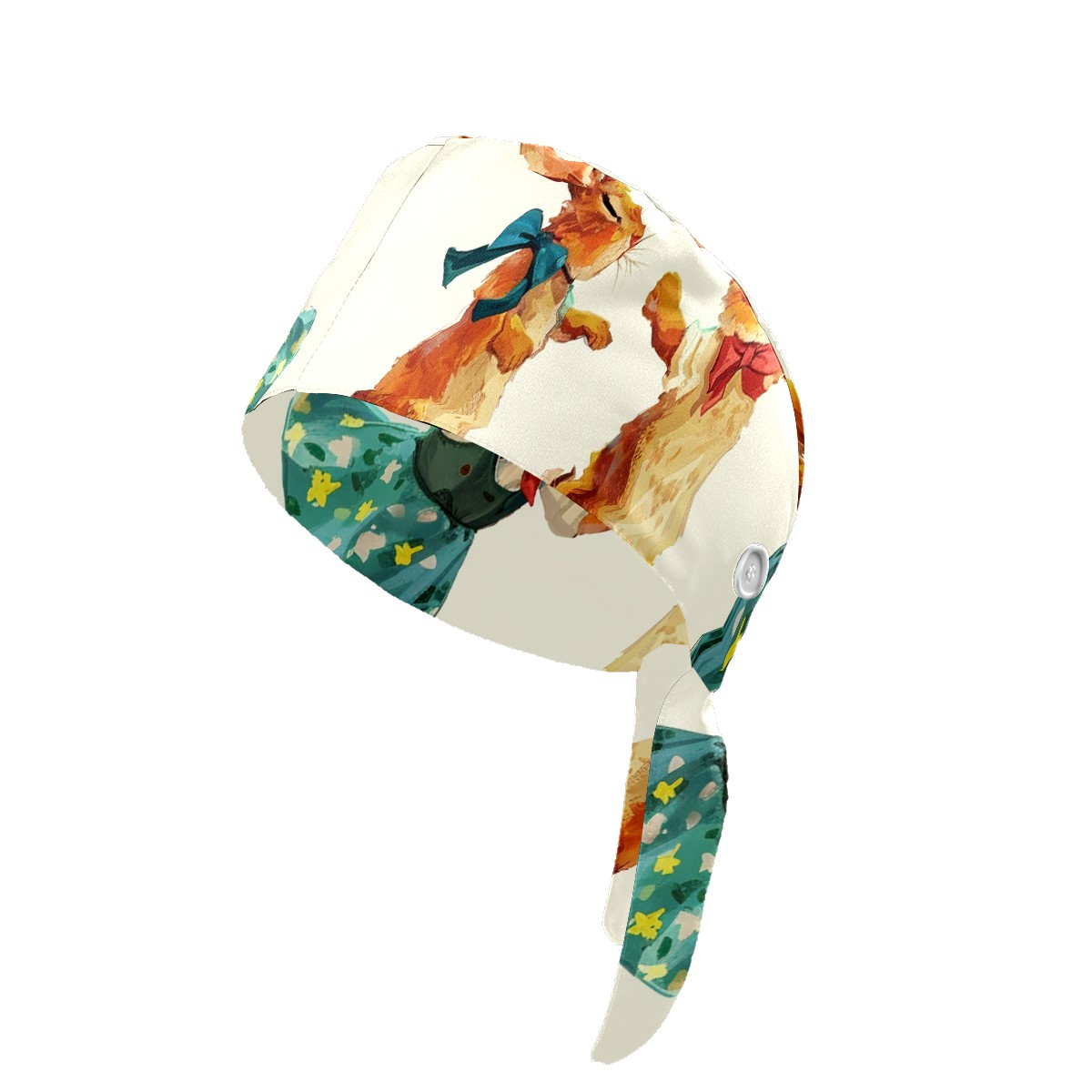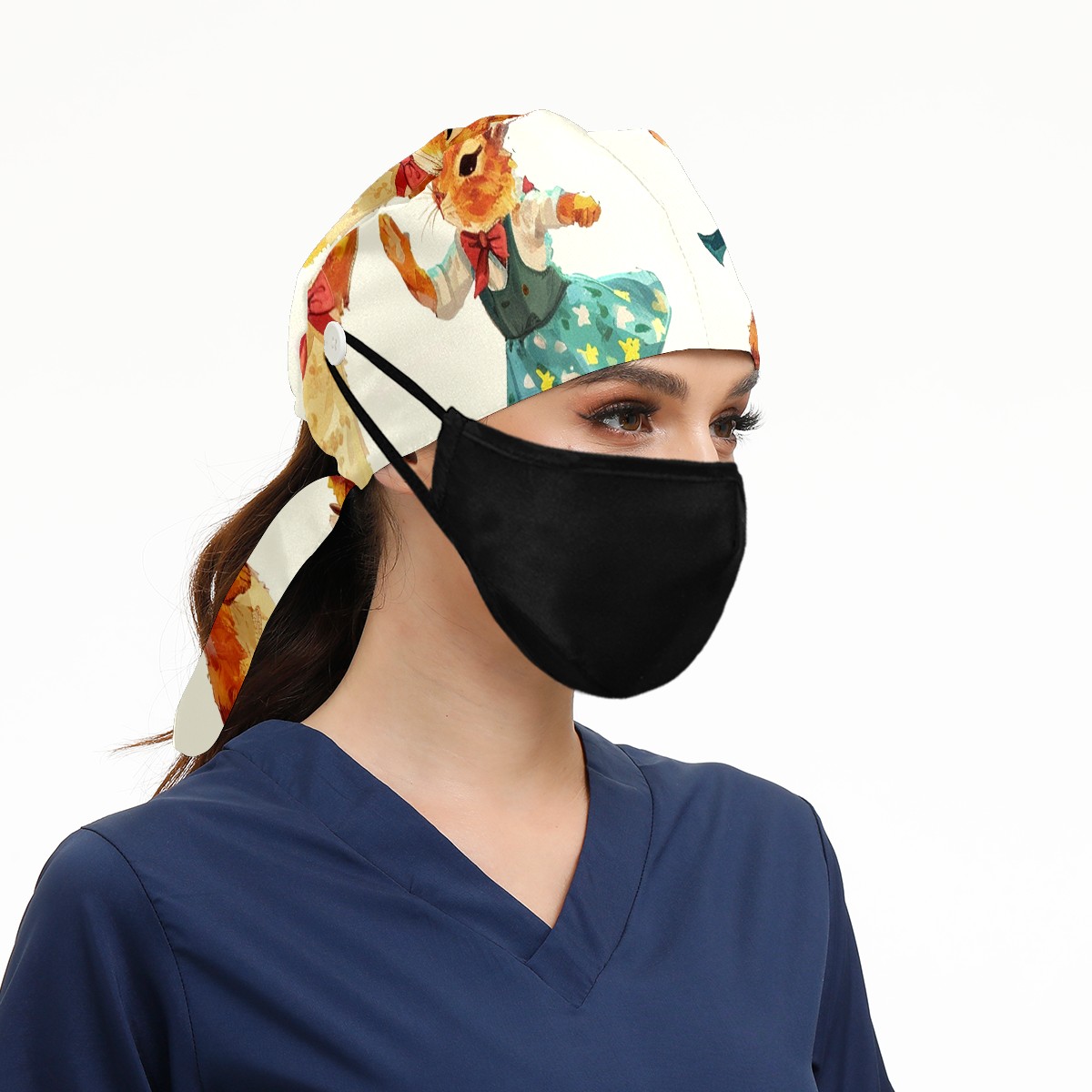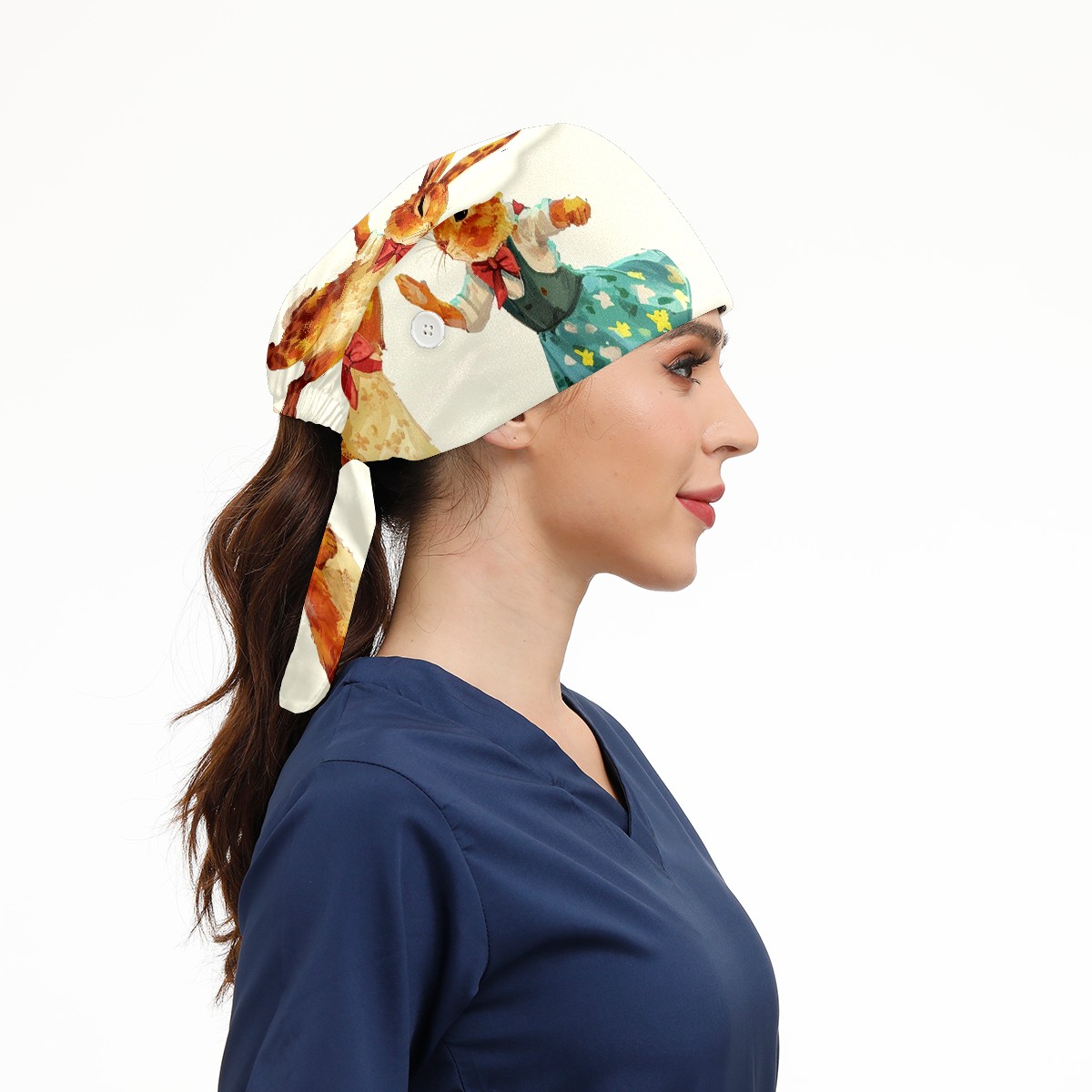 Working Caps with Button&Sweatband Satin Lined Cotton Adjustable Nurse Hats Elastic Band Scrub Cap Surgeon Hat Rabbit