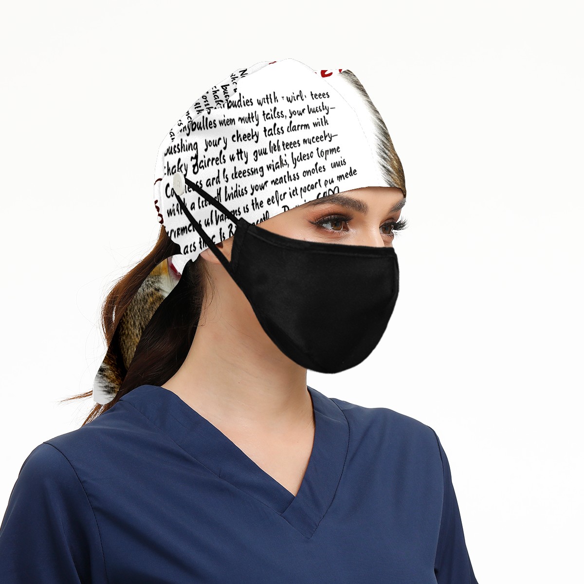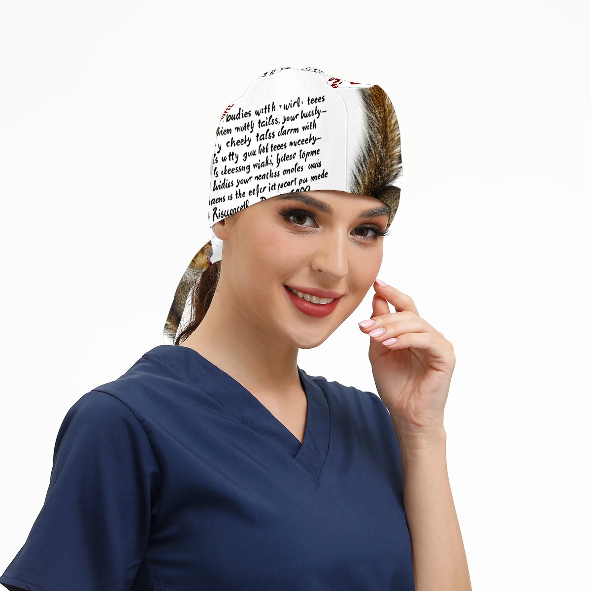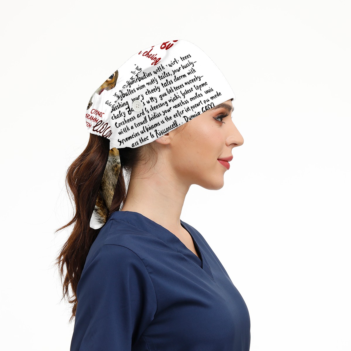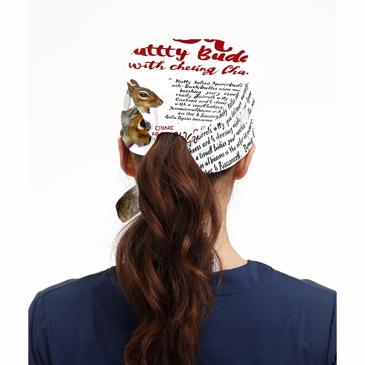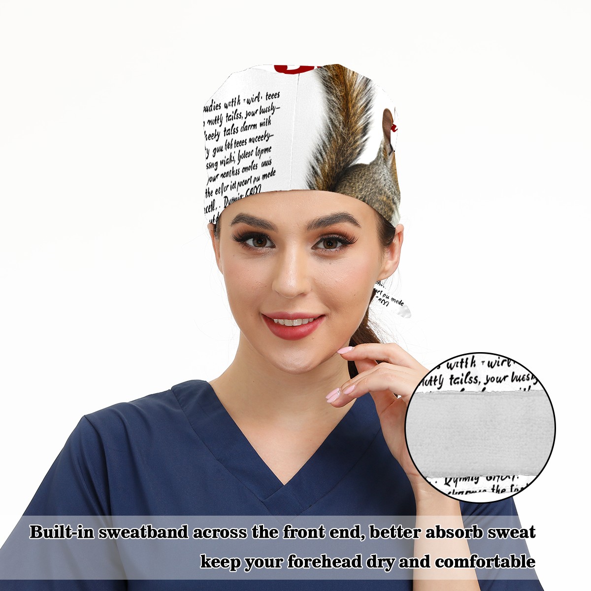 Working Caps with Button&Sweatband Satin Lined Cotton Adjustable Nurse Hats Elastic Band Scrub Cap Surgeon Hat Squirrel
