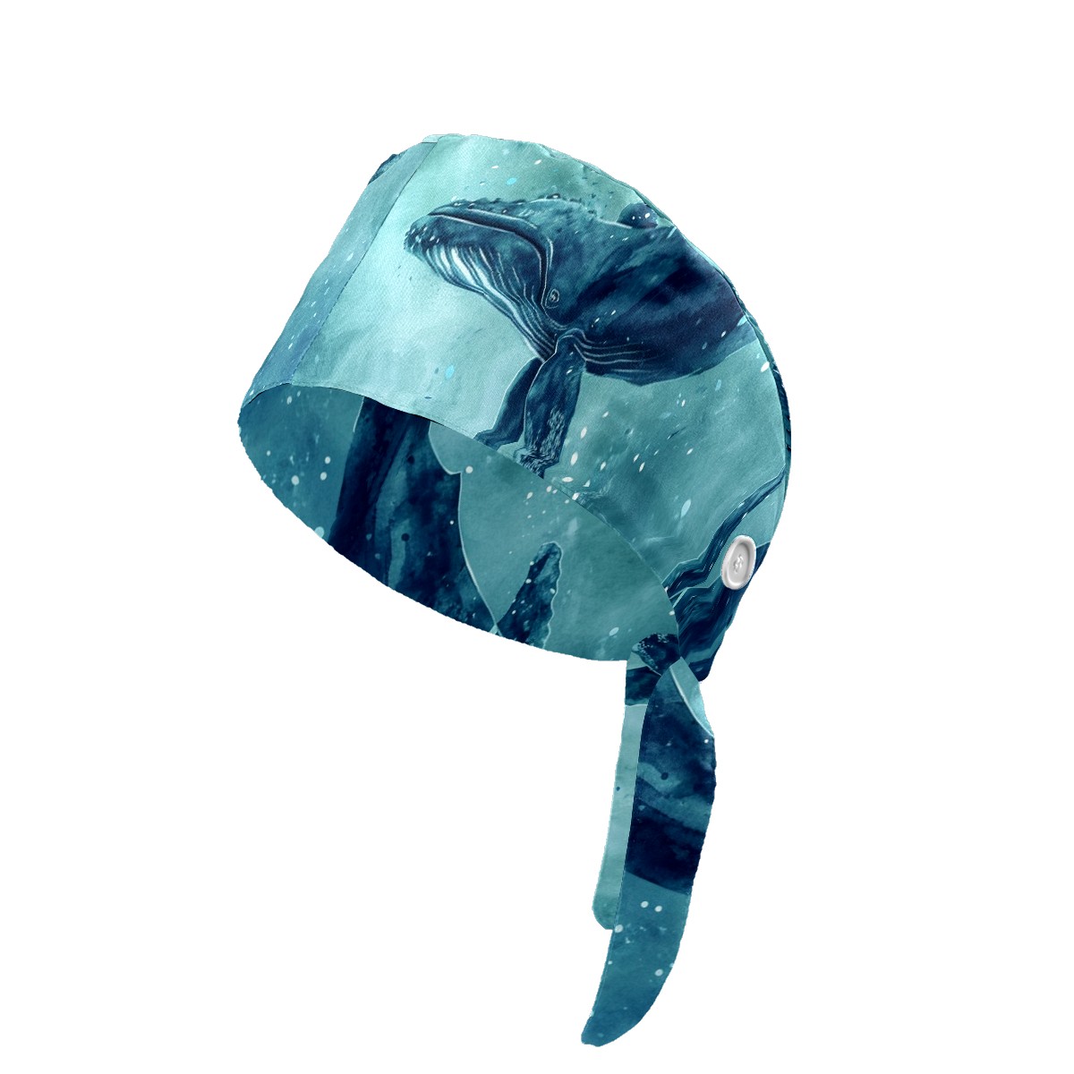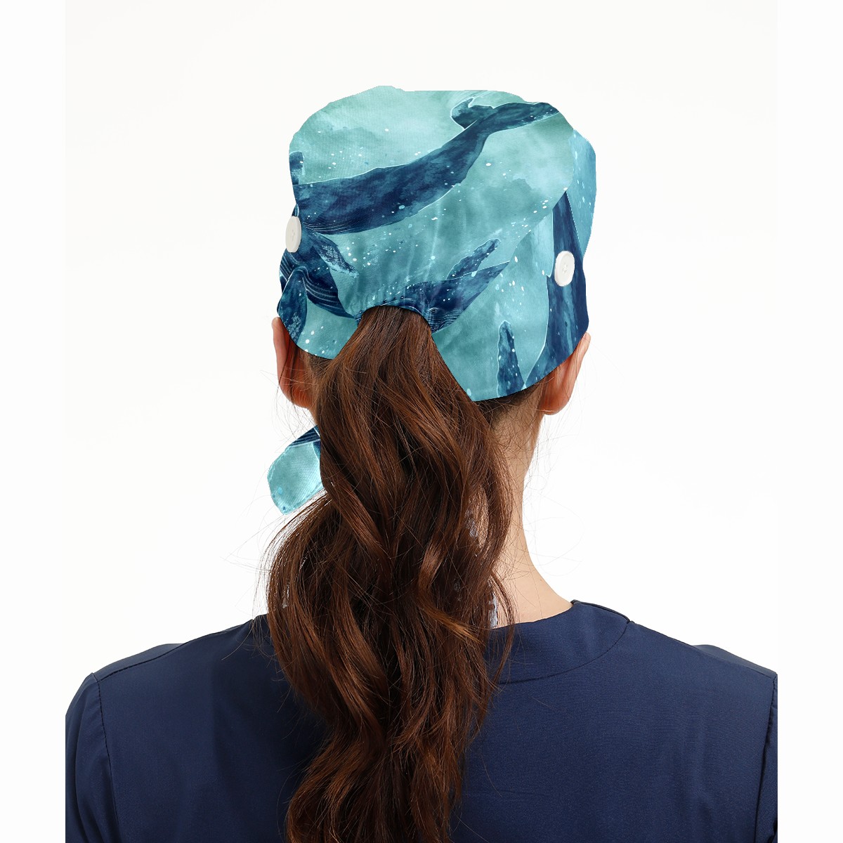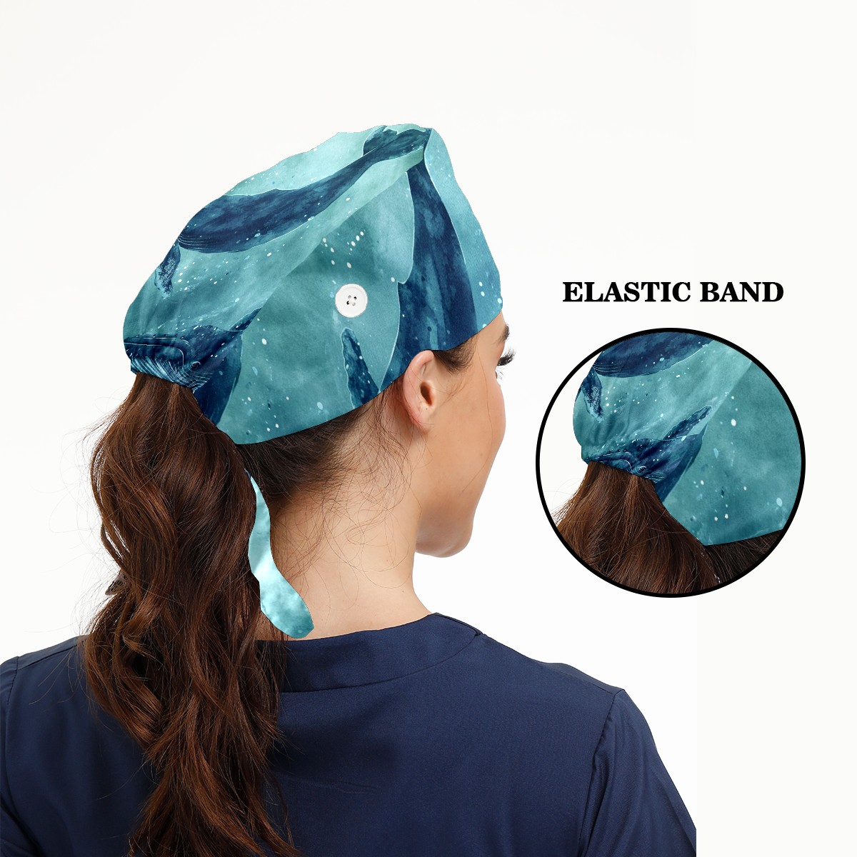 Working Caps with Button&Sweatband Satin Lined Cotton Adjustable Nurse Hats Elastic Band Scrub Cap Surgeon Hat Fish