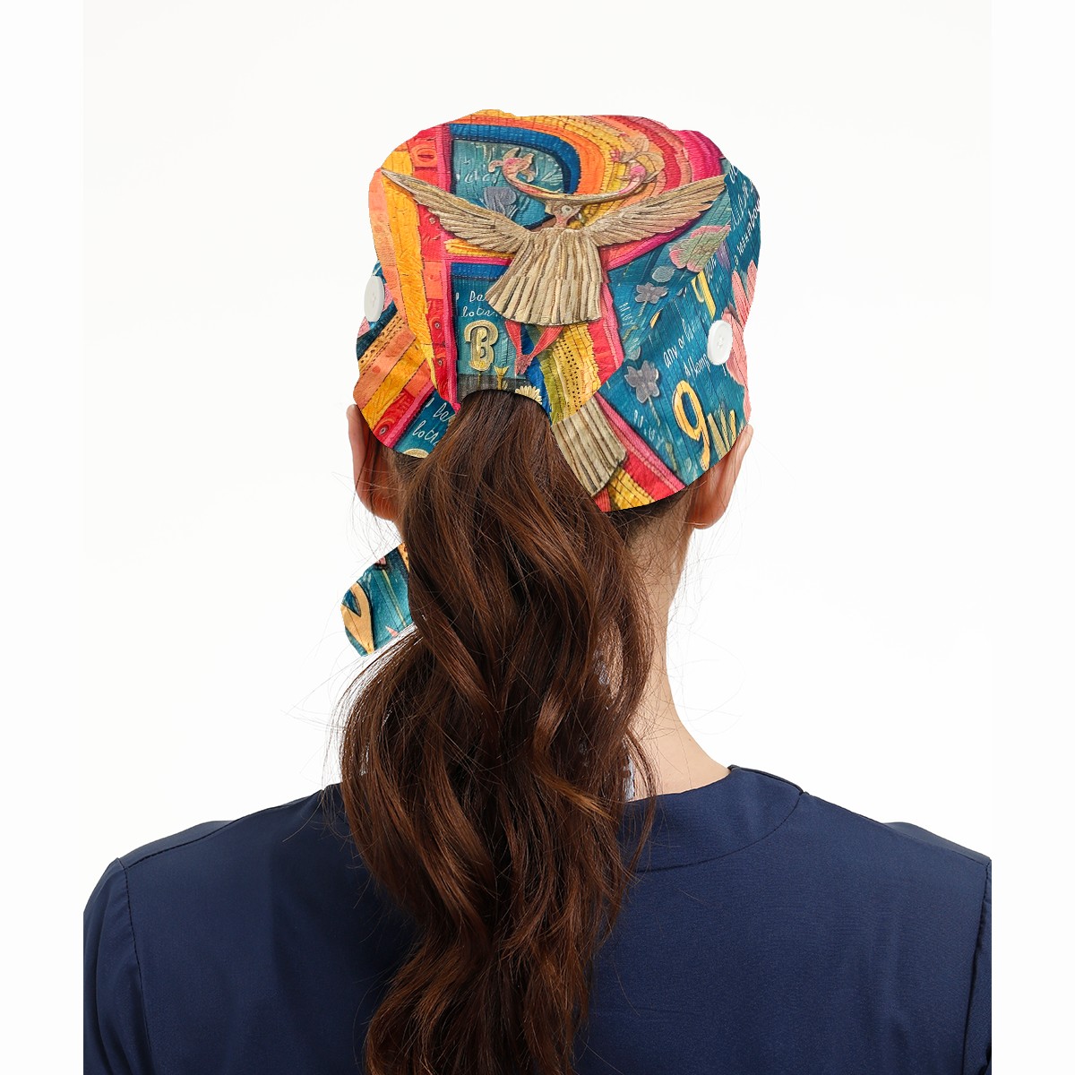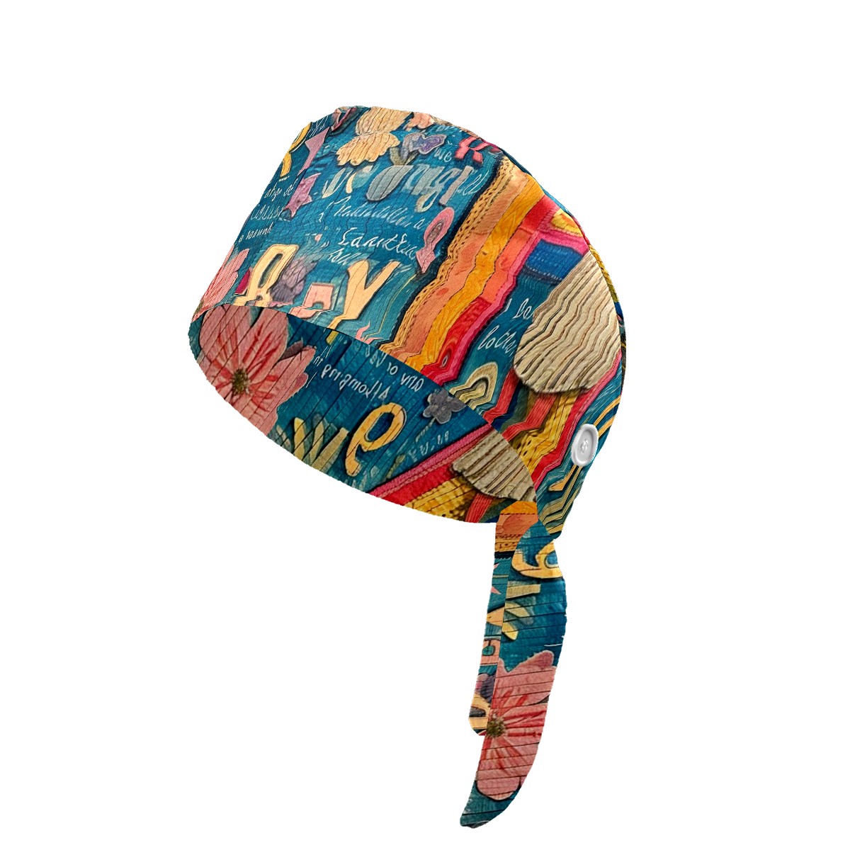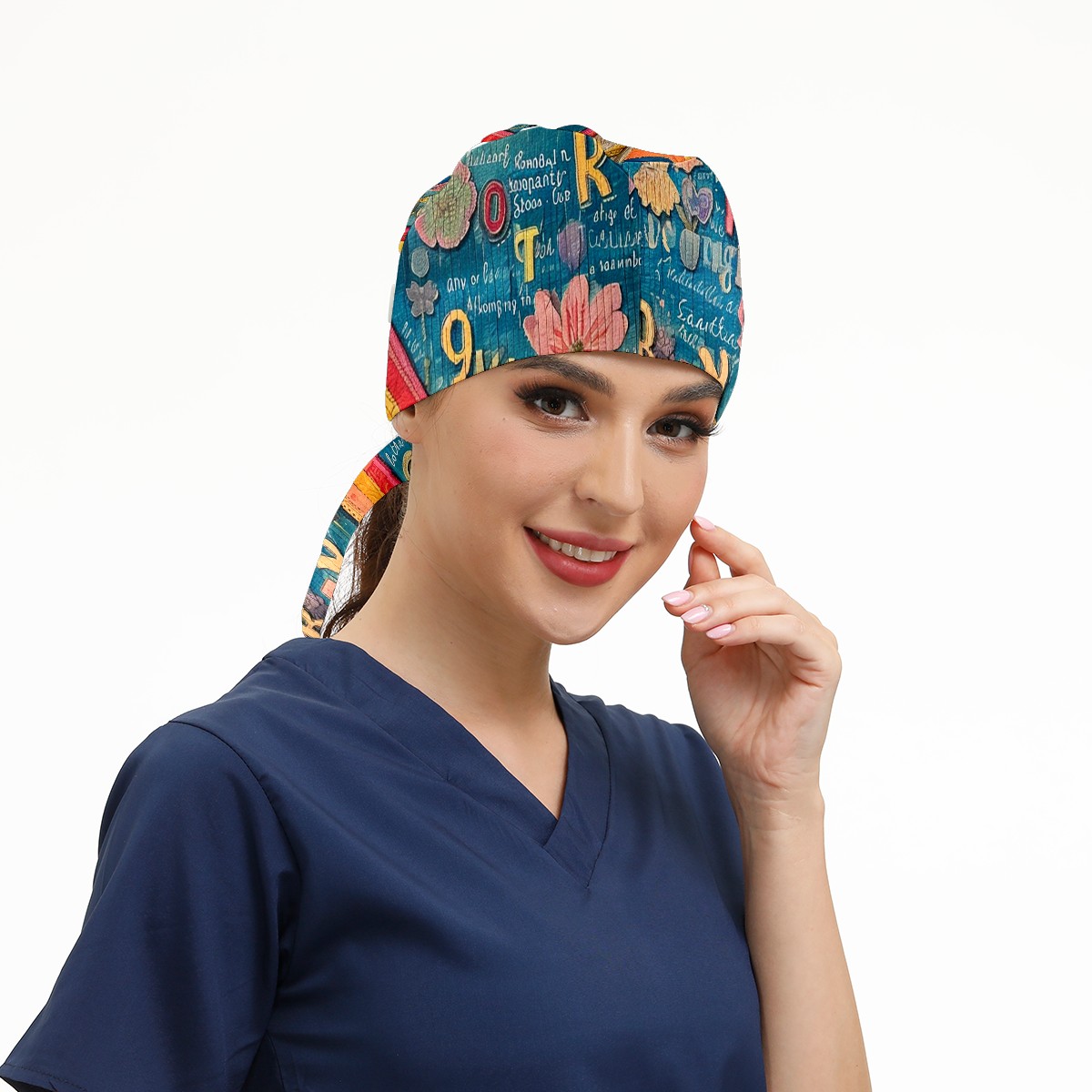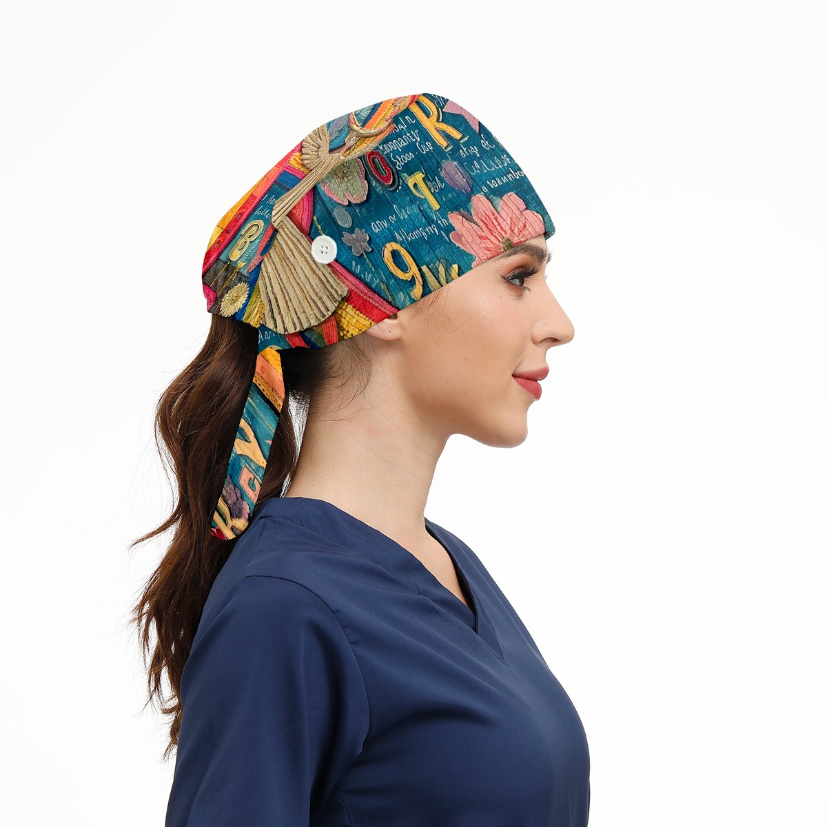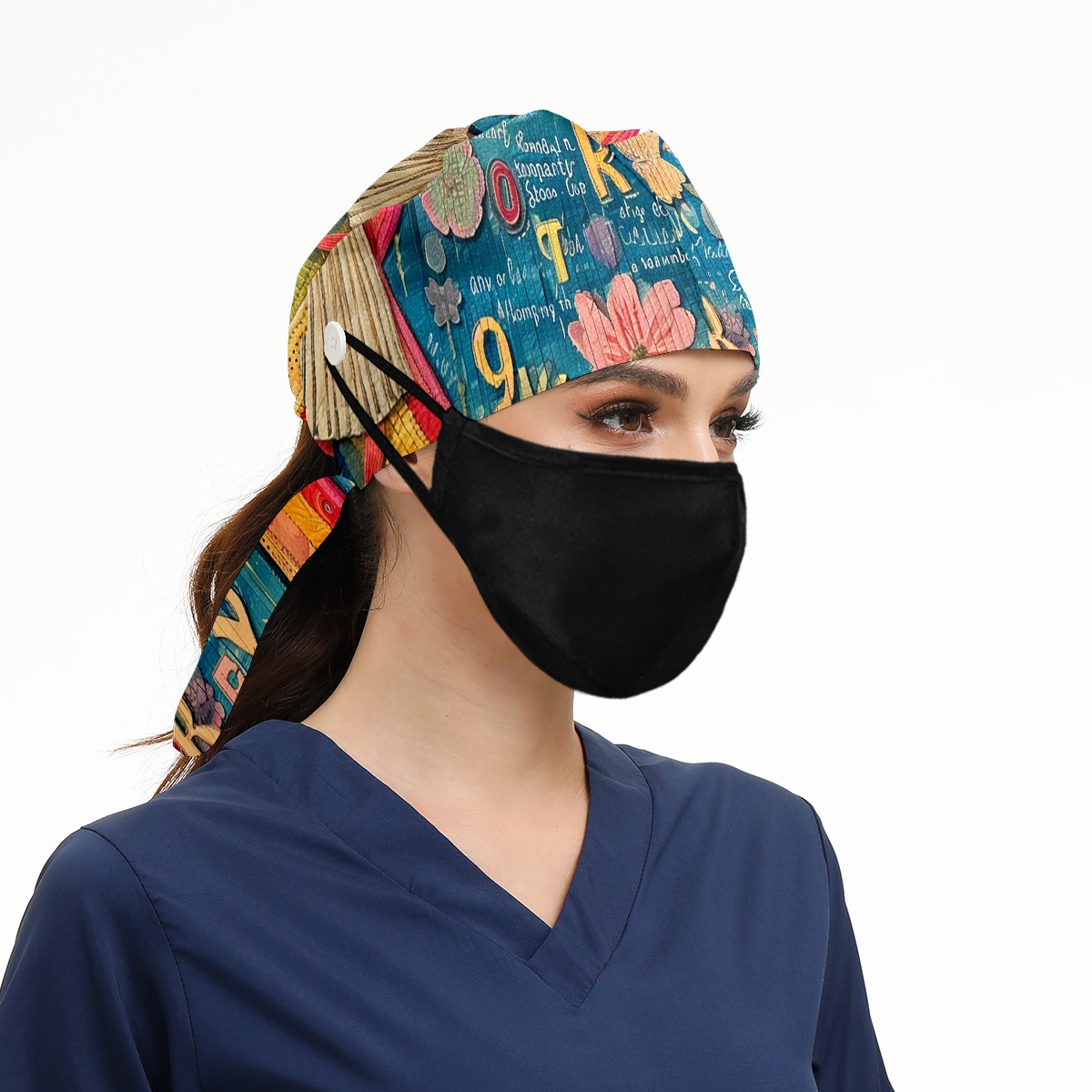 Working Caps with Button&Sweatband Satin Lined Cotton Adjustable Nurse Hats Elastic Band Scrub Cap Surgeon Hat Letter