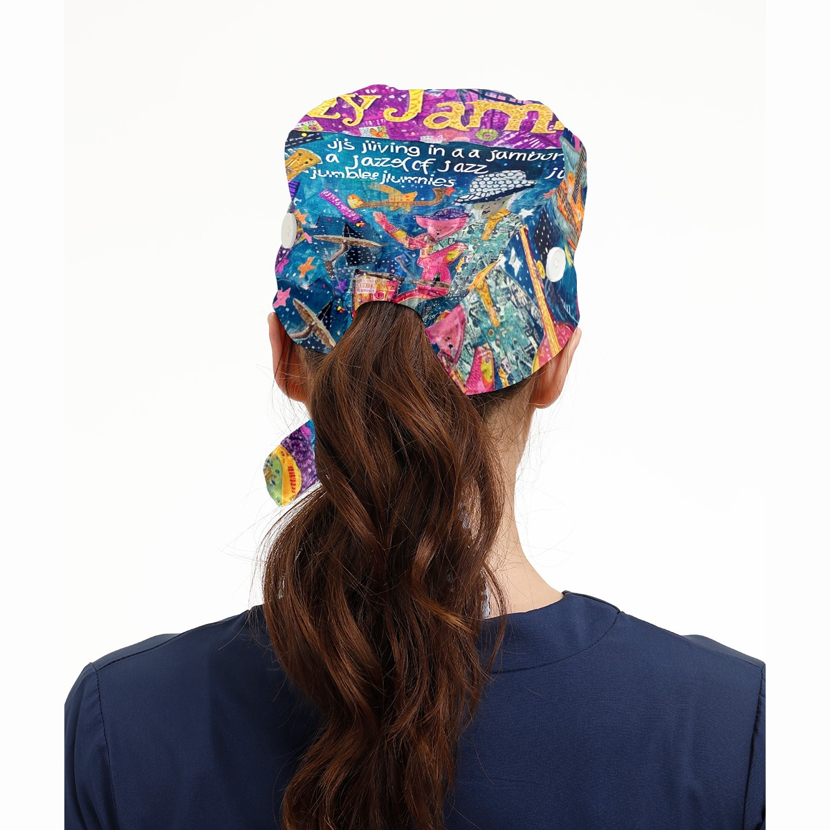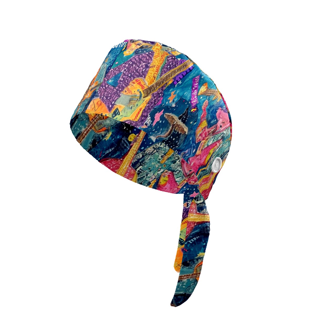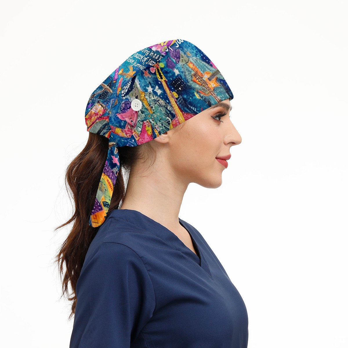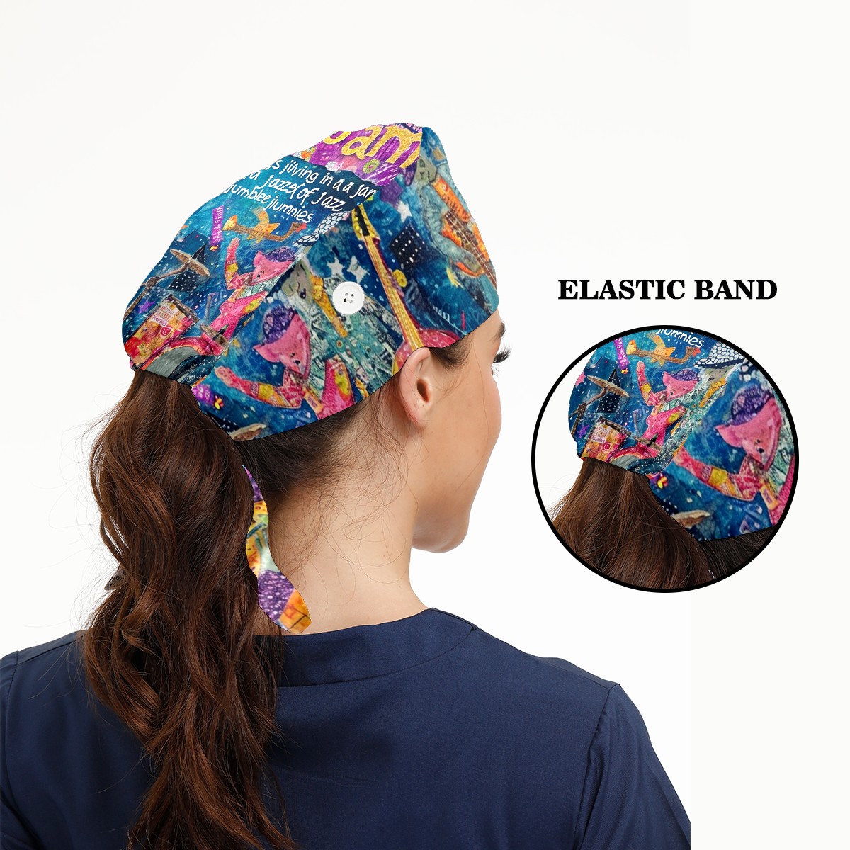 Working Caps with Button&Sweatband Satin Lined Cotton Adjustable Nurse Hats Elastic Band Scrub Cap Surgeon Hat Guitar