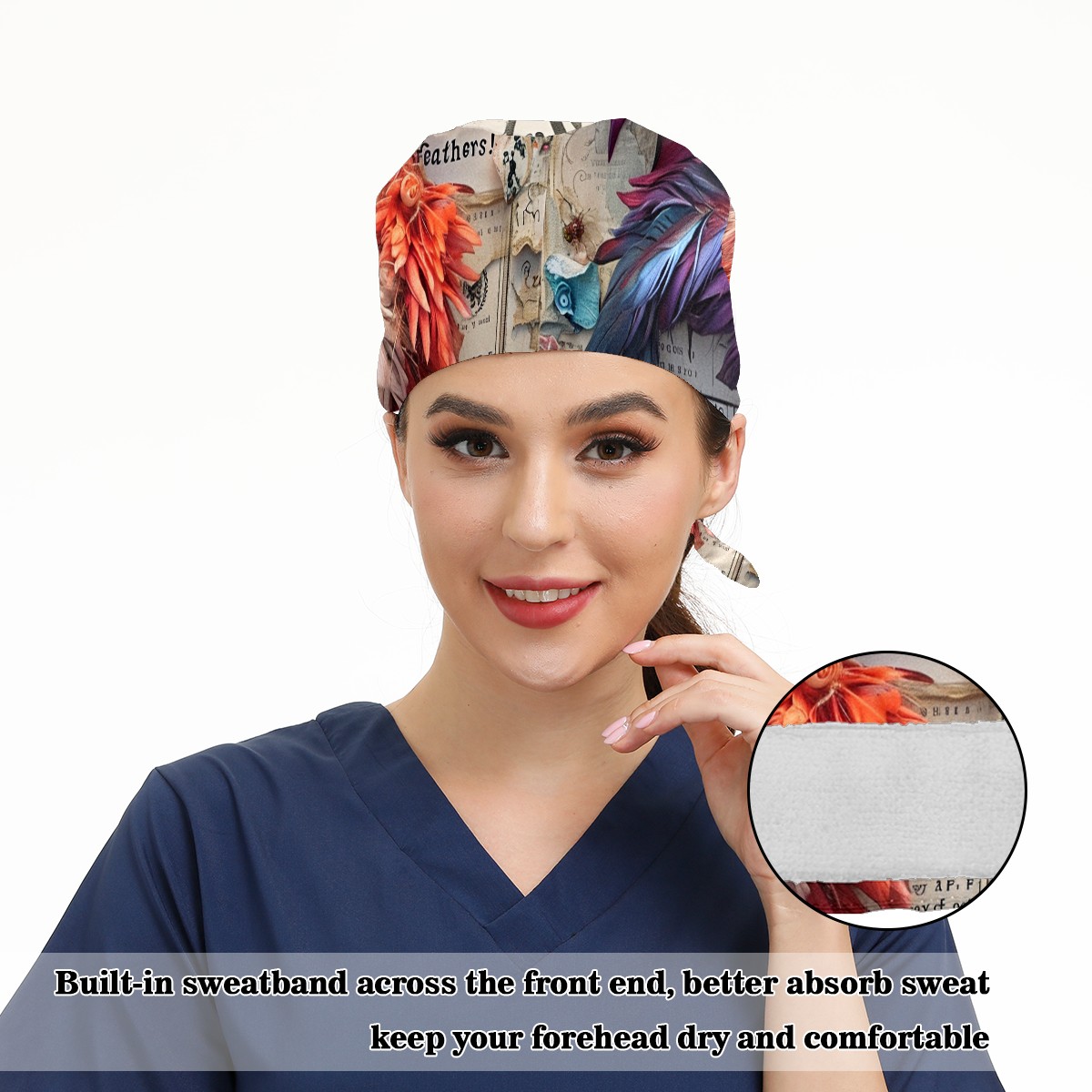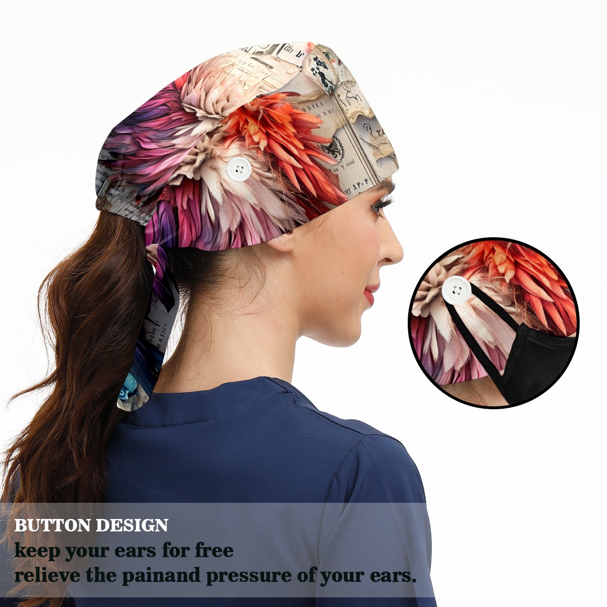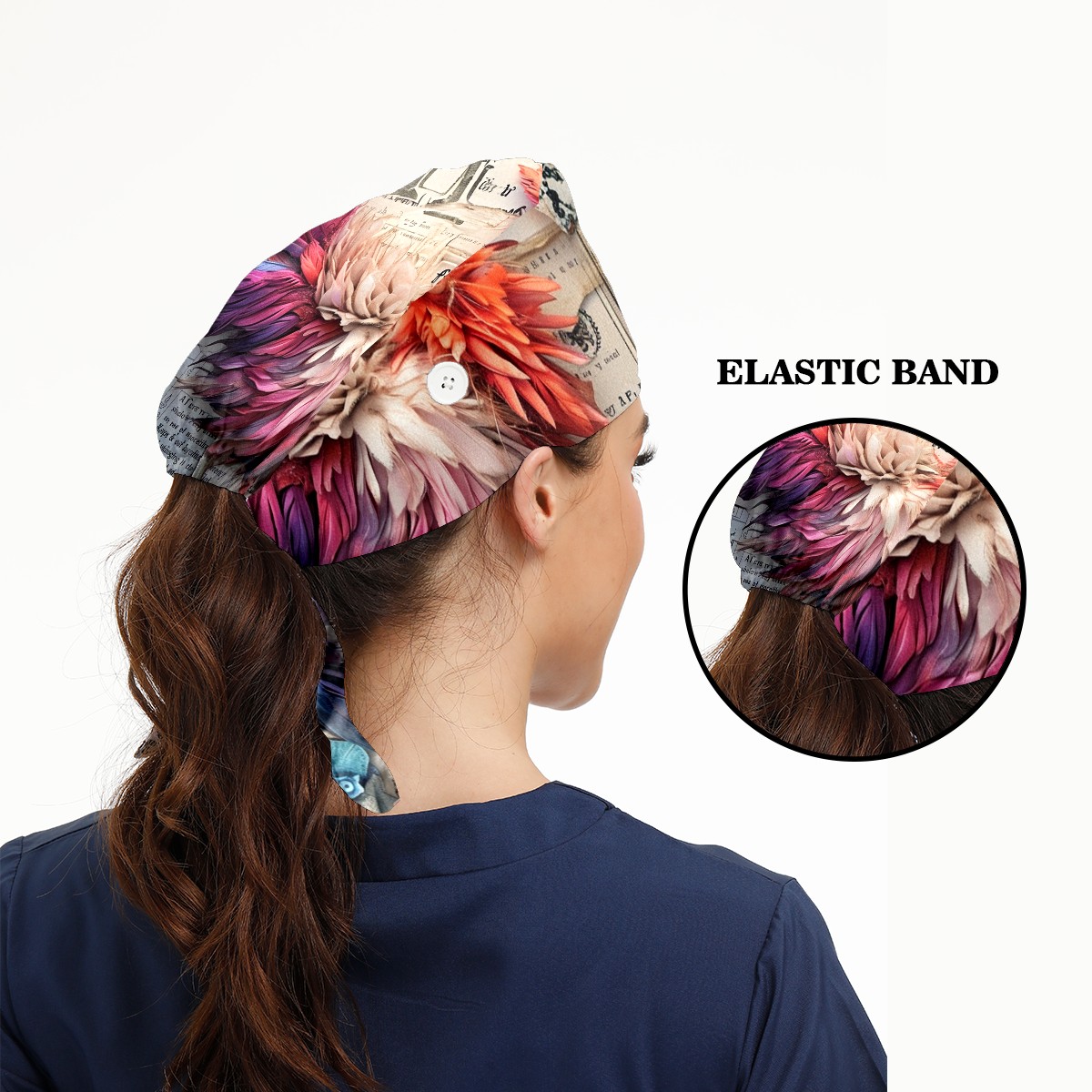 Working Caps with Button&Sweatband Satin Lined Cotton Adjustable Nurse Hats Elastic Band Scrub Cap Surgeon Hat Chicken
