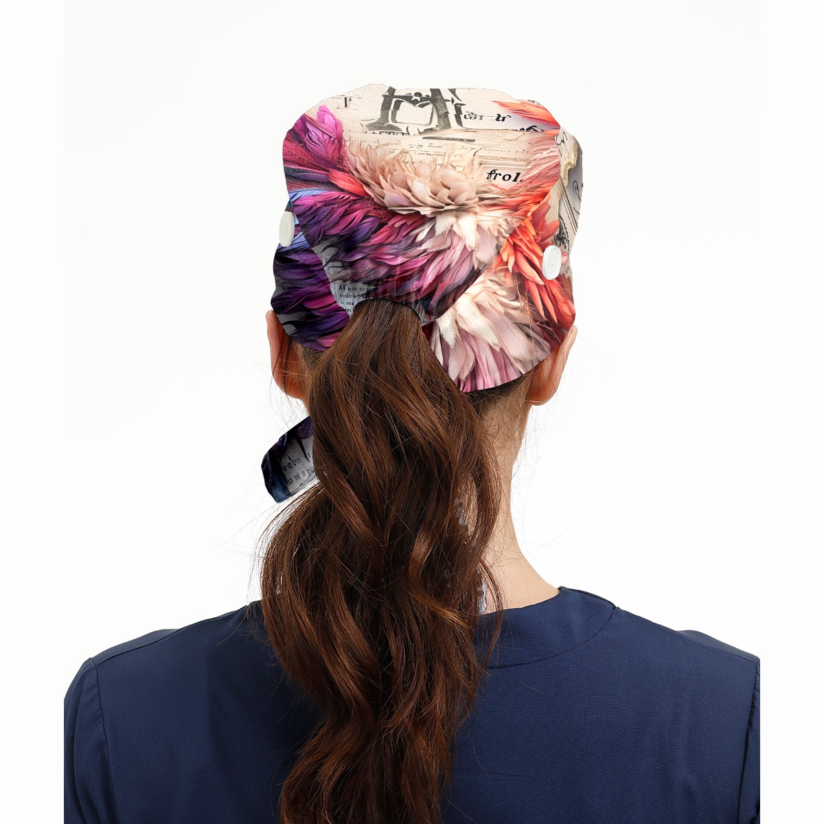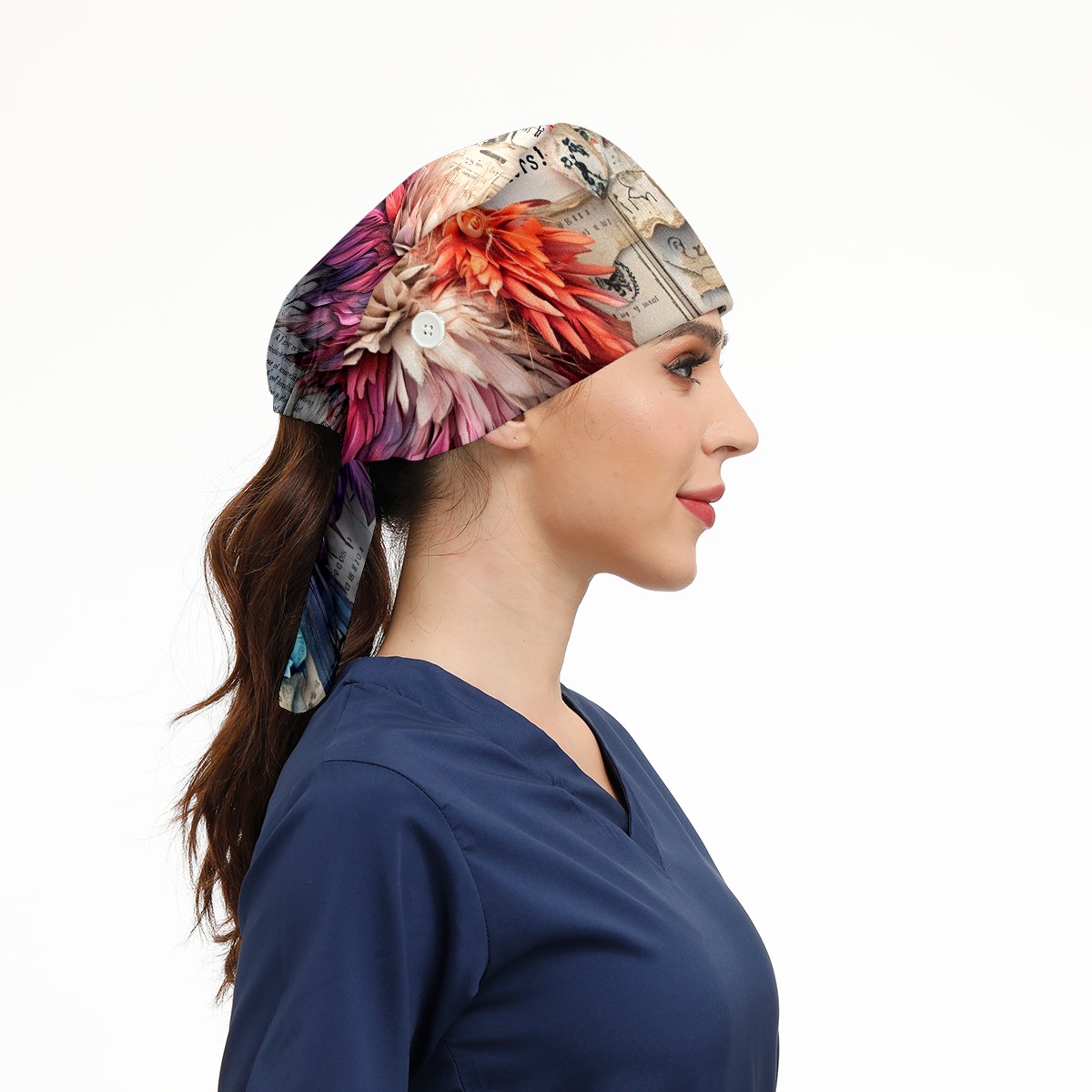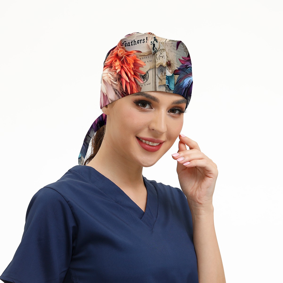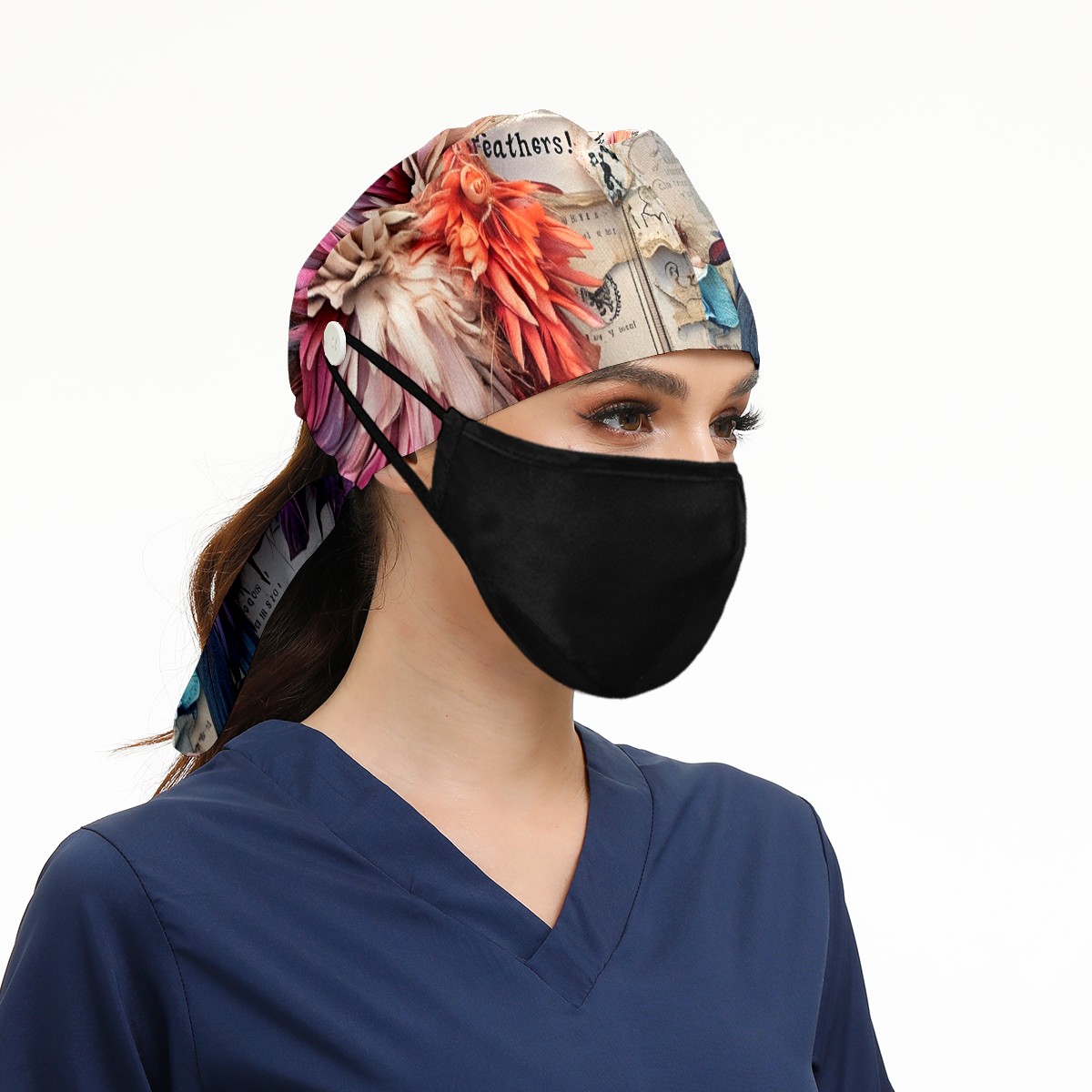 Working Caps with Button&Sweatband Satin Lined Cotton Adjustable Nurse Hats Elastic Band Scrub Cap Surgeon Hat Chicken