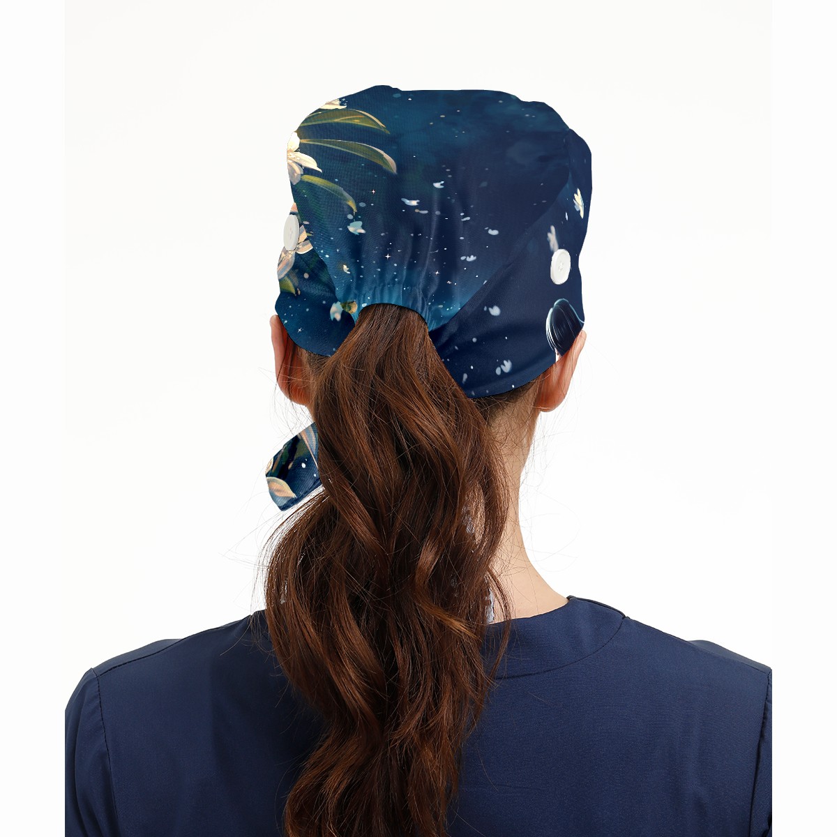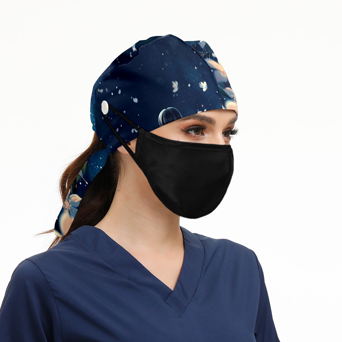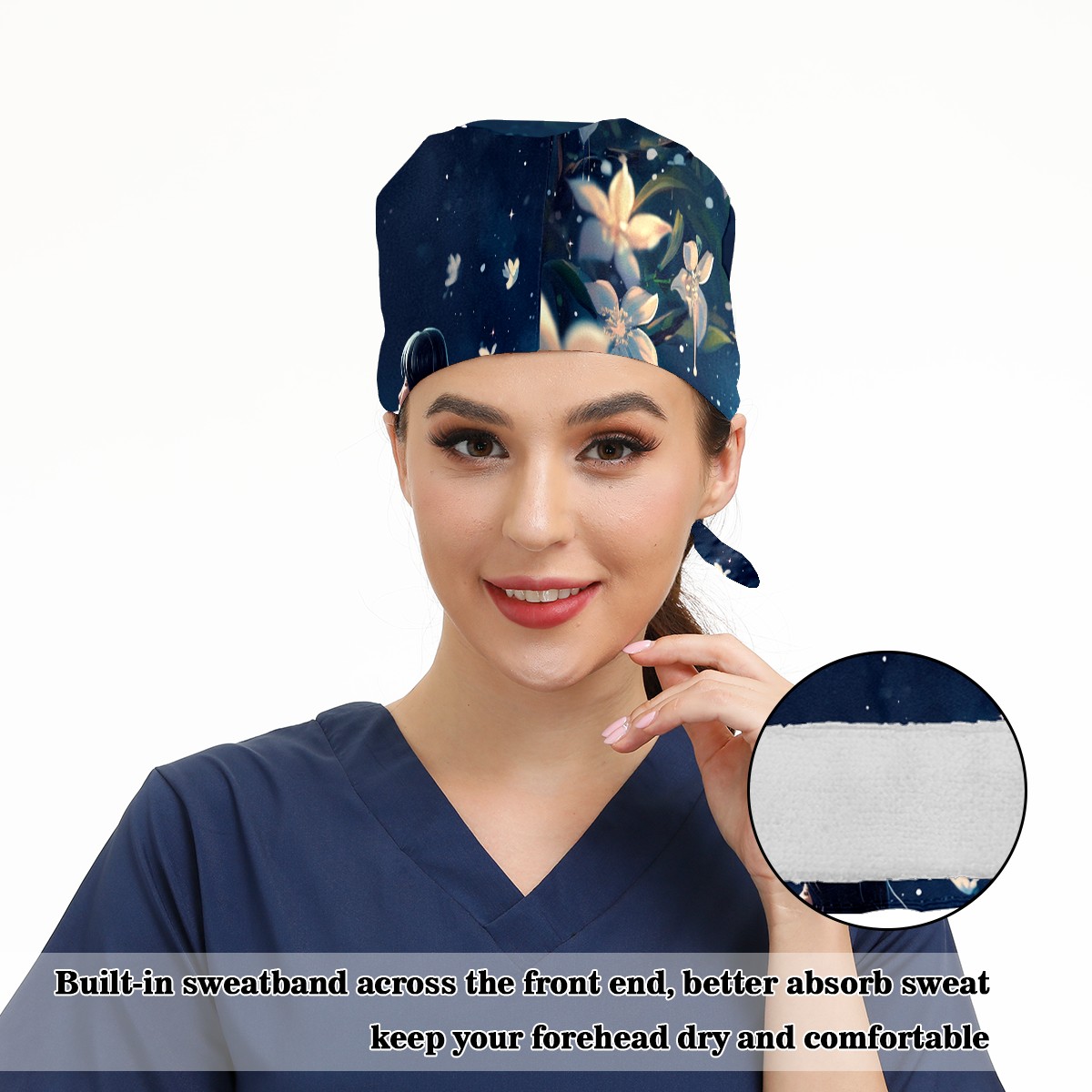Working Caps with Button&Sweatband Satin Lined Cotton Adjustable Nurse Hats Elastic Band Scrub Cap Surgeon Hat Flower