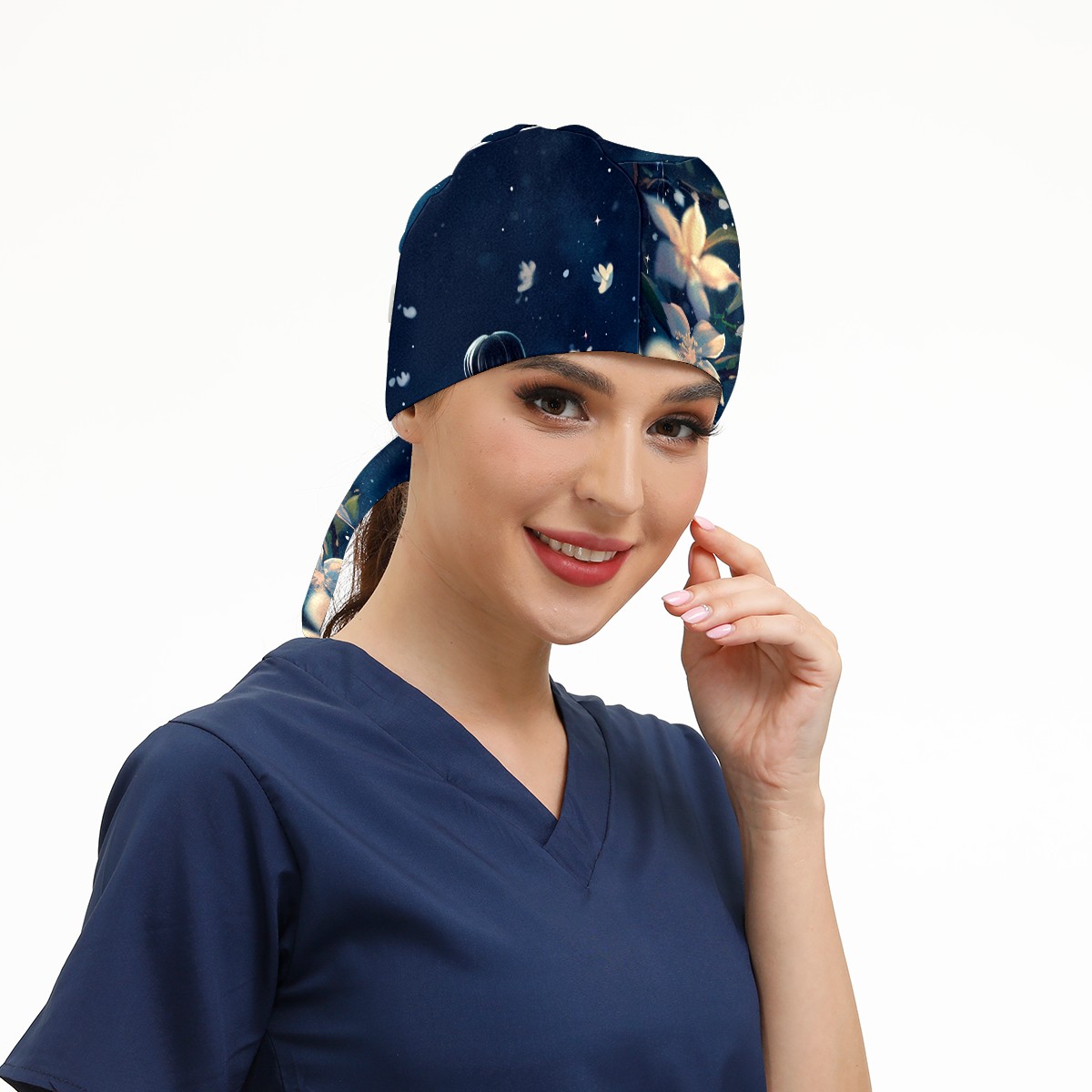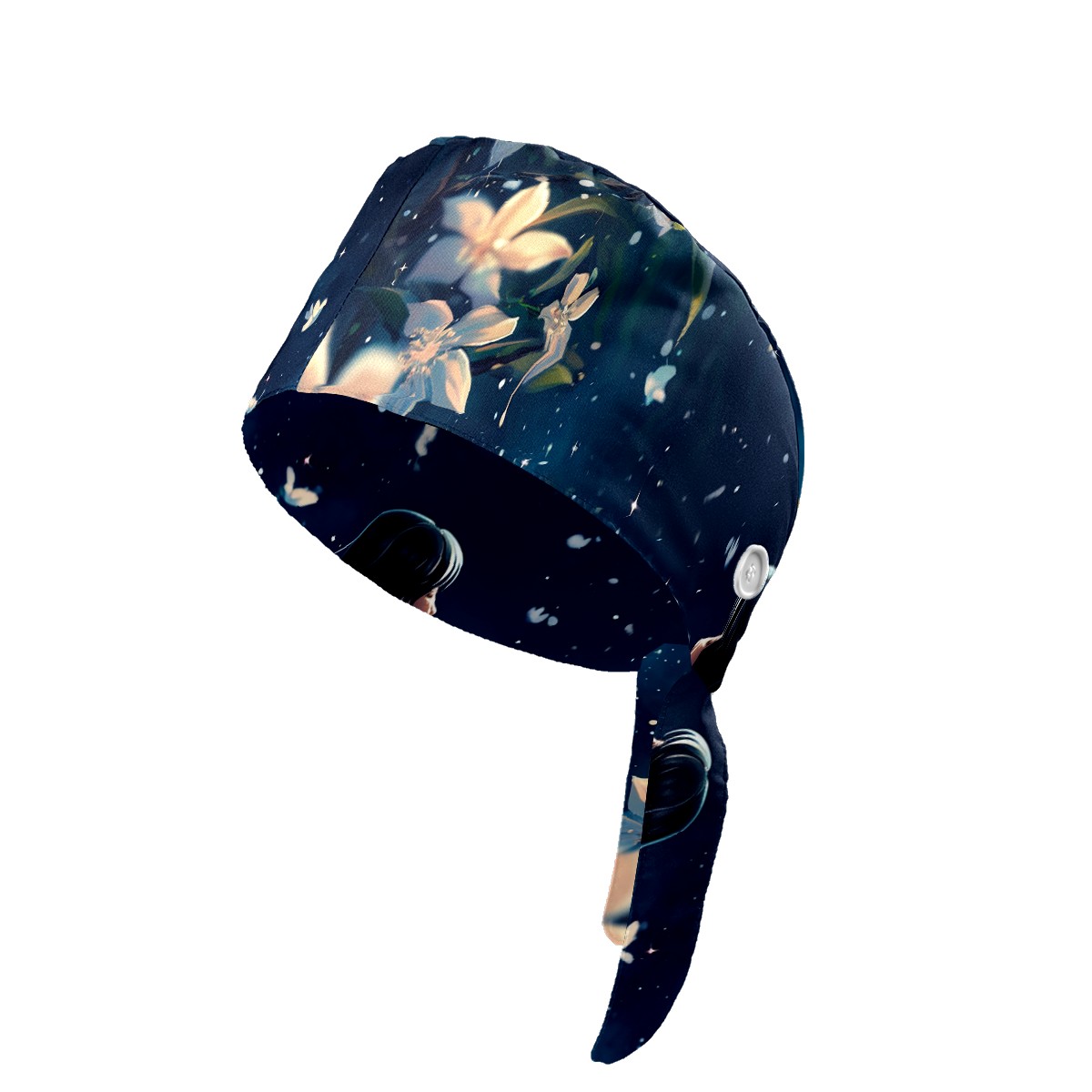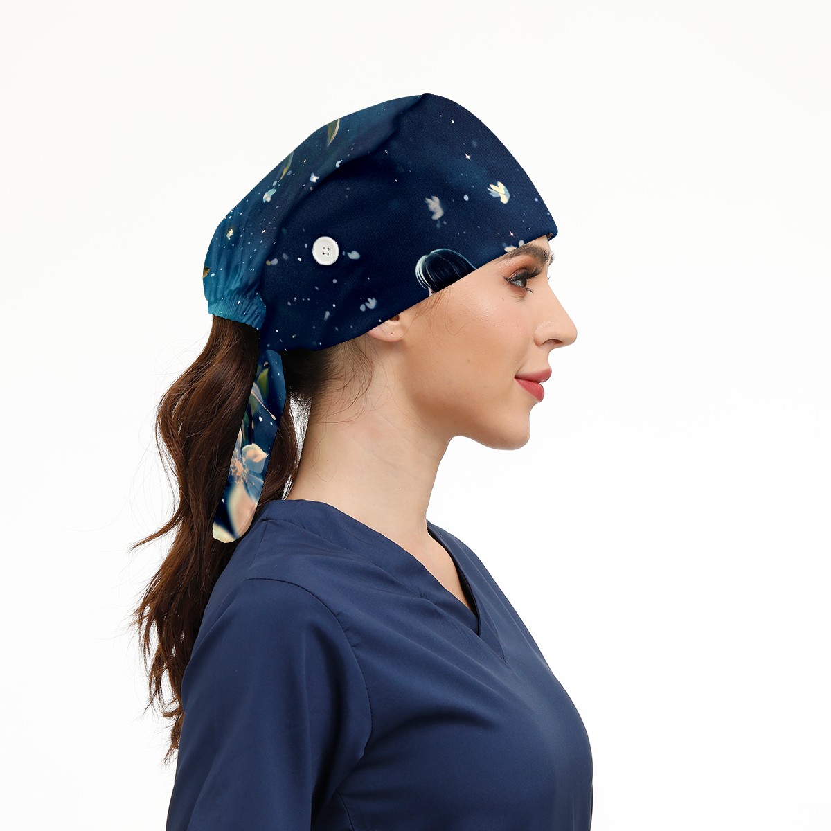 Working Caps with Button&Sweatband Satin Lined Cotton Adjustable Nurse Hats Elastic Band Scrub Cap Surgeon Hat Flower