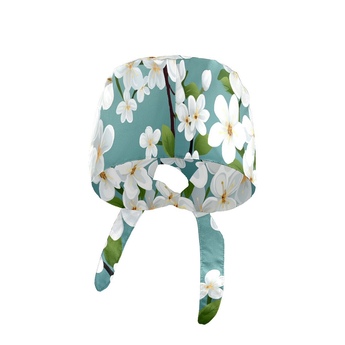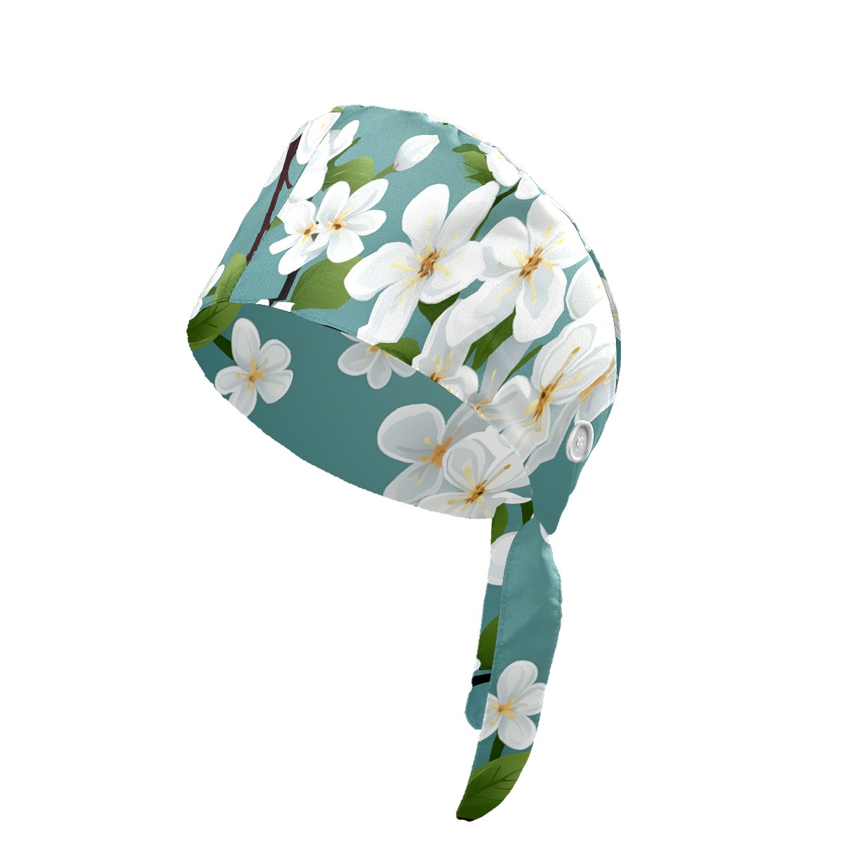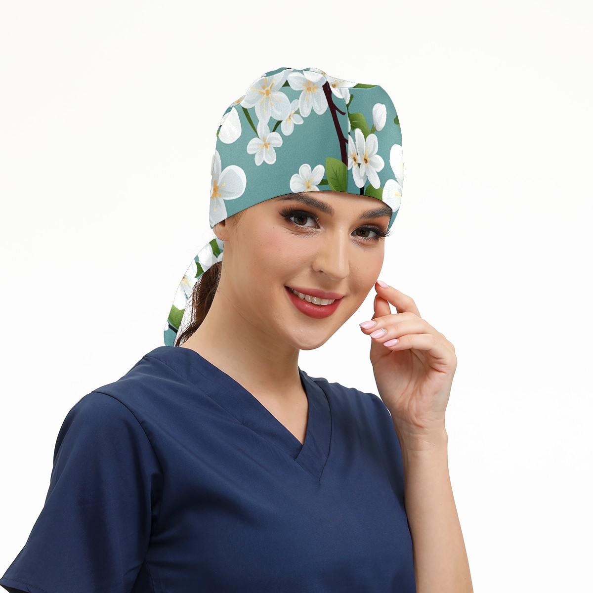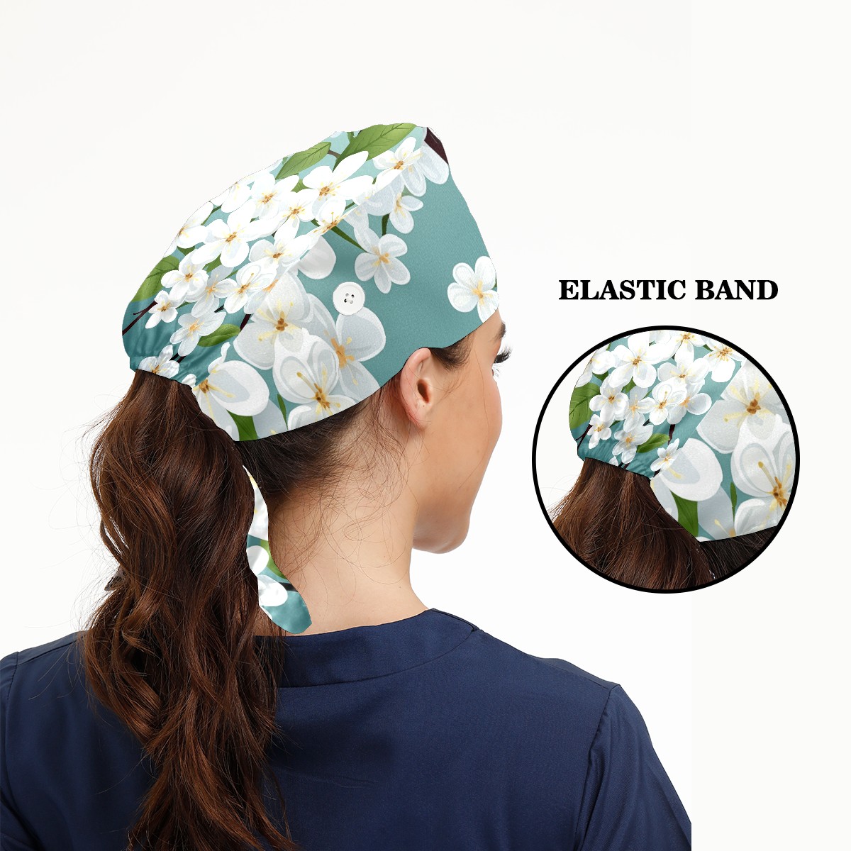 Working Caps with Button&Sweatband Satin Lined Cotton Adjustable Nurse Hats Elastic Band Scrub Cap Surgeon Hat Pretty Flowers A