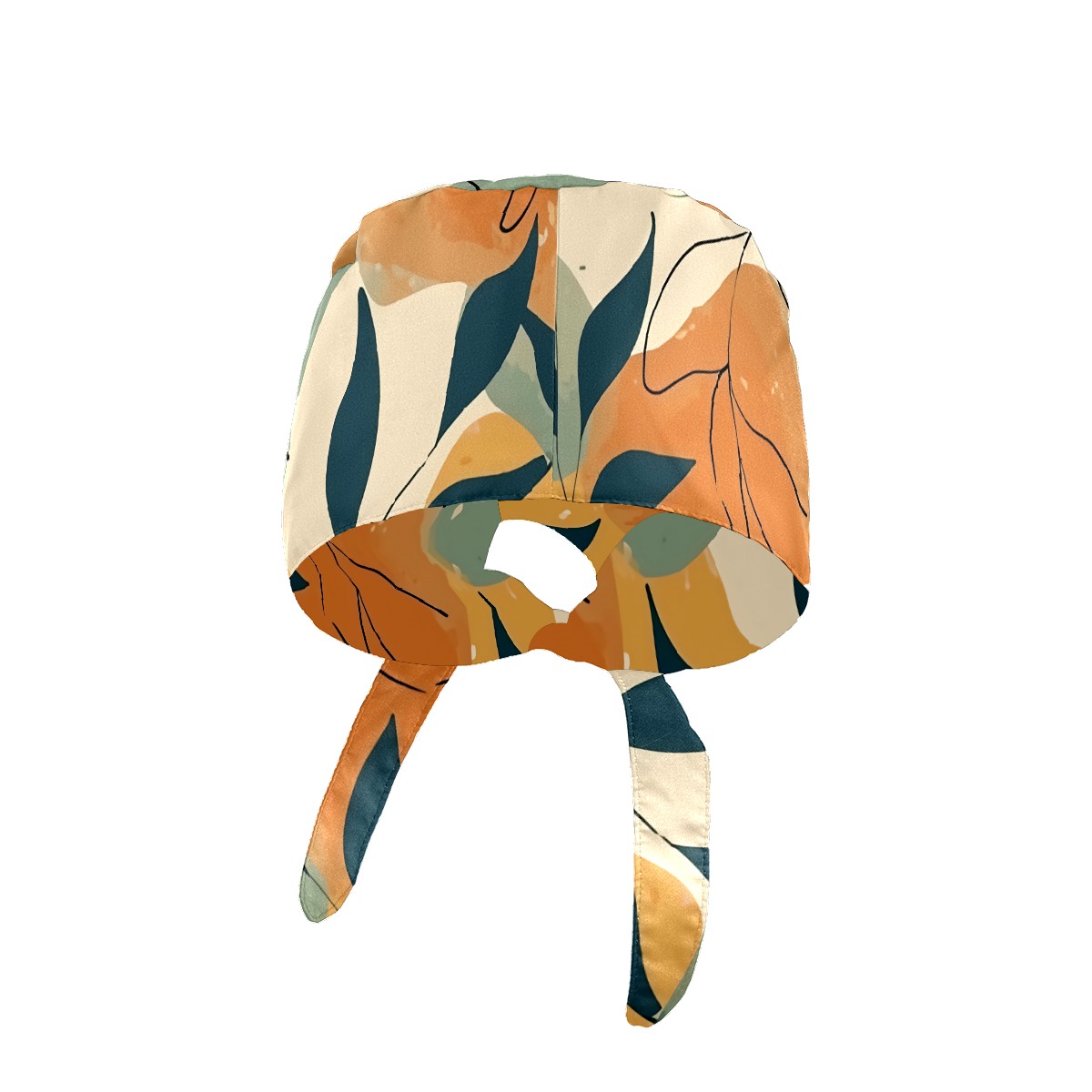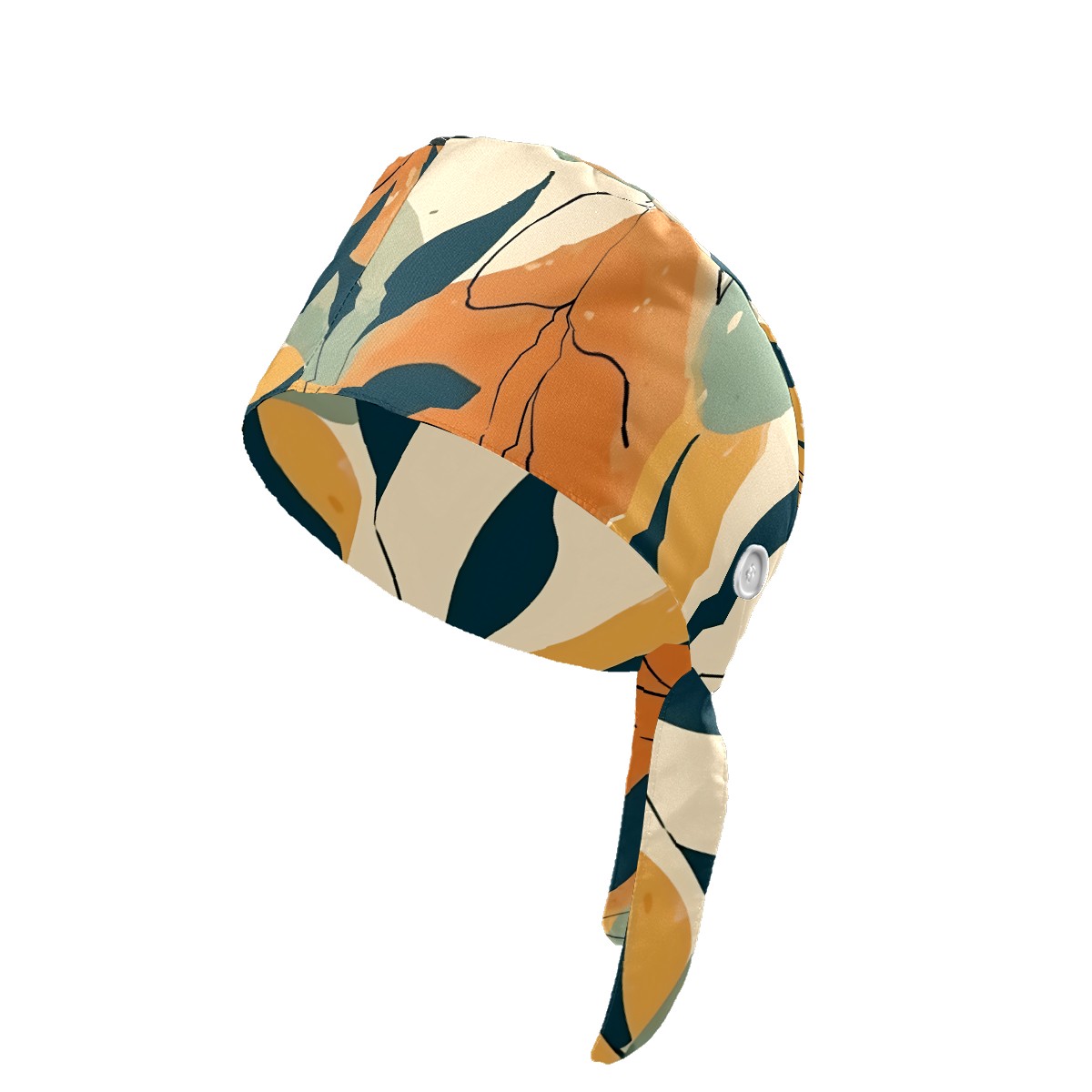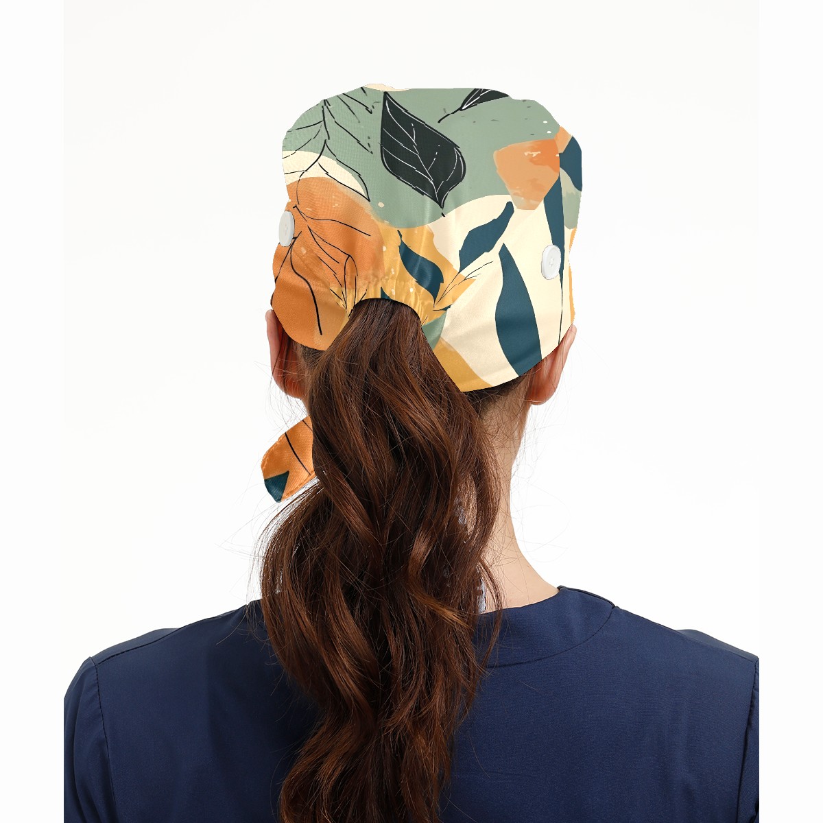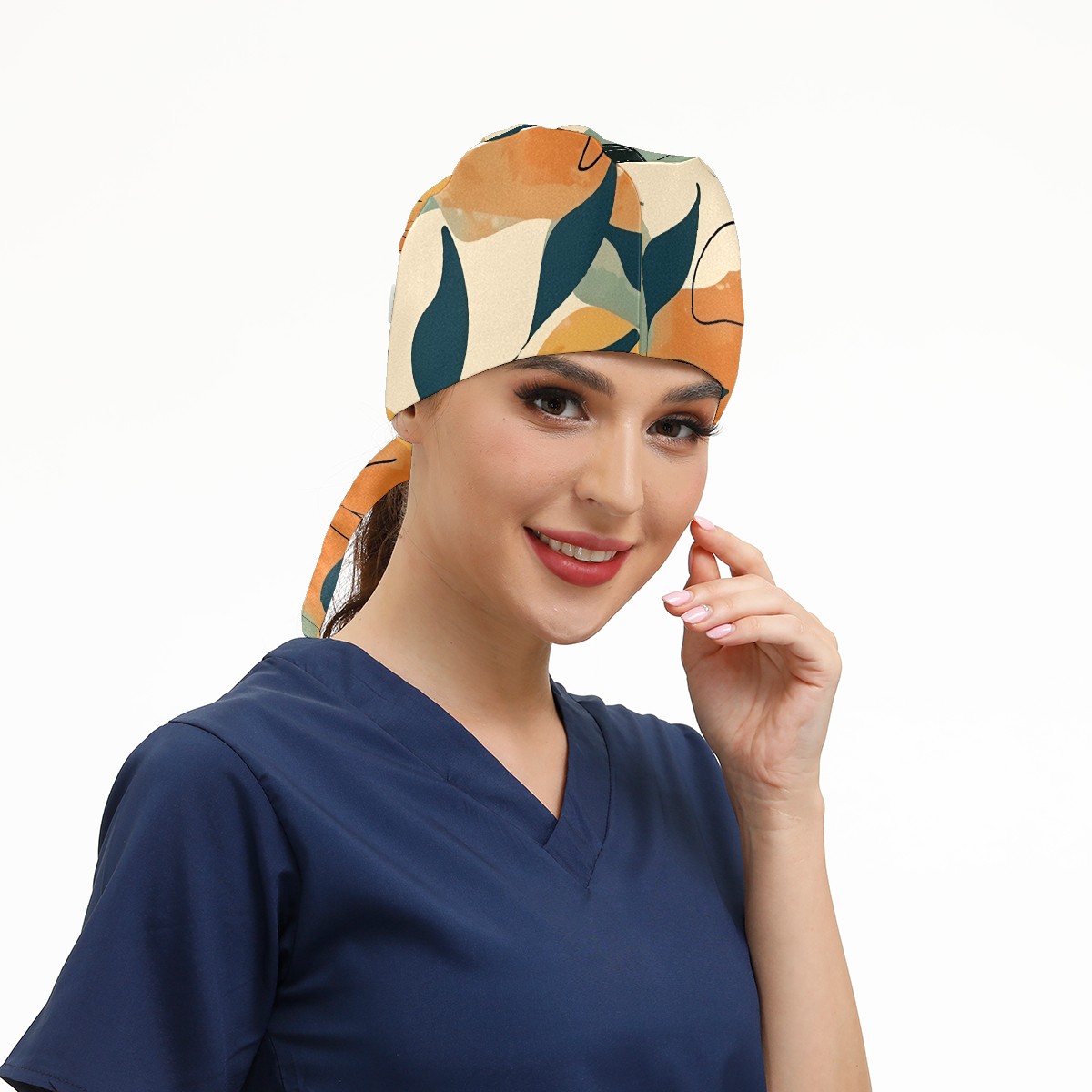 Working Caps with Button&Sweatband Satin Lined Cotton Adjustable Nurse Hats Elastic Band Scrub Cap Surgeon Hat Leaf