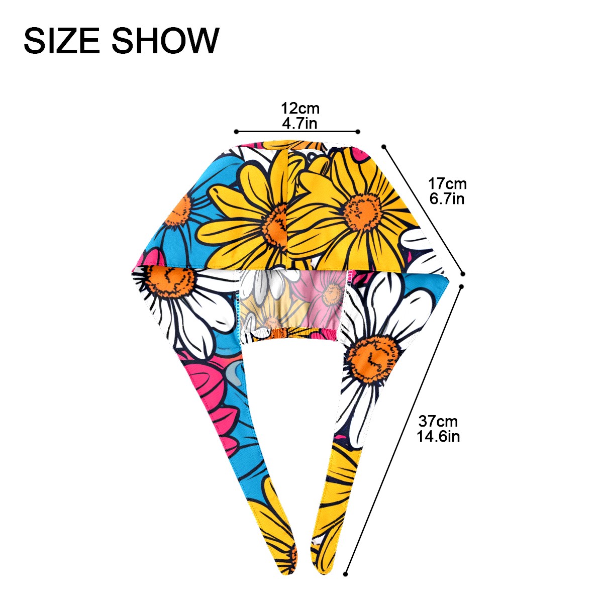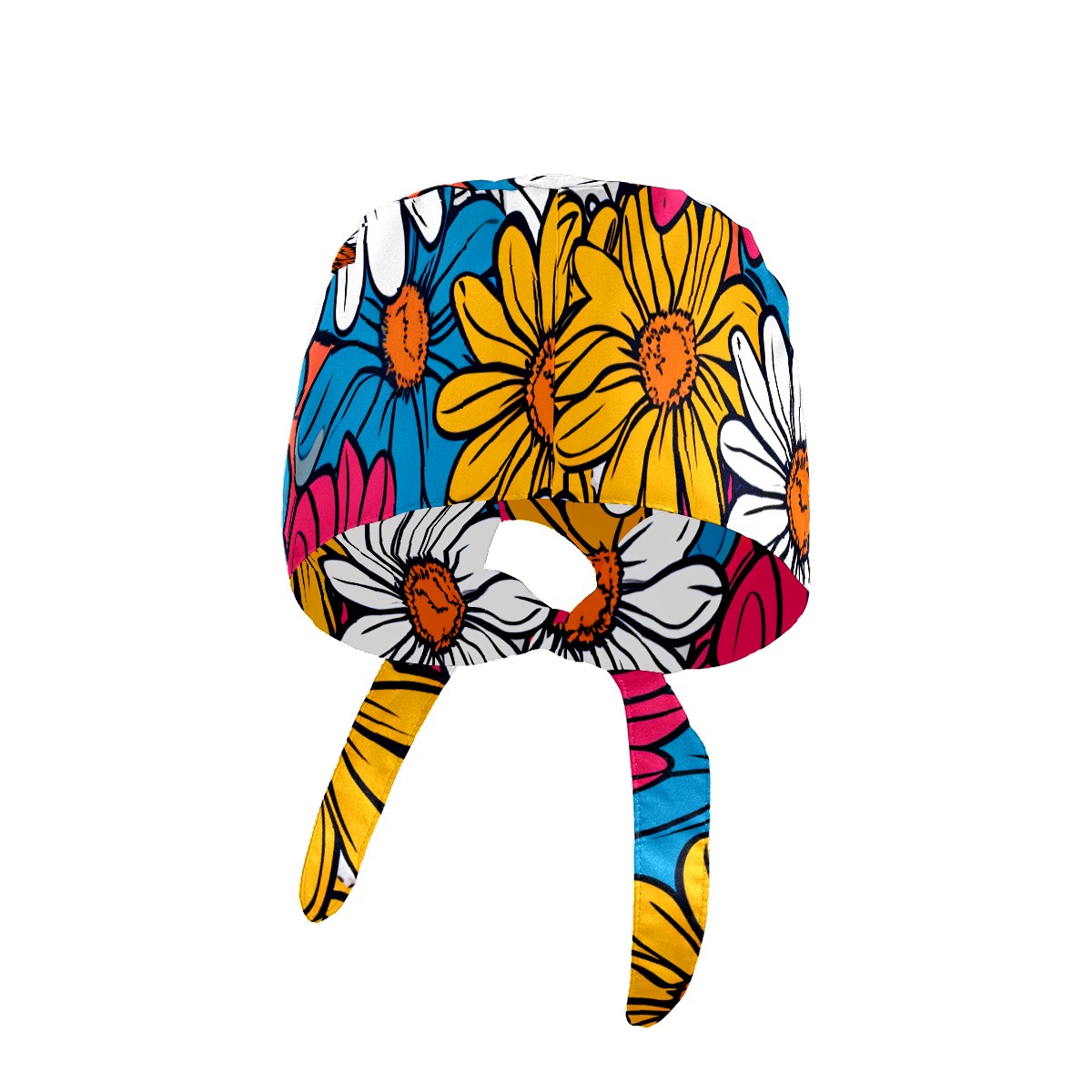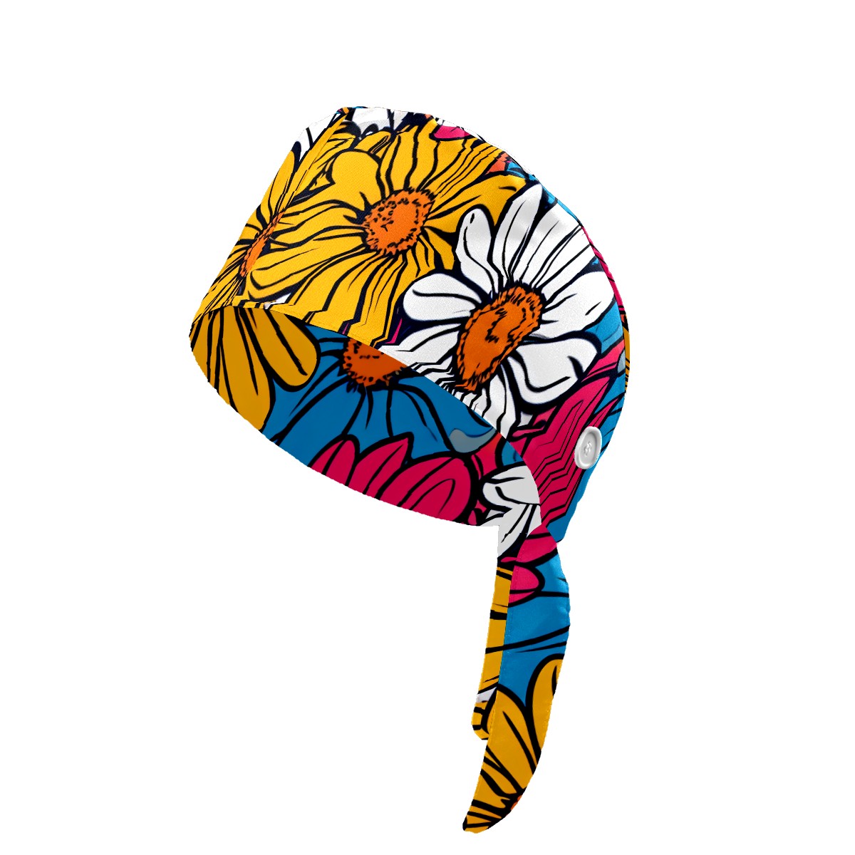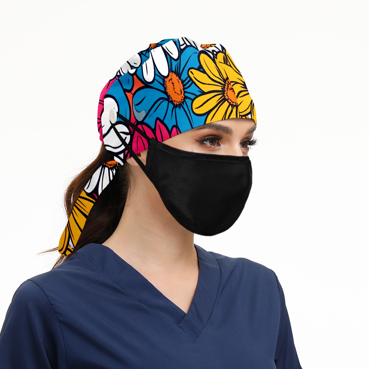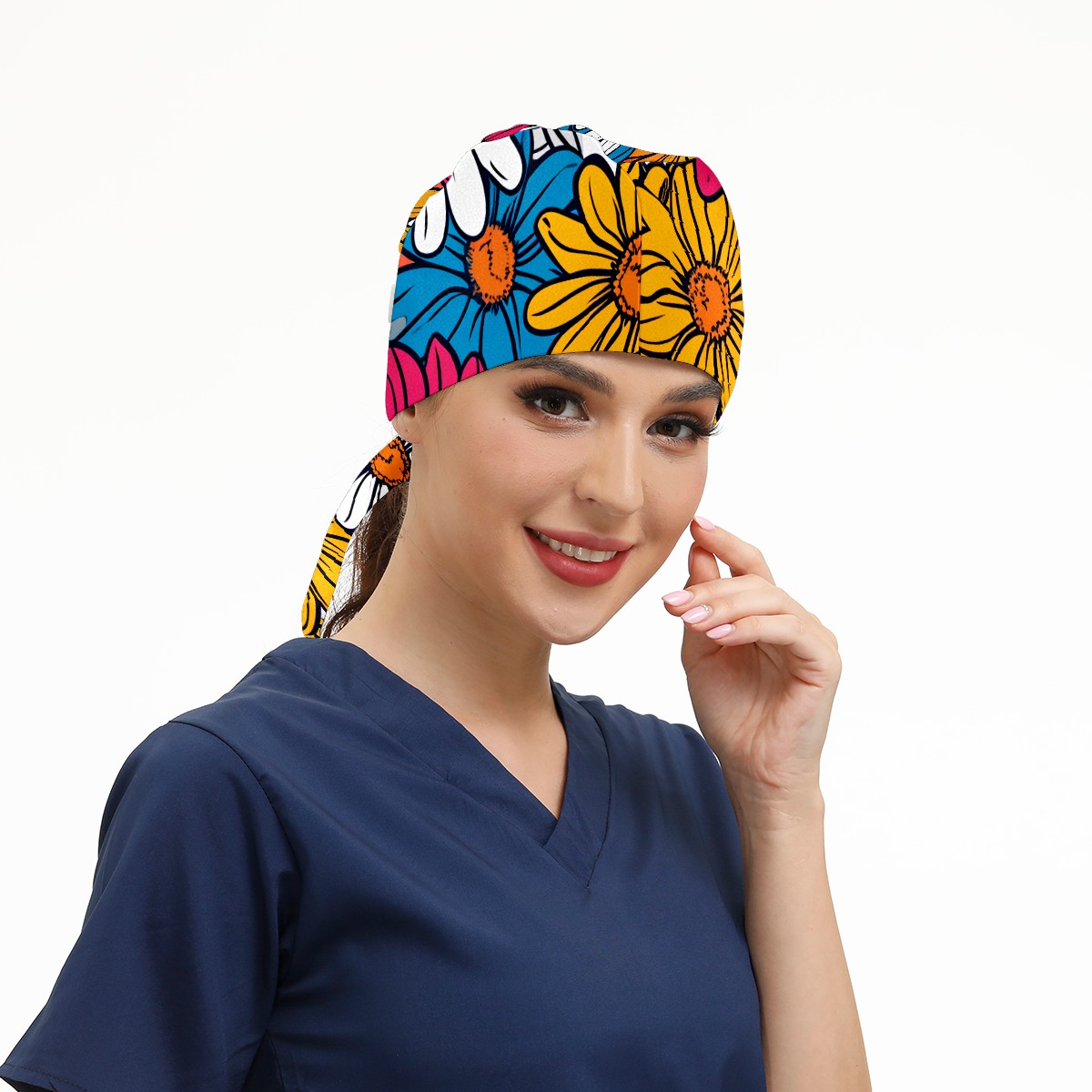 Working Caps with Button&Sweatband Satin Lined Cotton Adjustable Nurse Hats Elastic Band Scrub Cap Surgeon Hat Daisy Flower