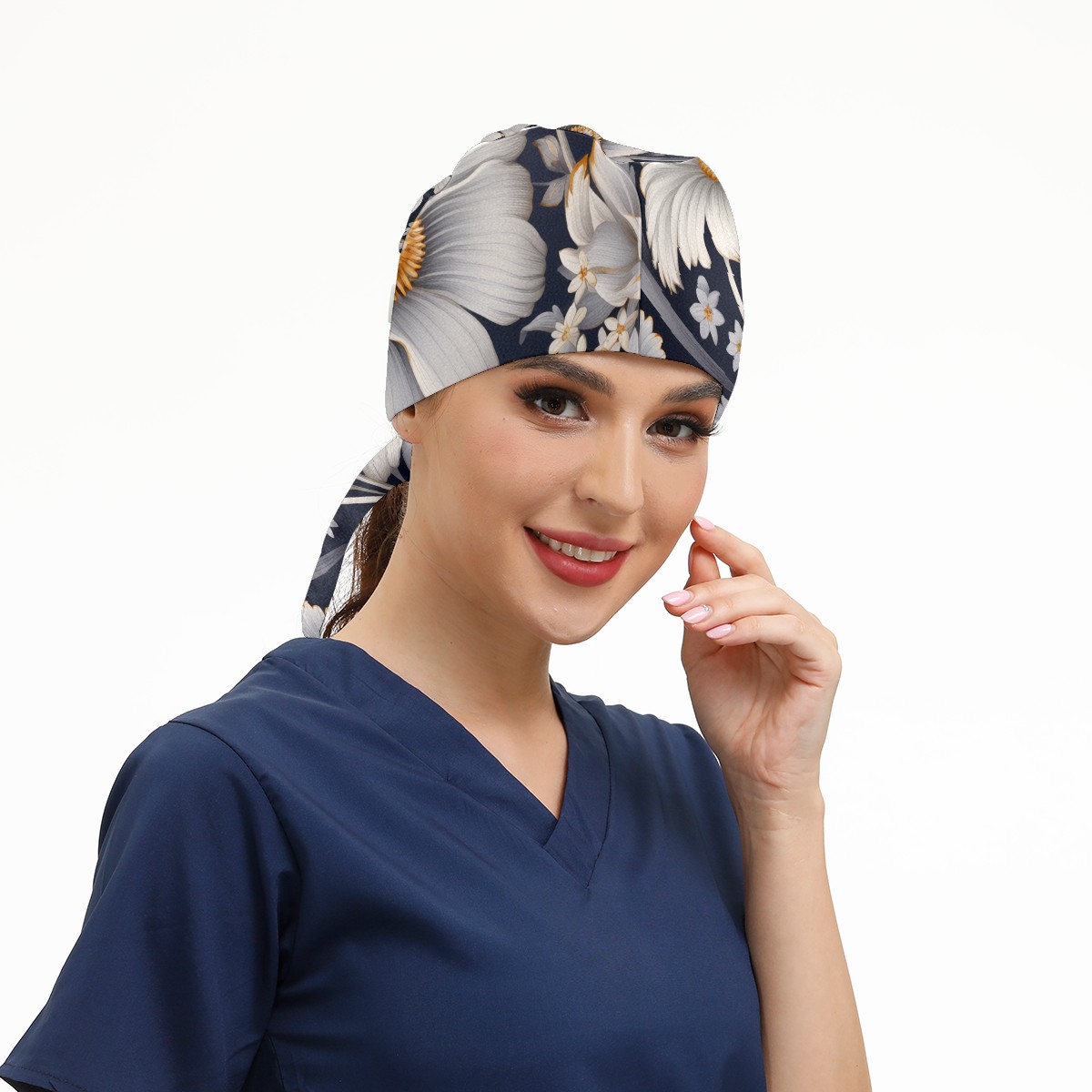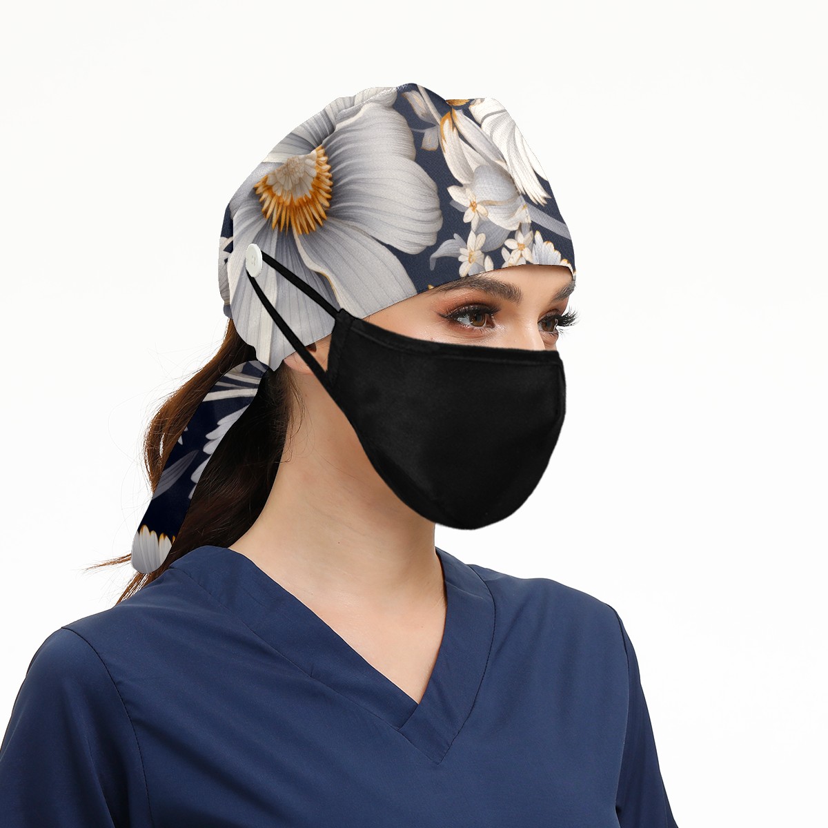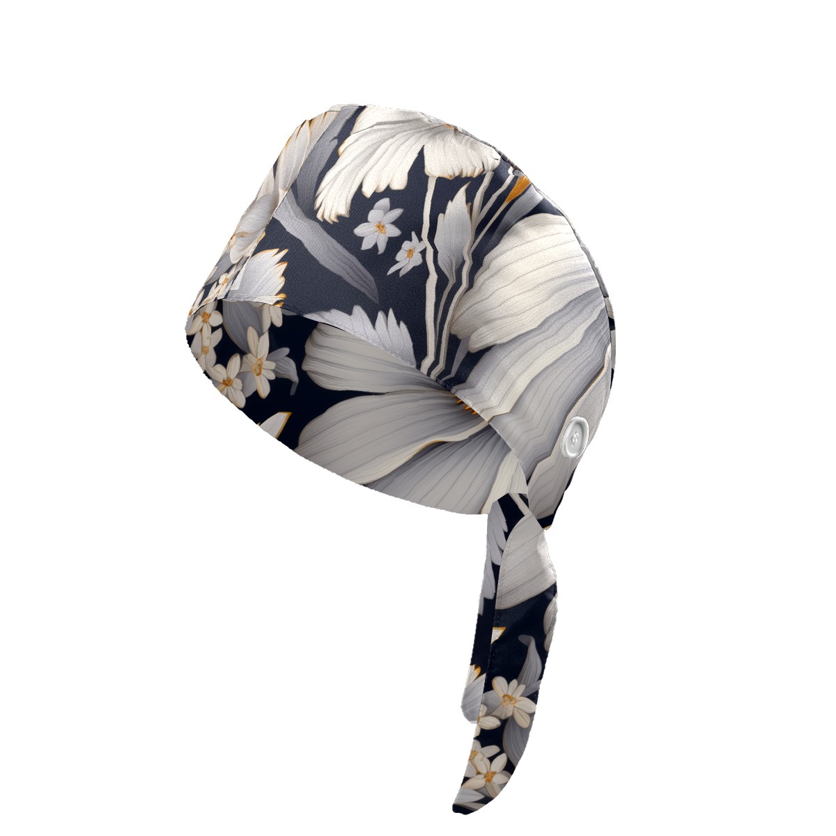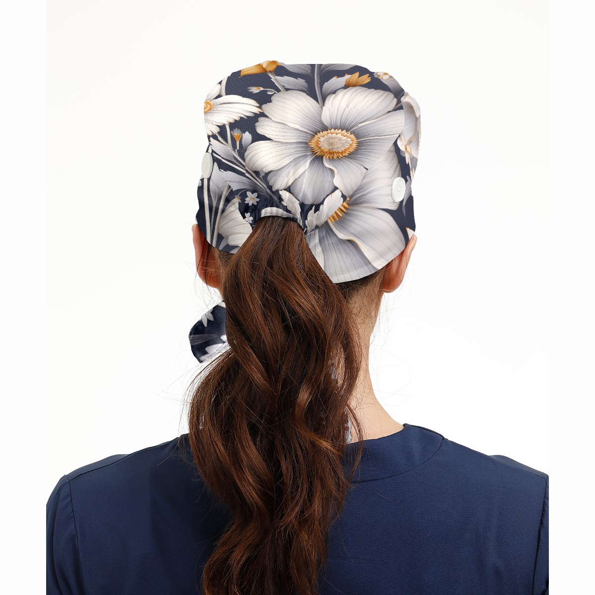 Working Caps with Button&Sweatband Satin Lined Cotton Adjustable Nurse Hats Elastic Band Scrub Cap Surgeon Hat Cute Flower A
