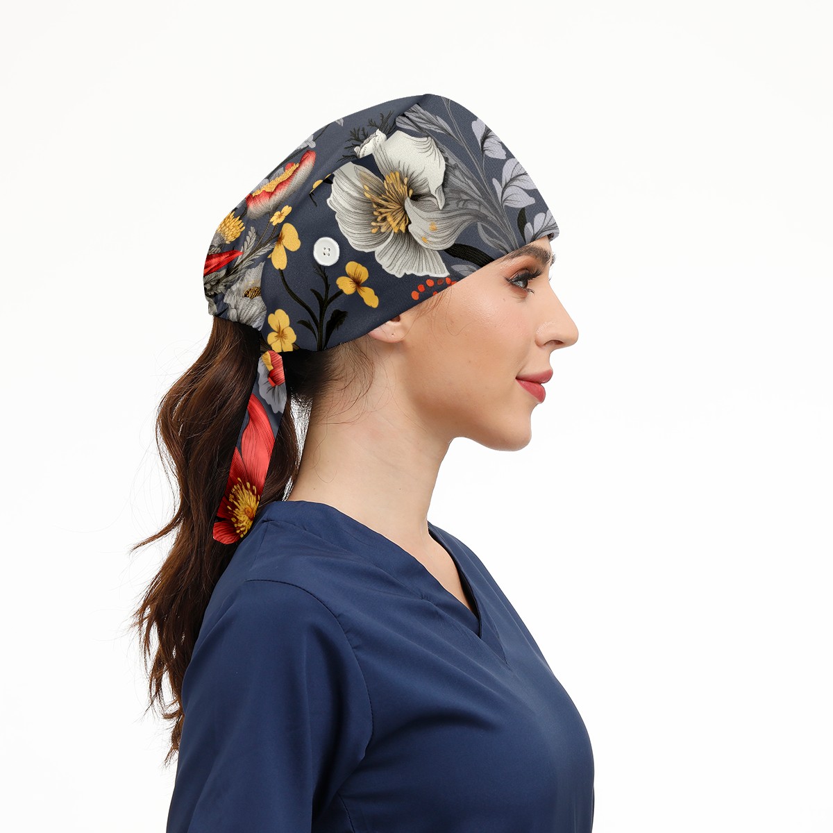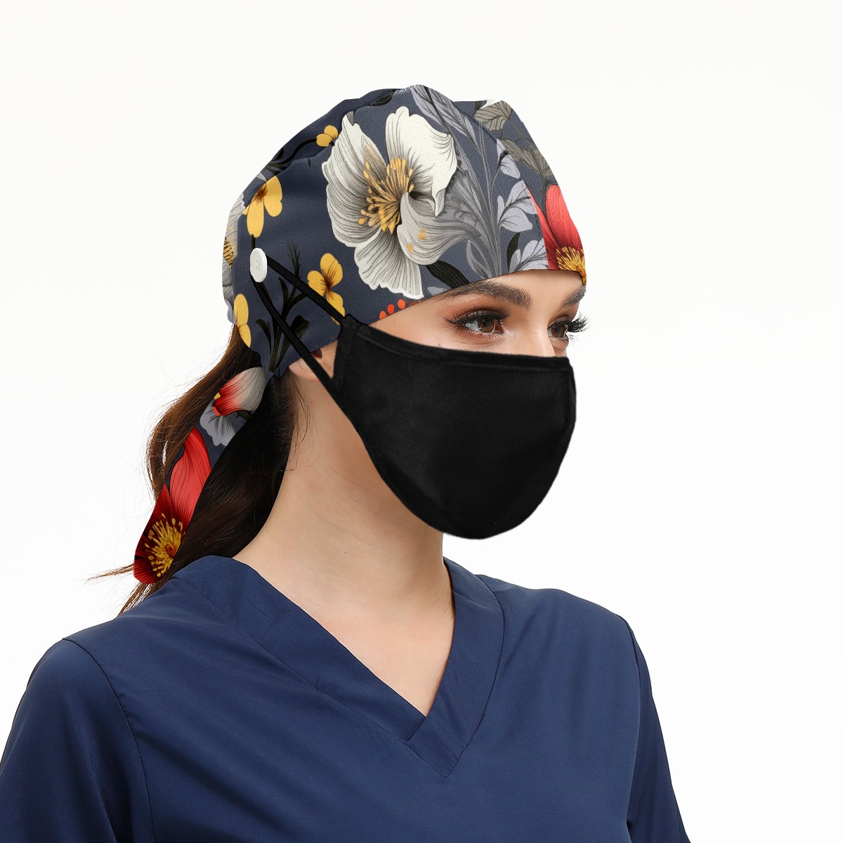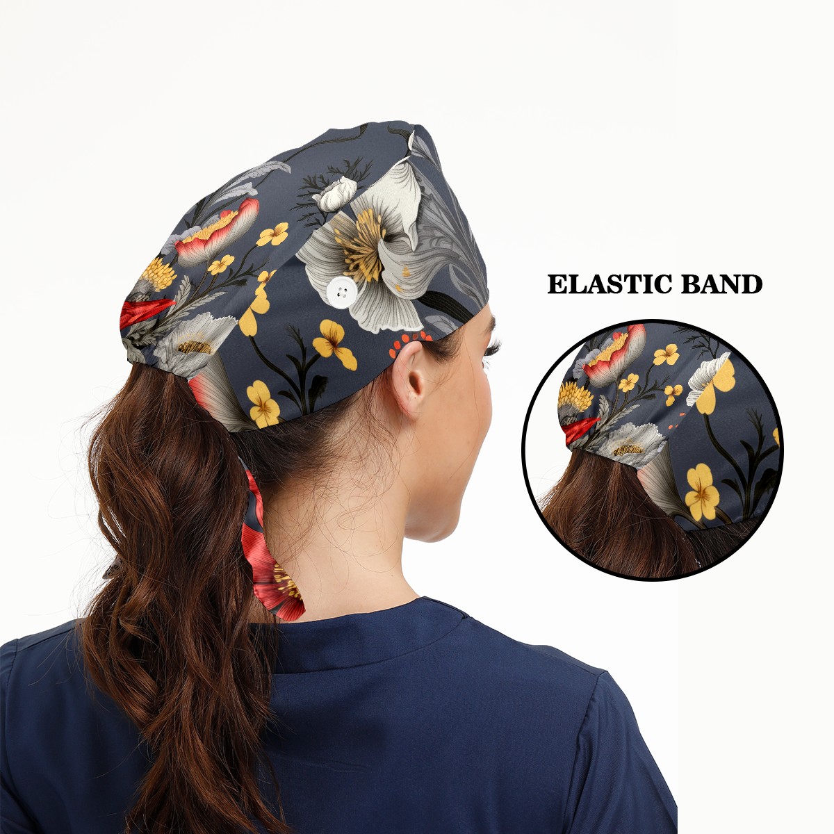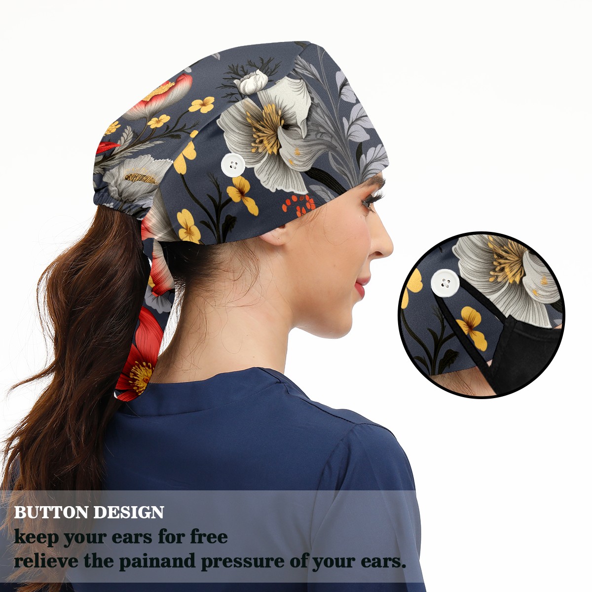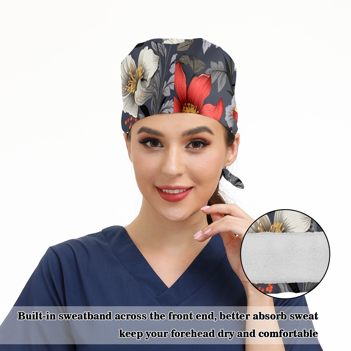 Working Caps with Button&Sweatband Satin Lined Cotton Adjustable Nurse Hats Elastic Band Scrub Cap Surgeon Hat Bouquets B