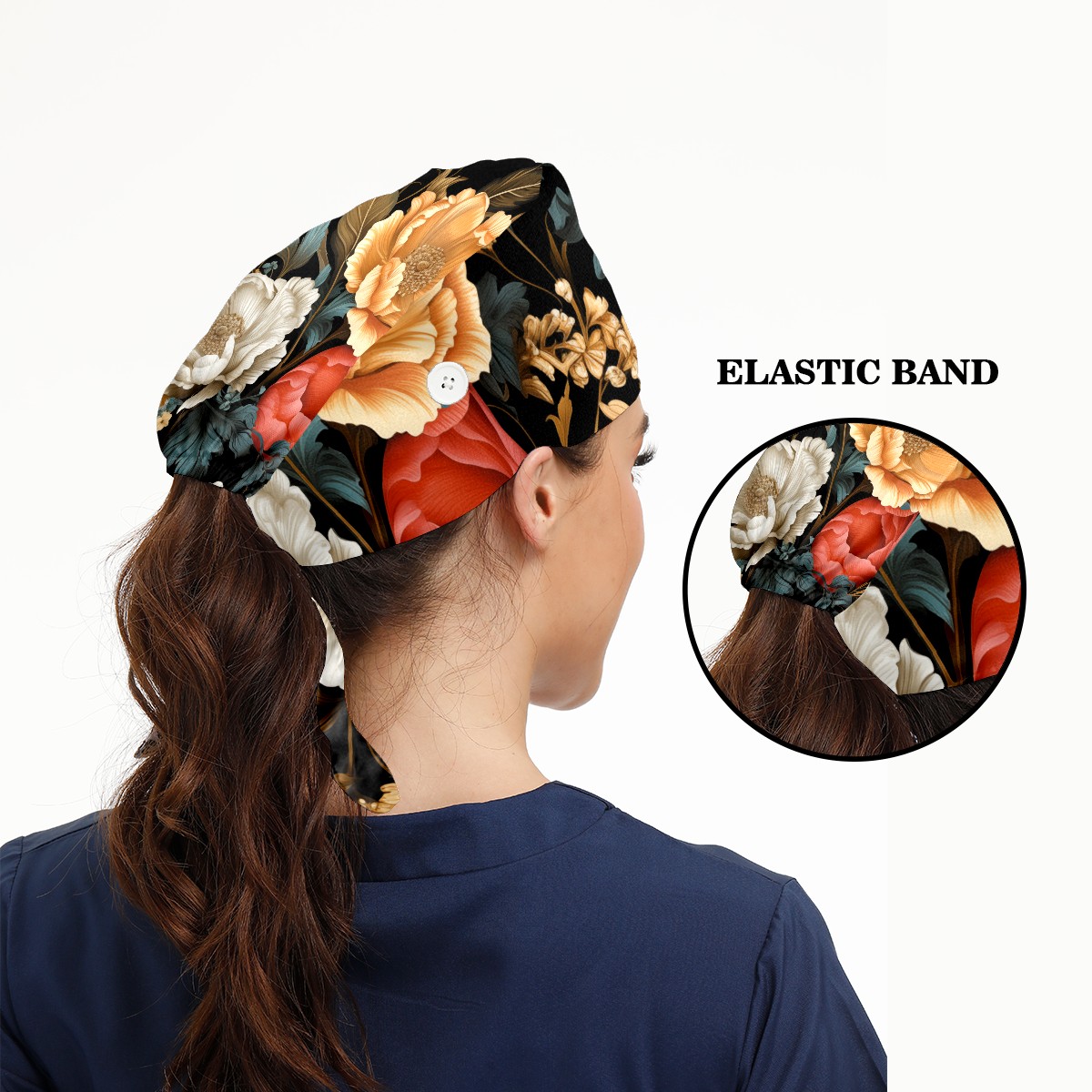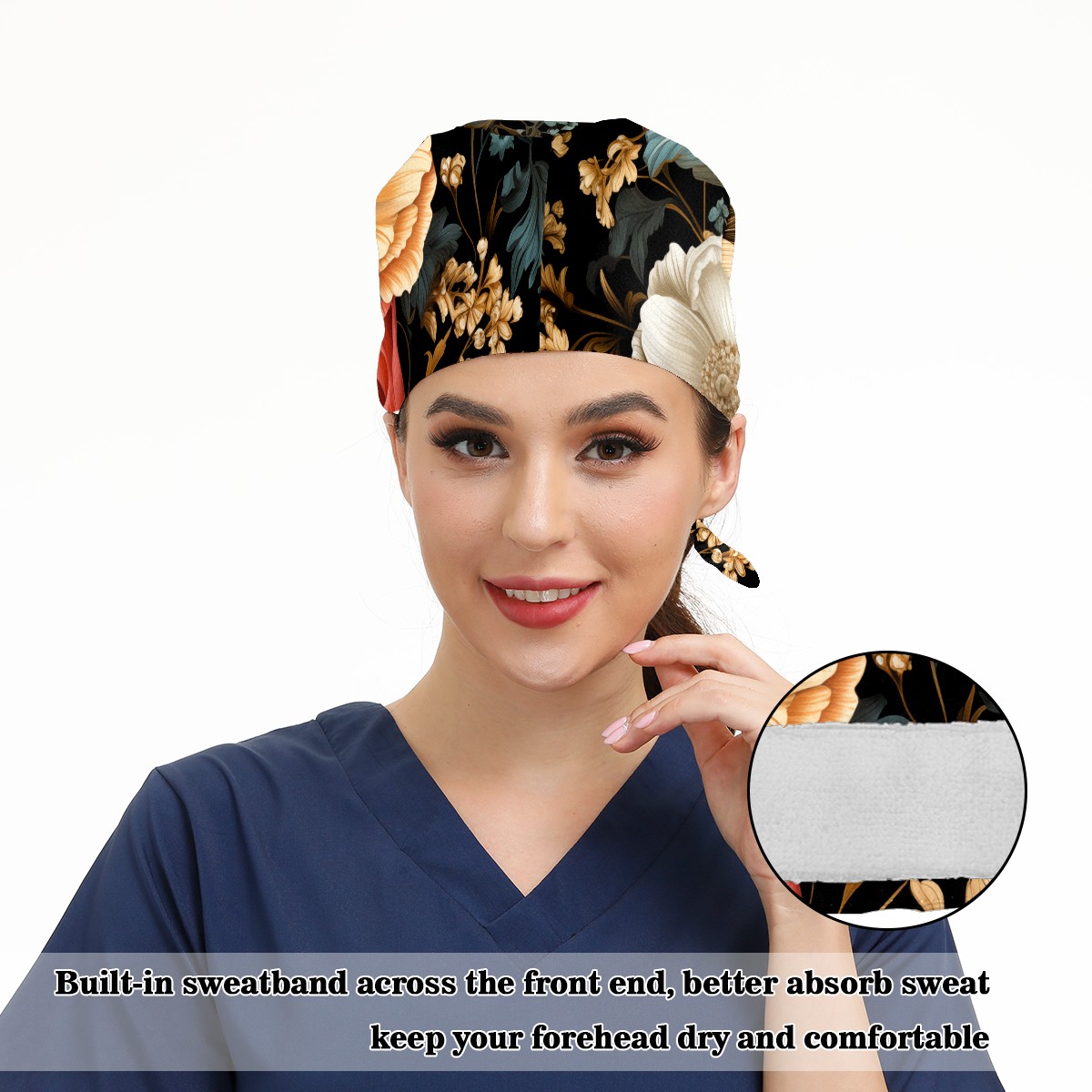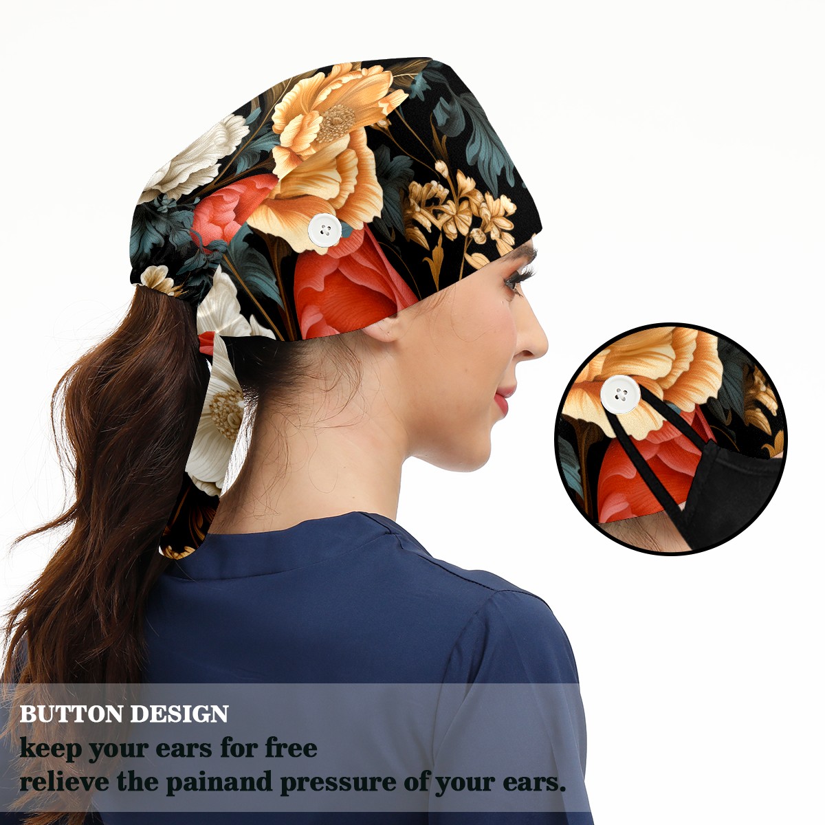 Working Caps with Button&Sweatband Satin Lined Cotton Adjustable Nurse Hats Elastic Band Scrub Cap Surgeon Hat Vegetative A