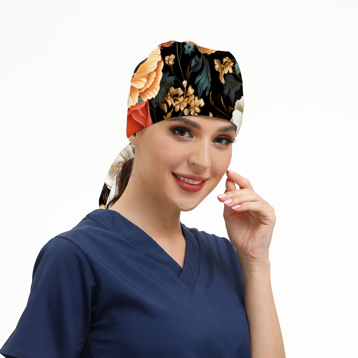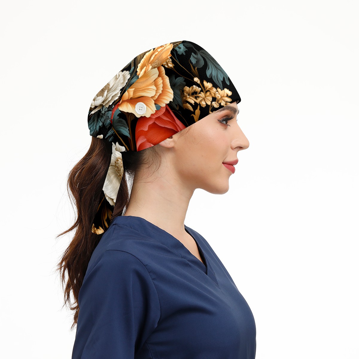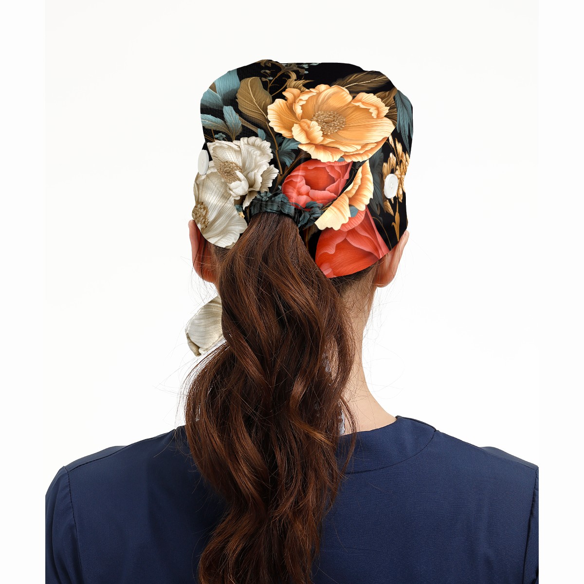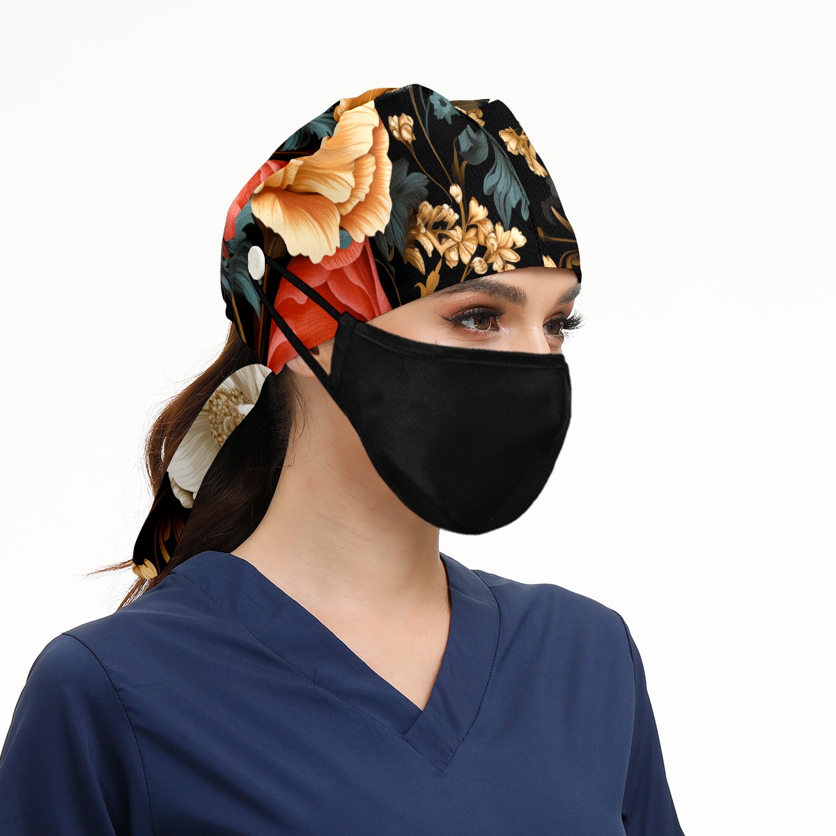 Working Caps with Button&Sweatband Satin Lined Cotton Adjustable Nurse Hats Elastic Band Scrub Cap Surgeon Hat Vegetative A