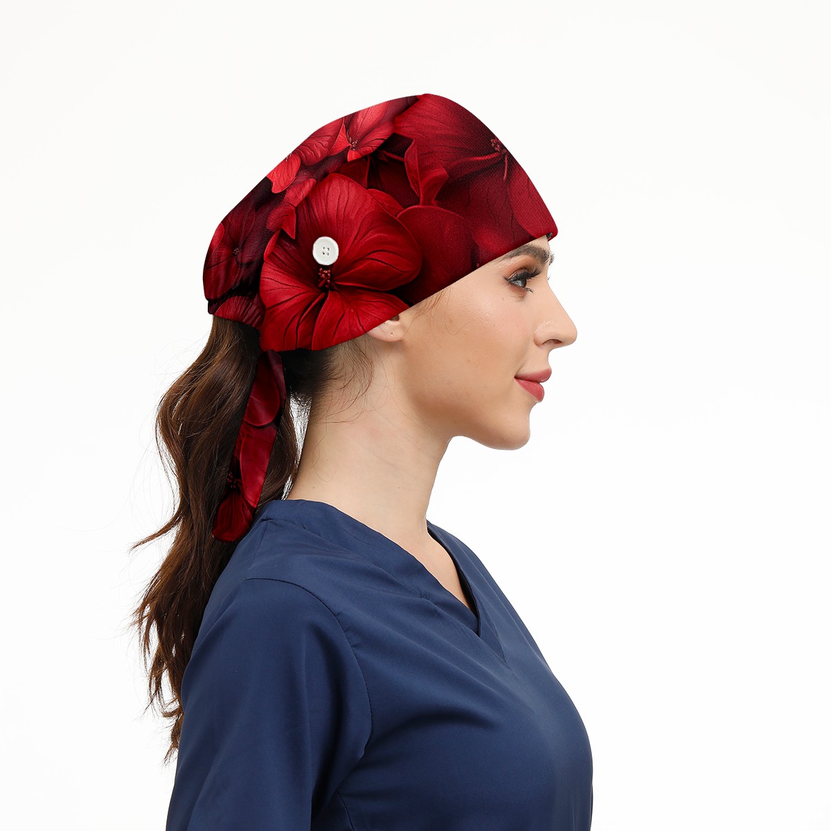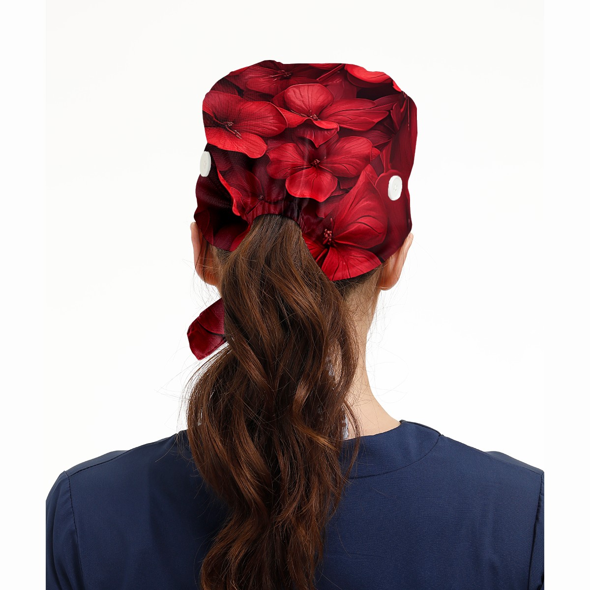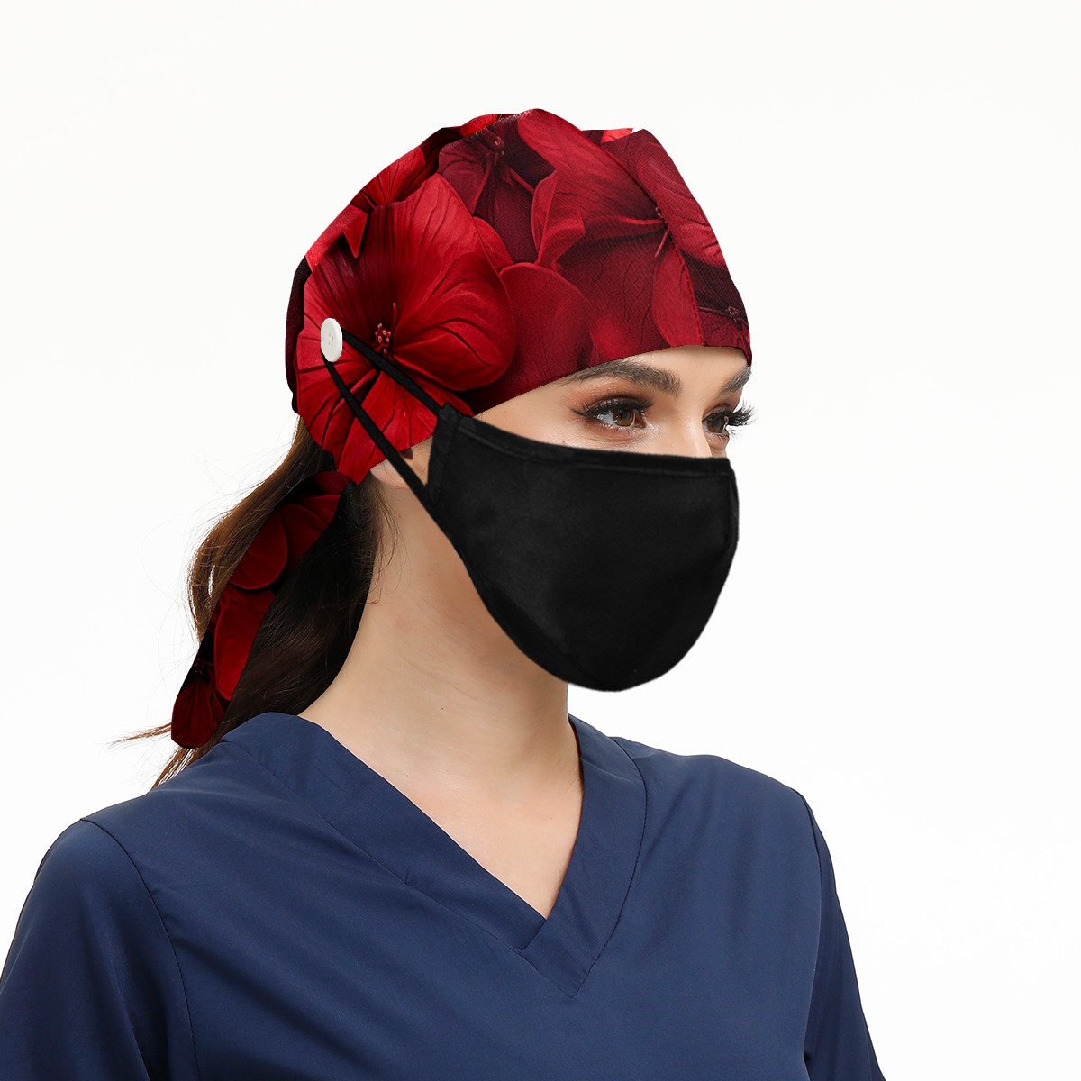 Working Caps with Button&Sweatband Satin Lined Cotton Adjustable Nurse Hats Elastic Band Scrub Cap Surgeon Hat Cute Flower