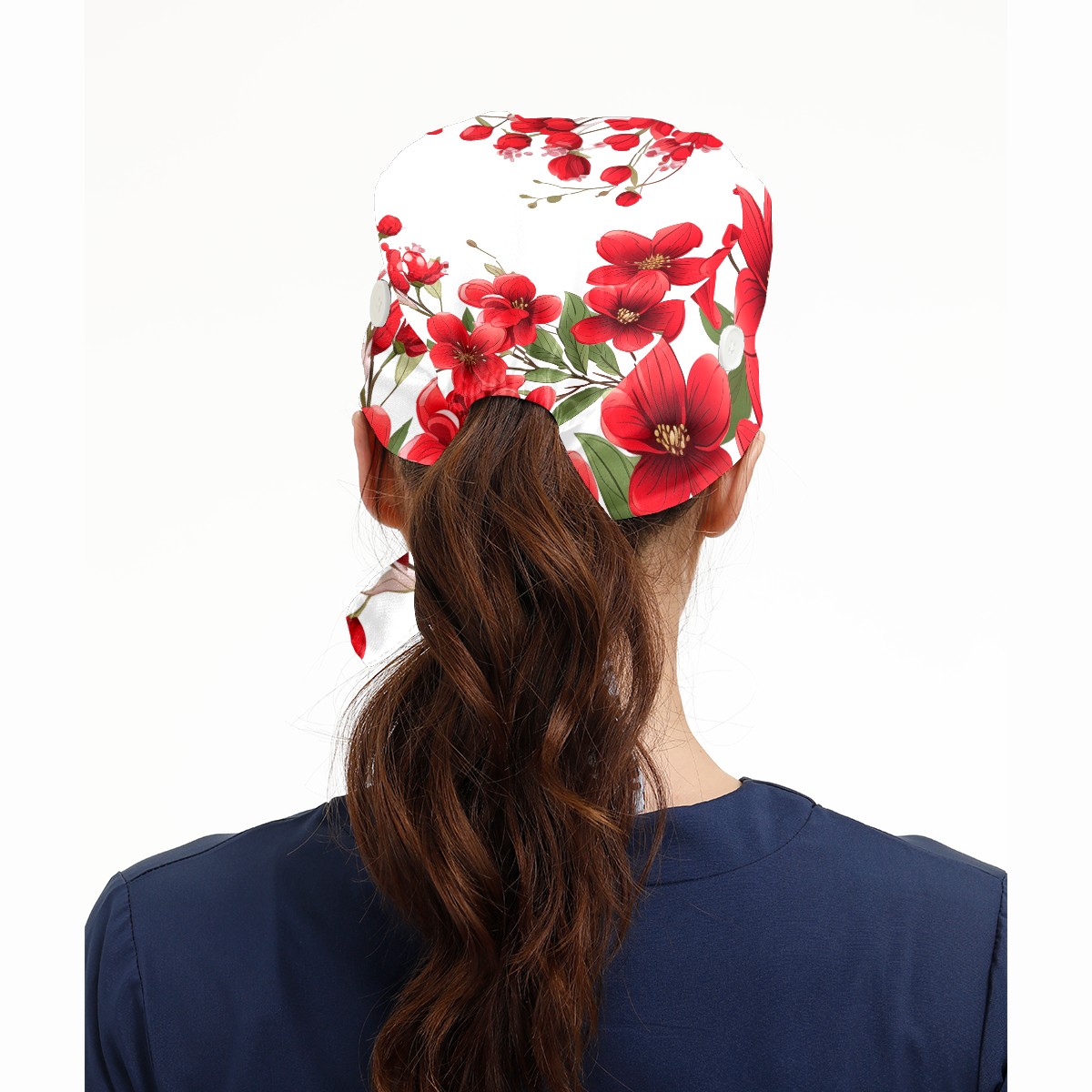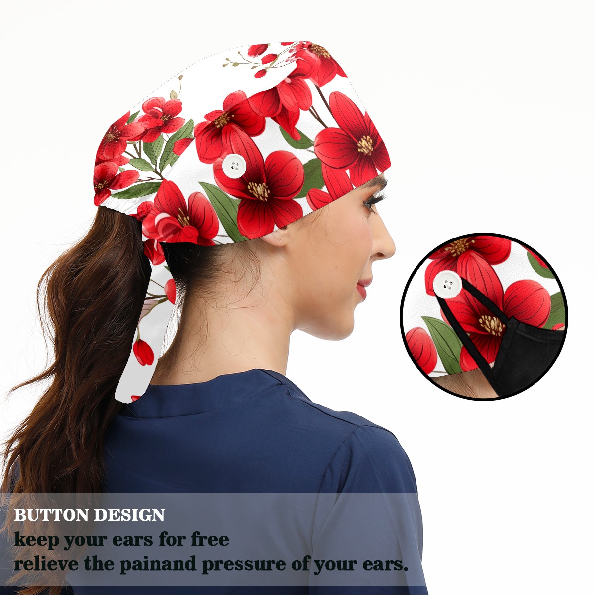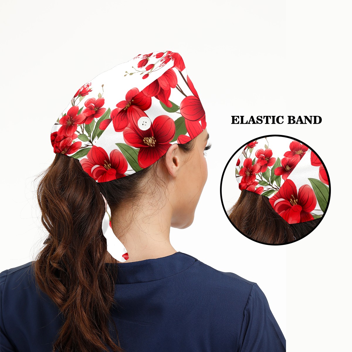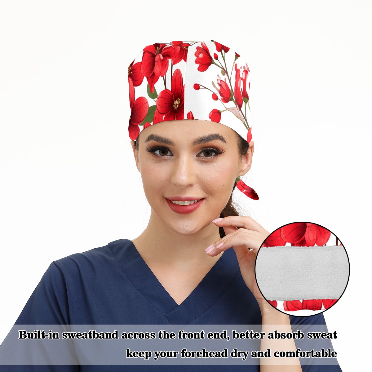 Working Caps with Button&Sweatband Satin Lined Cotton Adjustable Nurse Hats Elastic Band Scrub Cap Surgeon Hat Flowers A
