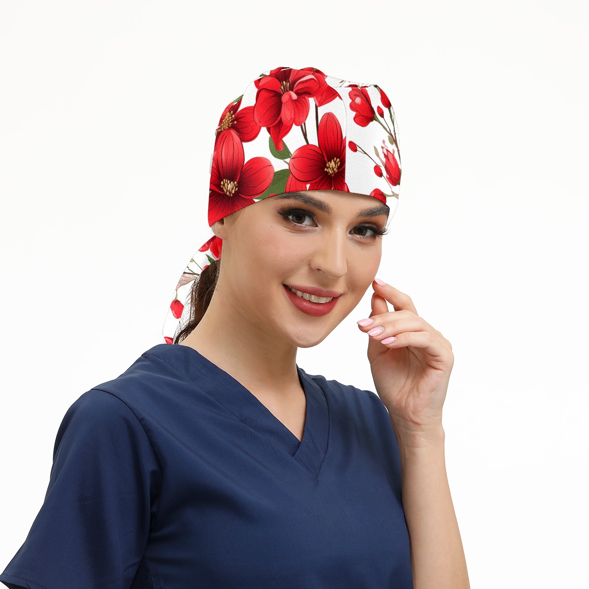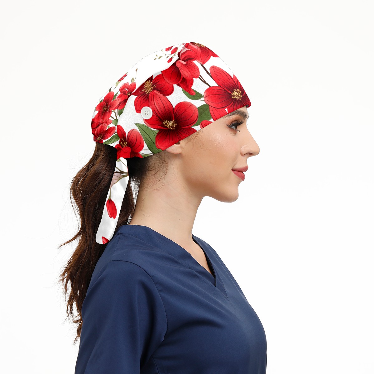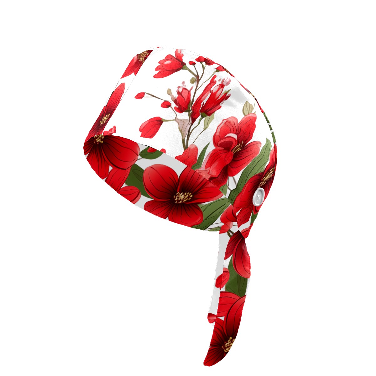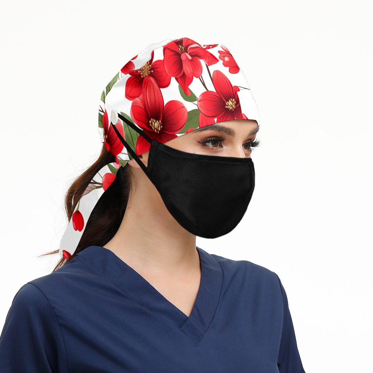 Working Caps with Button&Sweatband Satin Lined Cotton Adjustable Nurse Hats Elastic Band Scrub Cap Surgeon Hat Flowers A